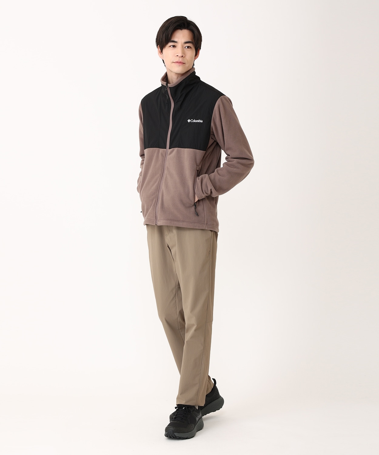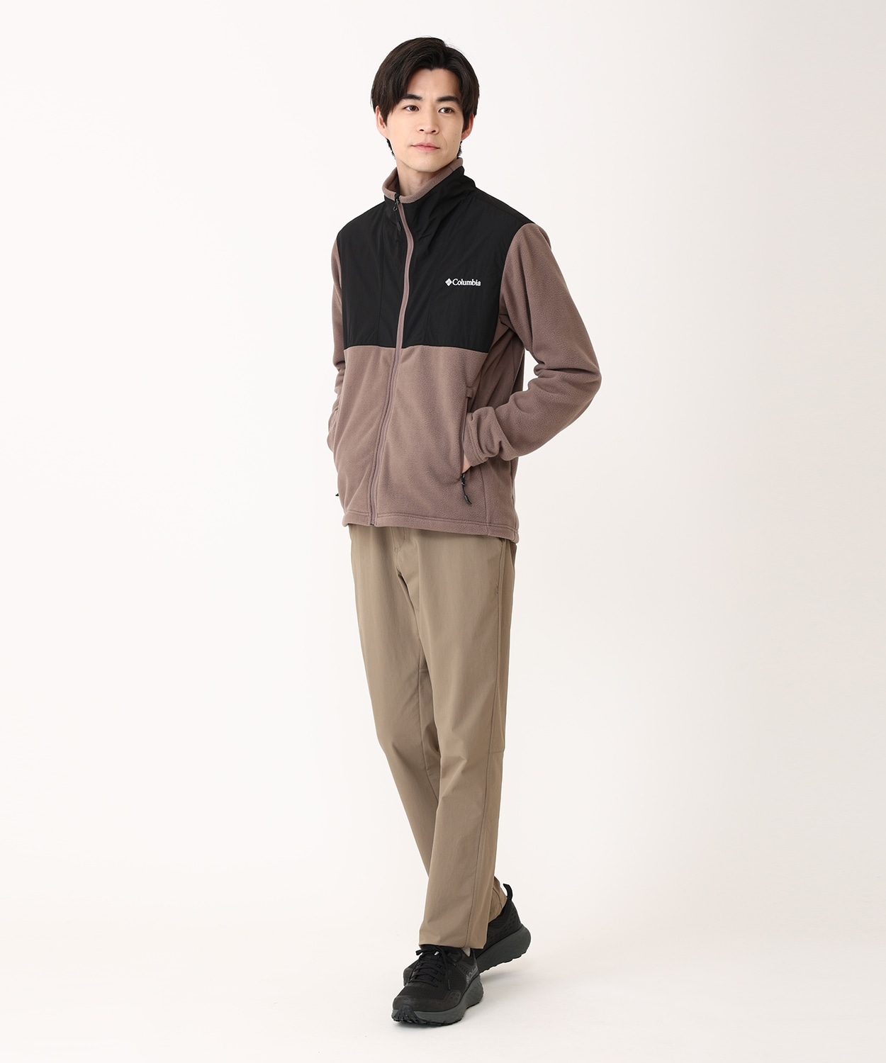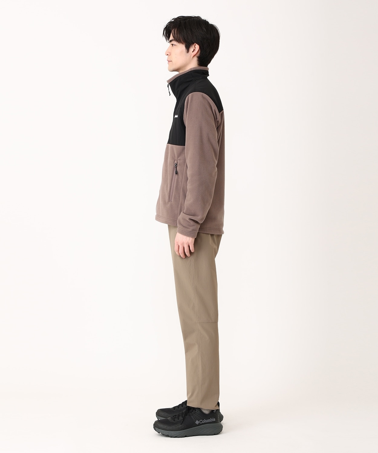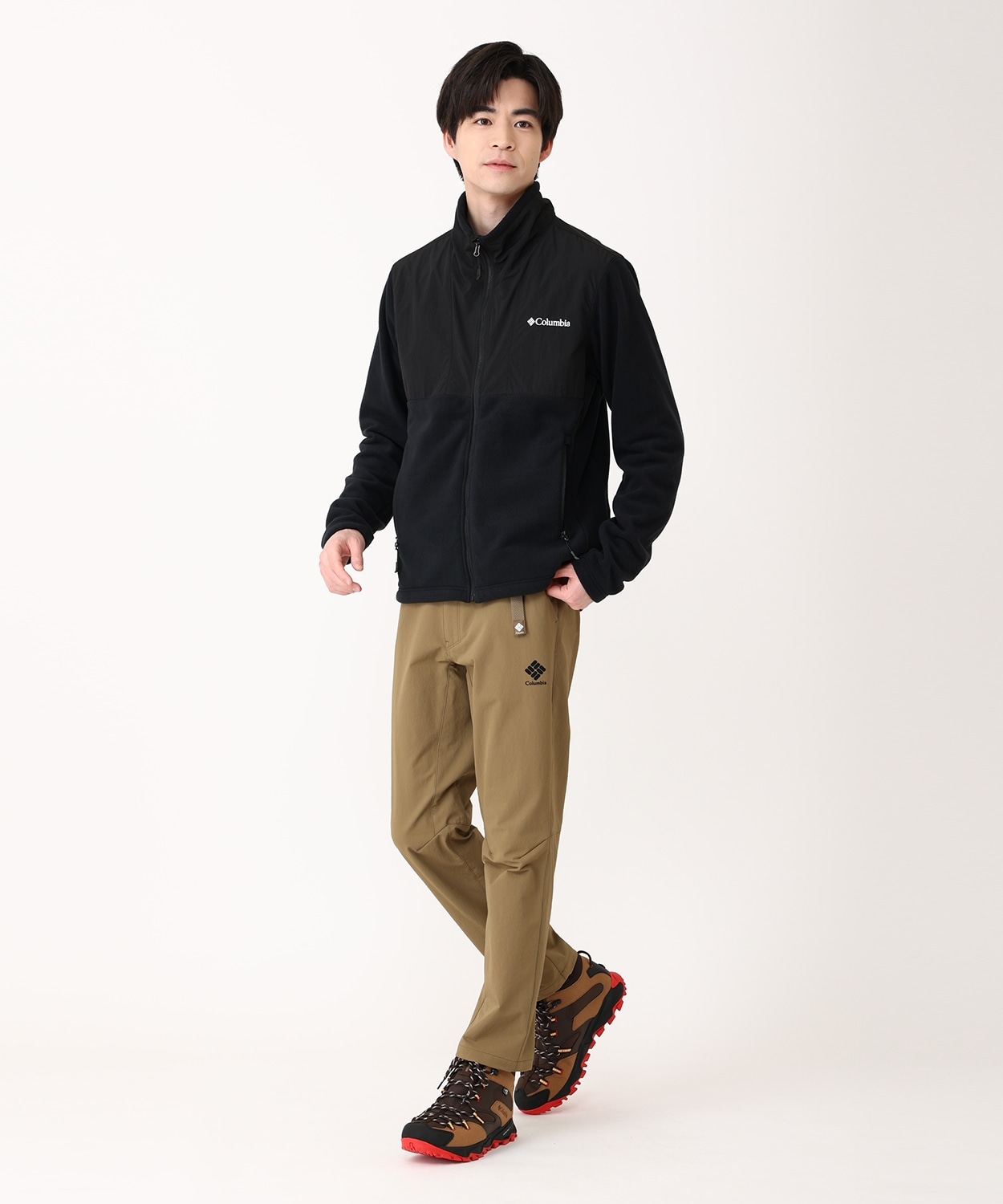 コロンビアの特徴的なディテールの1つである、立体的な前襟パターンのビブネックラインが着用時の快適性を高め、胸元から首元にかけては、はっ水(撥水)加工のウーブン素材をオーバーレイすることで、ザック使用時の耐久性にも考慮。レイヤリングしやすいフィット感で、ロングシーズンに対応できる一着です。