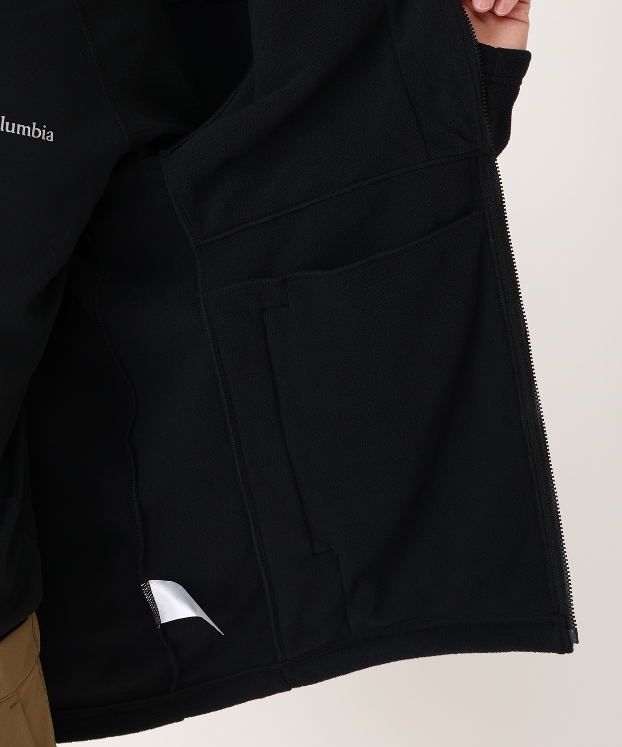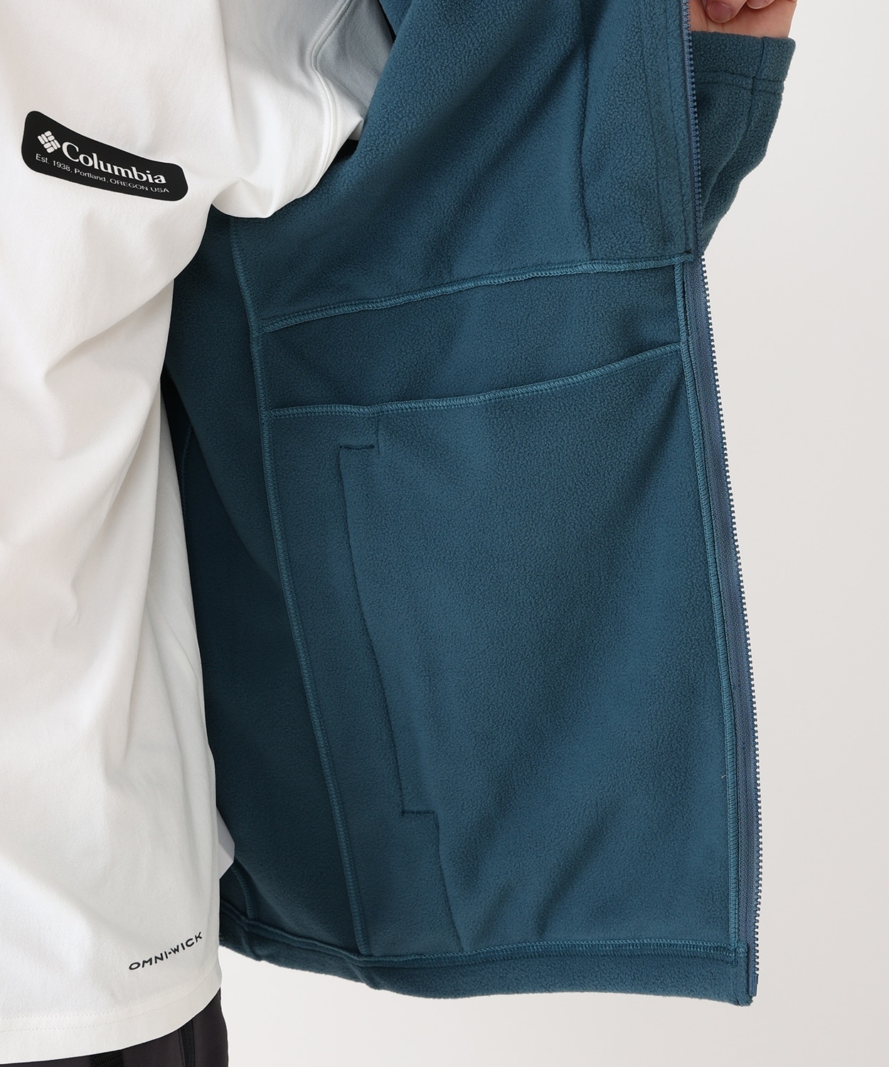 しっかりとした保温力と、ストレッチ性を兼ね備えたマイクロフリース素材の軽量ジャケット。