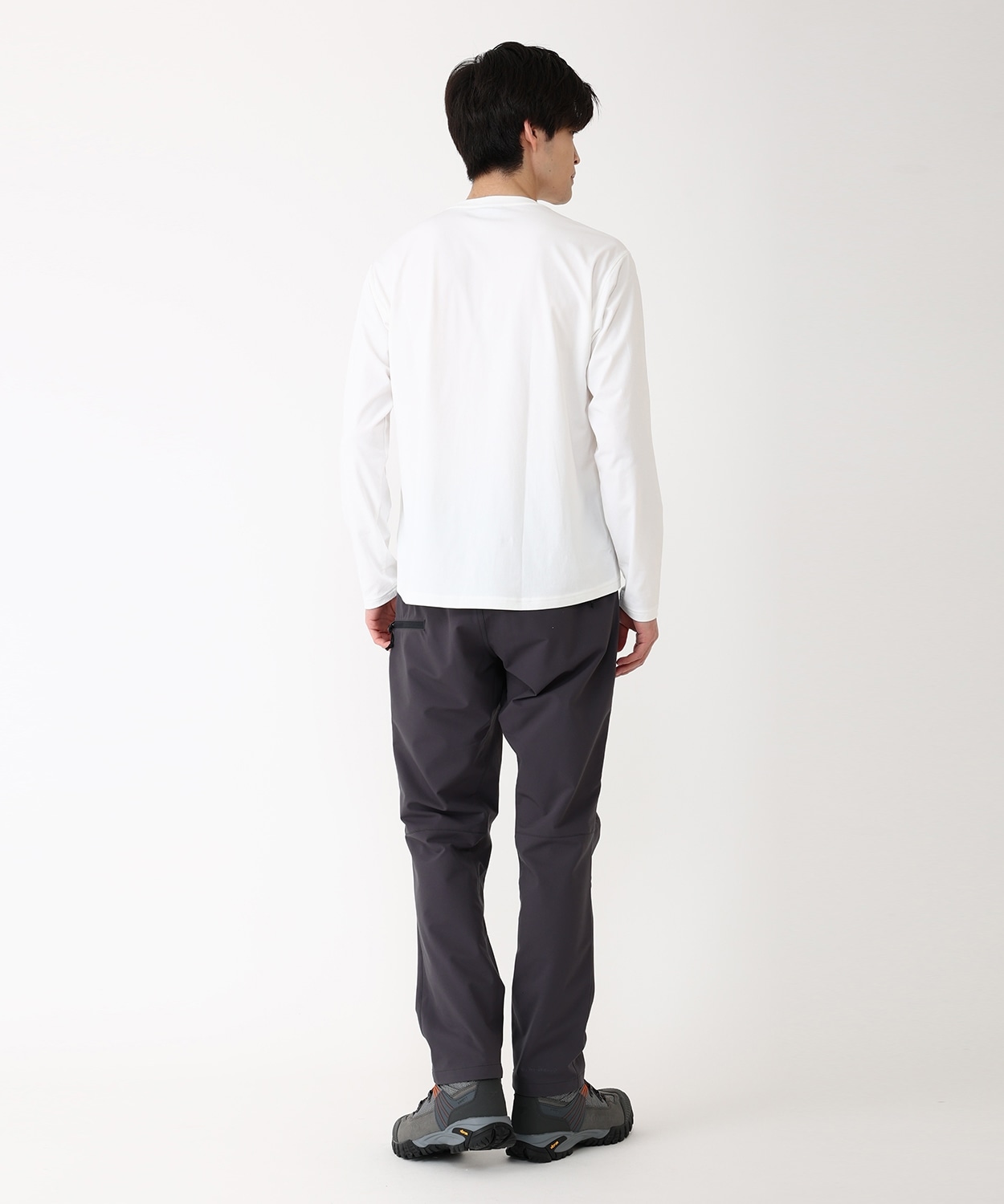 快適性を高めるストレッチ性と、速乾性に優れたクイックドライ素材に加えて、消臭縫製糸を使用するなど、アクティビティ時に必須な機能を装備。マットな質感に仕上げることで日常にも馴染みやすく、レイヤリングしても袖口がもたつきにくいリブなし仕様で、着回し力にも優れた一着です。