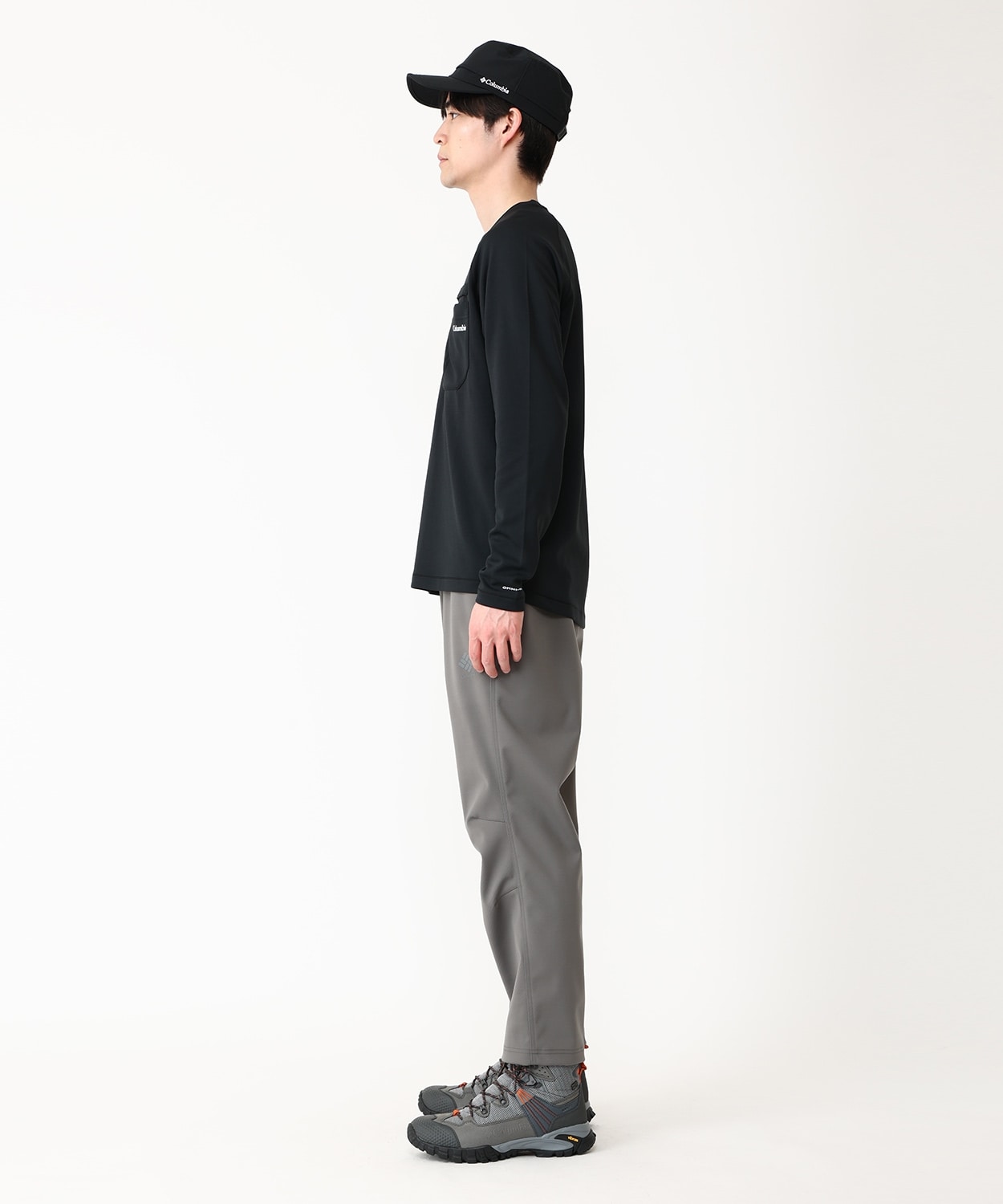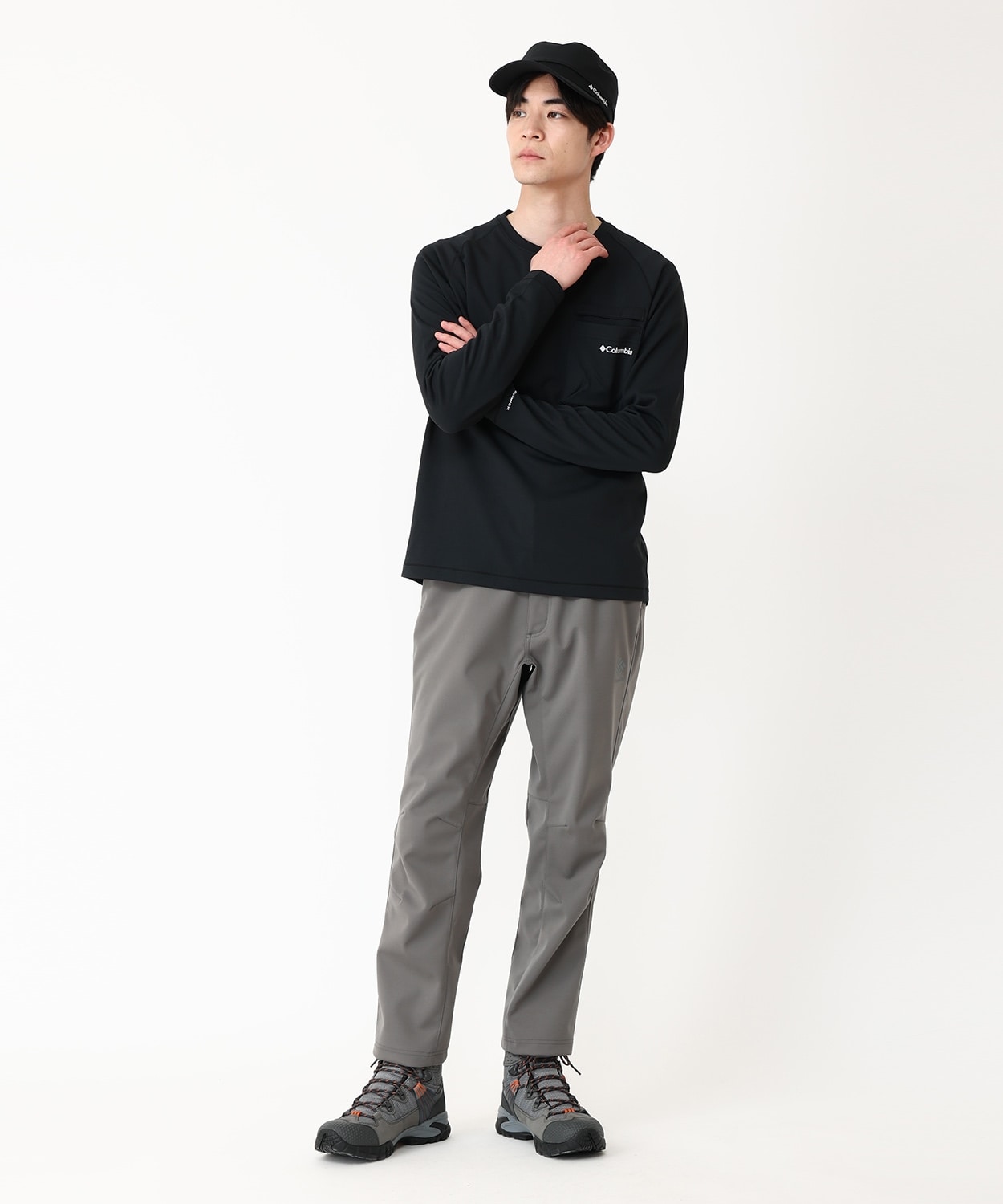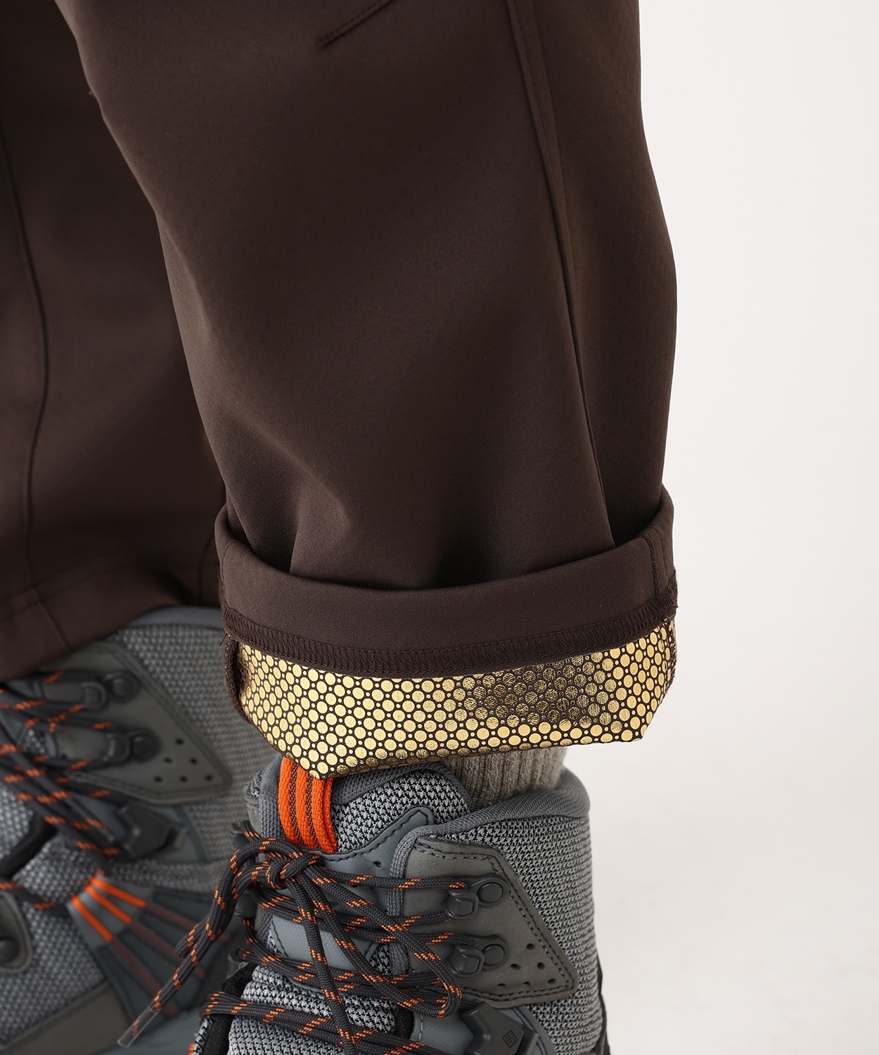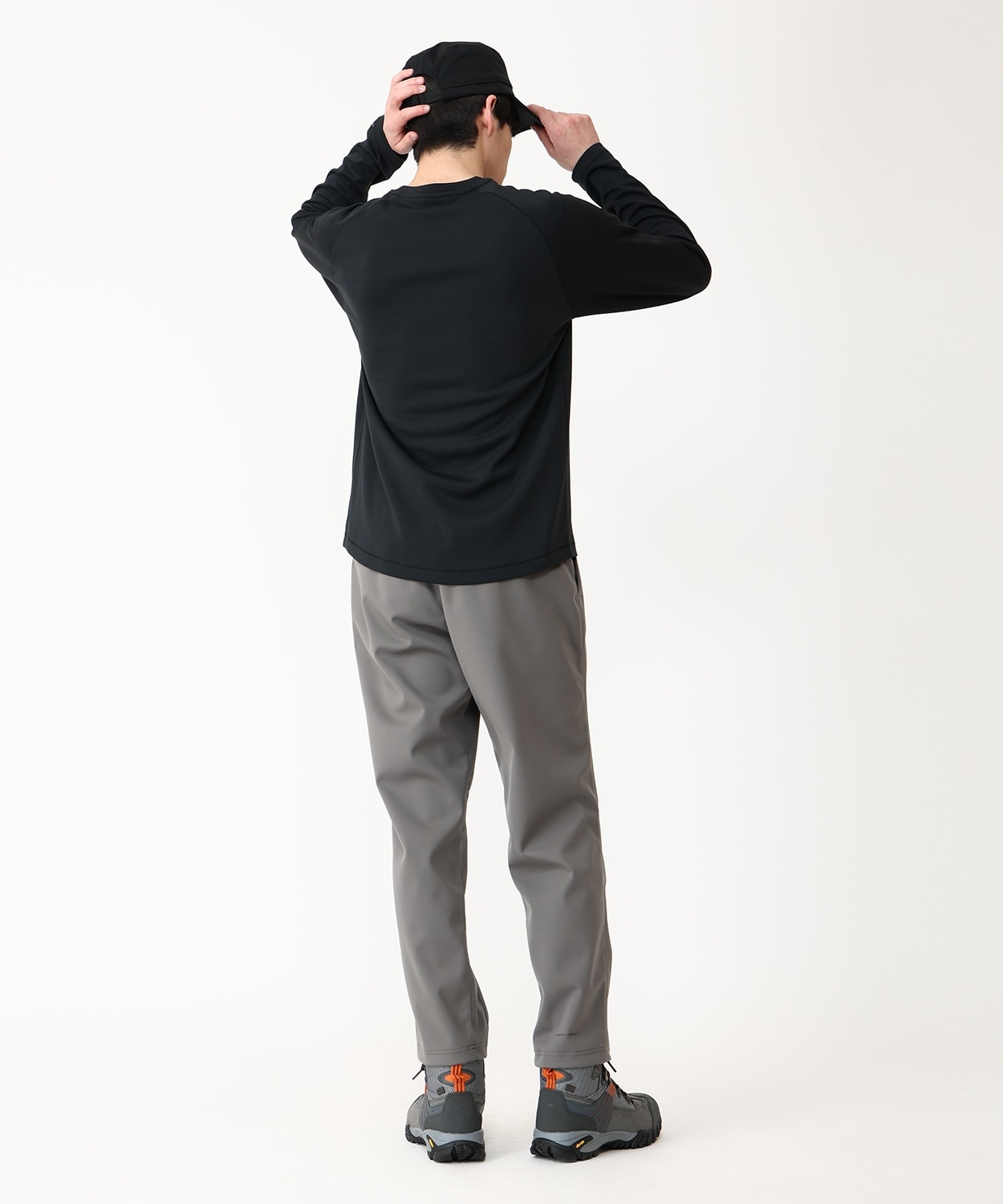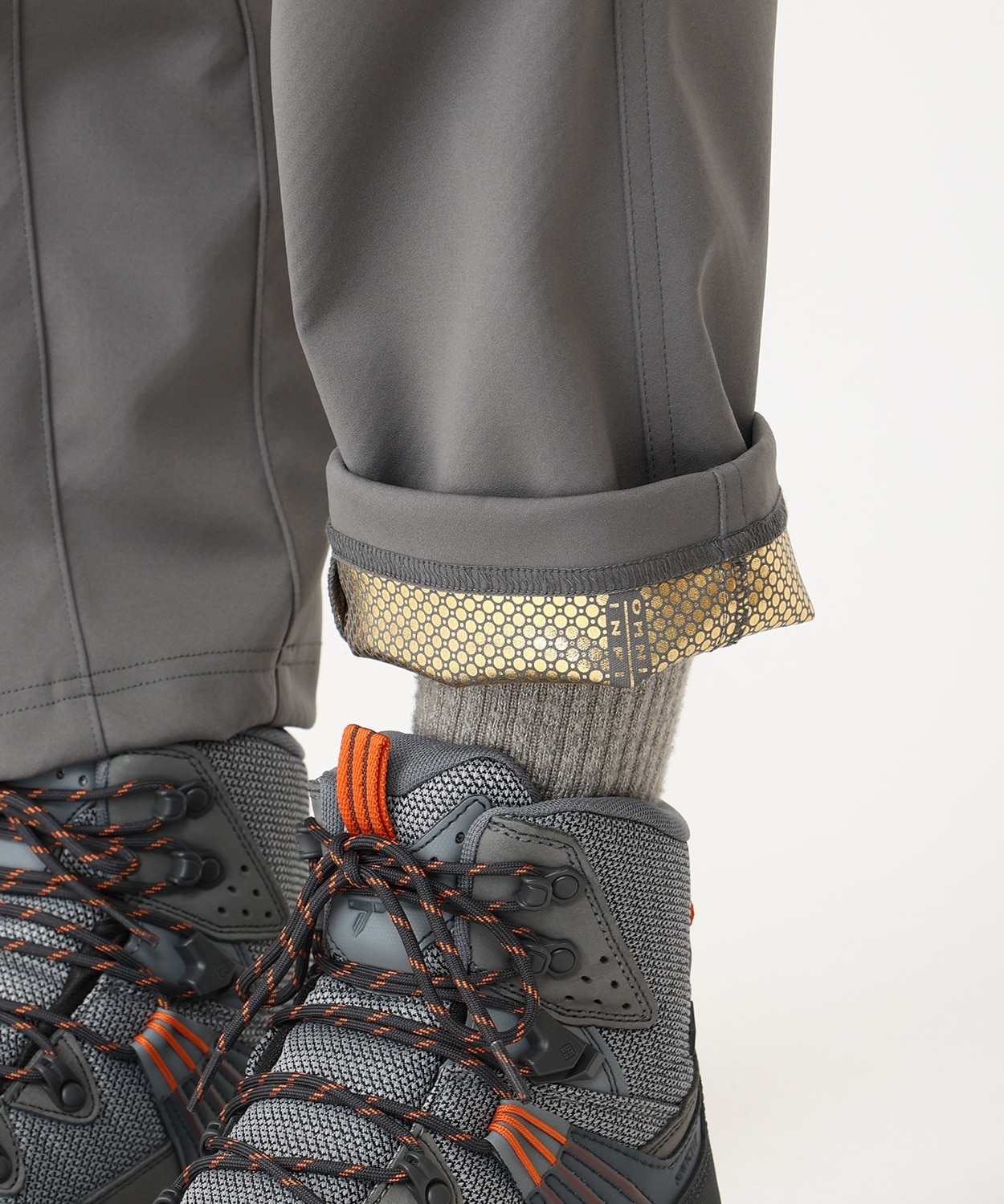 表地は小雨程度の水を弾く、はっ水(撥水)機能を備え、生地の内側には優れた防水性と防風性を発揮するメンブレンを装備。4wayストレッチ素材で行動中も動きやすく、程よく厚手ながらも細身すぎないフィット感に仕上げることで、ハイキングにも日常履きにも馴染むデザインに仕上げました。