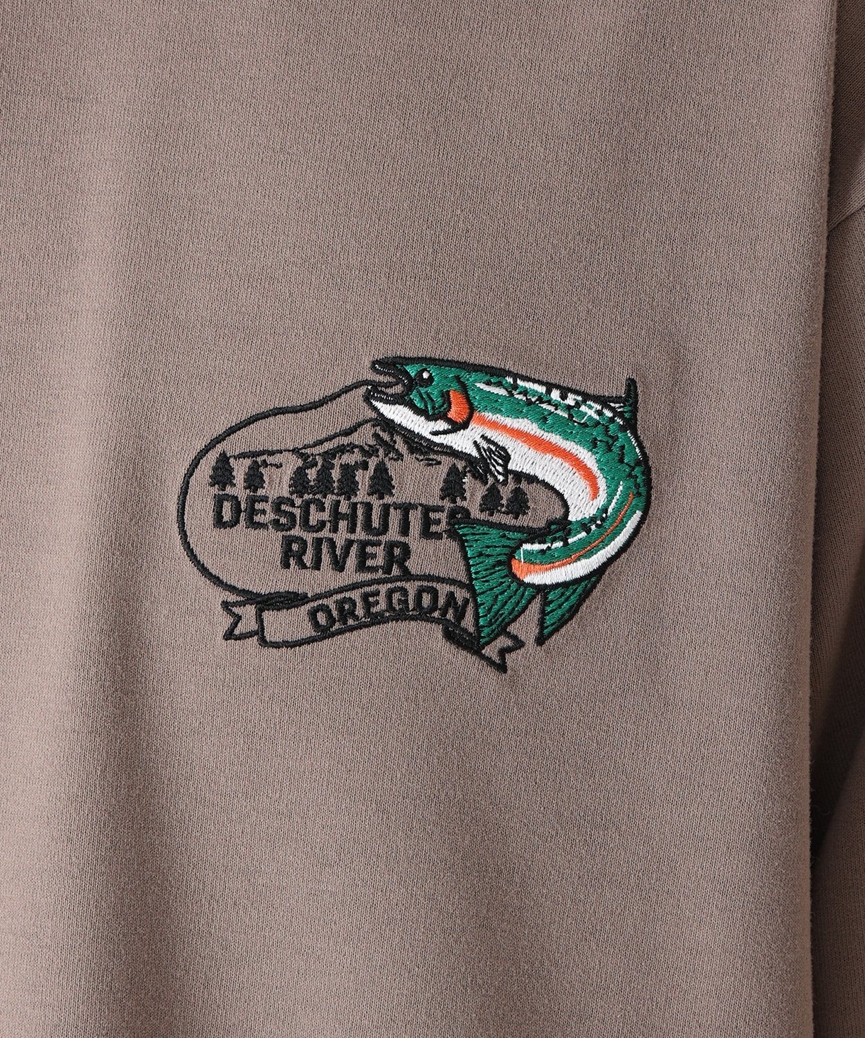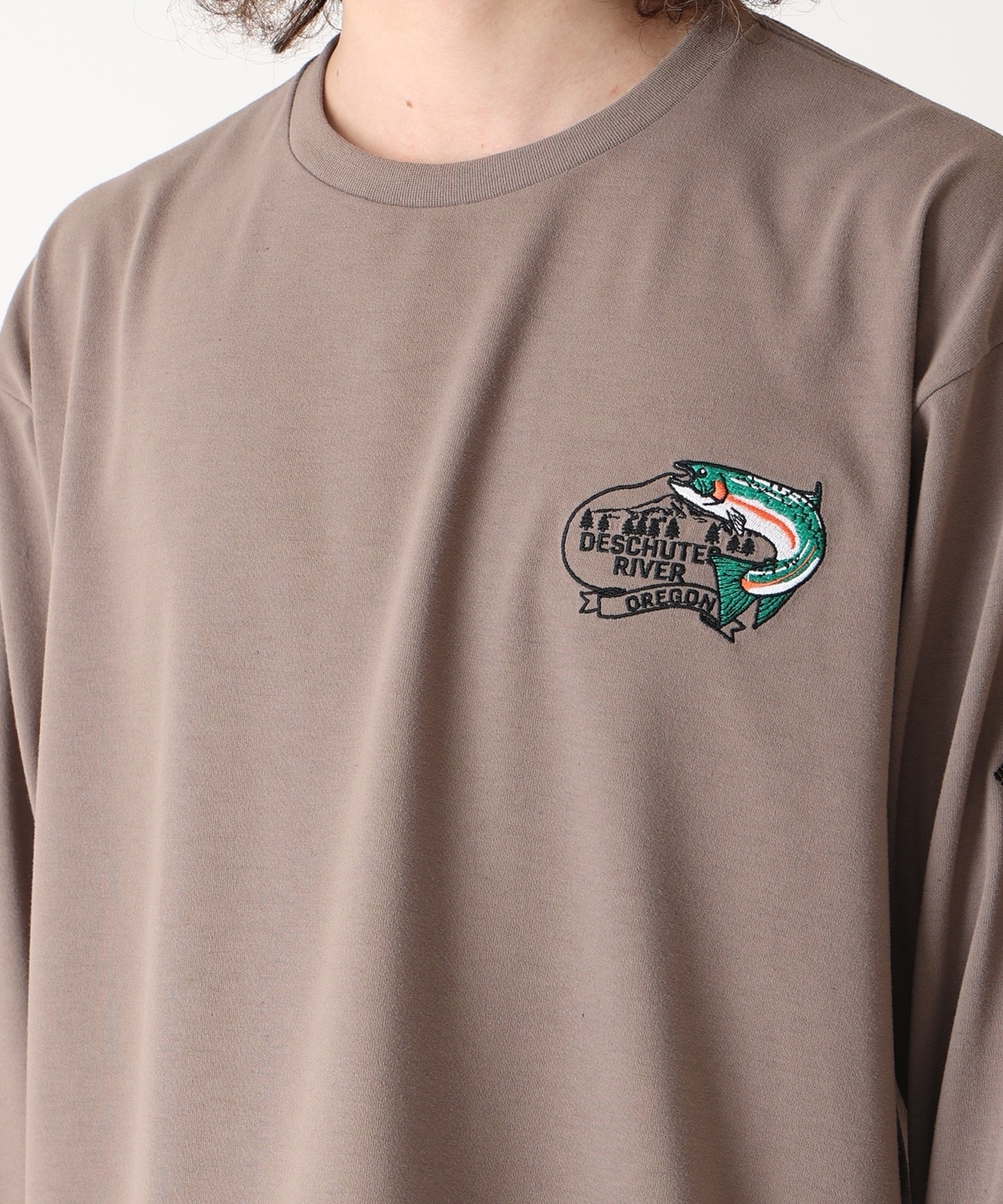アメリカのフィッシングカルチャーから着想を得た、グラフィック刺繍が特徴のロングスリーブTシャツ。