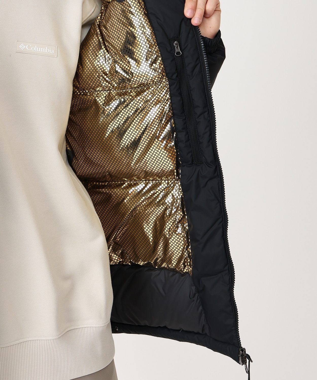 さらなる進化を遂げた、コロンビア独自の熱反射テクノロジー。新たにデザインされた金色のリフレクティブドットによってより効率よく体温を反射して、瞬時に暖かさを提供します。(従来のオムニヒートリフレクティブより熱反射率が向上)
