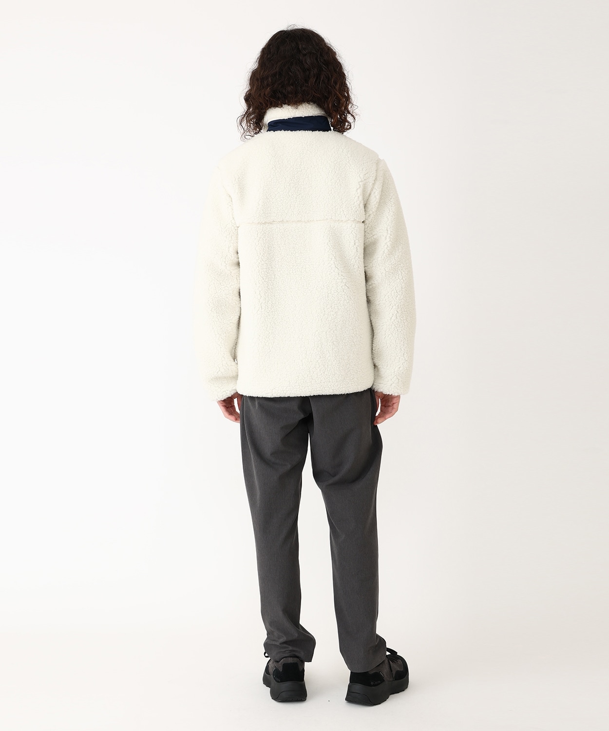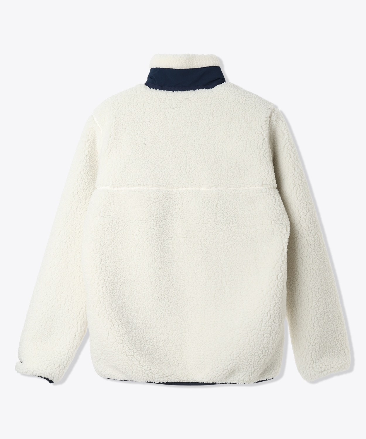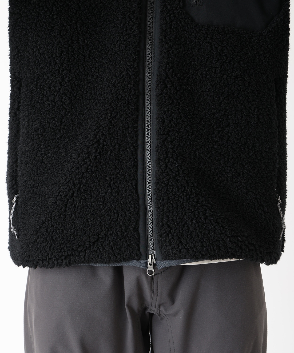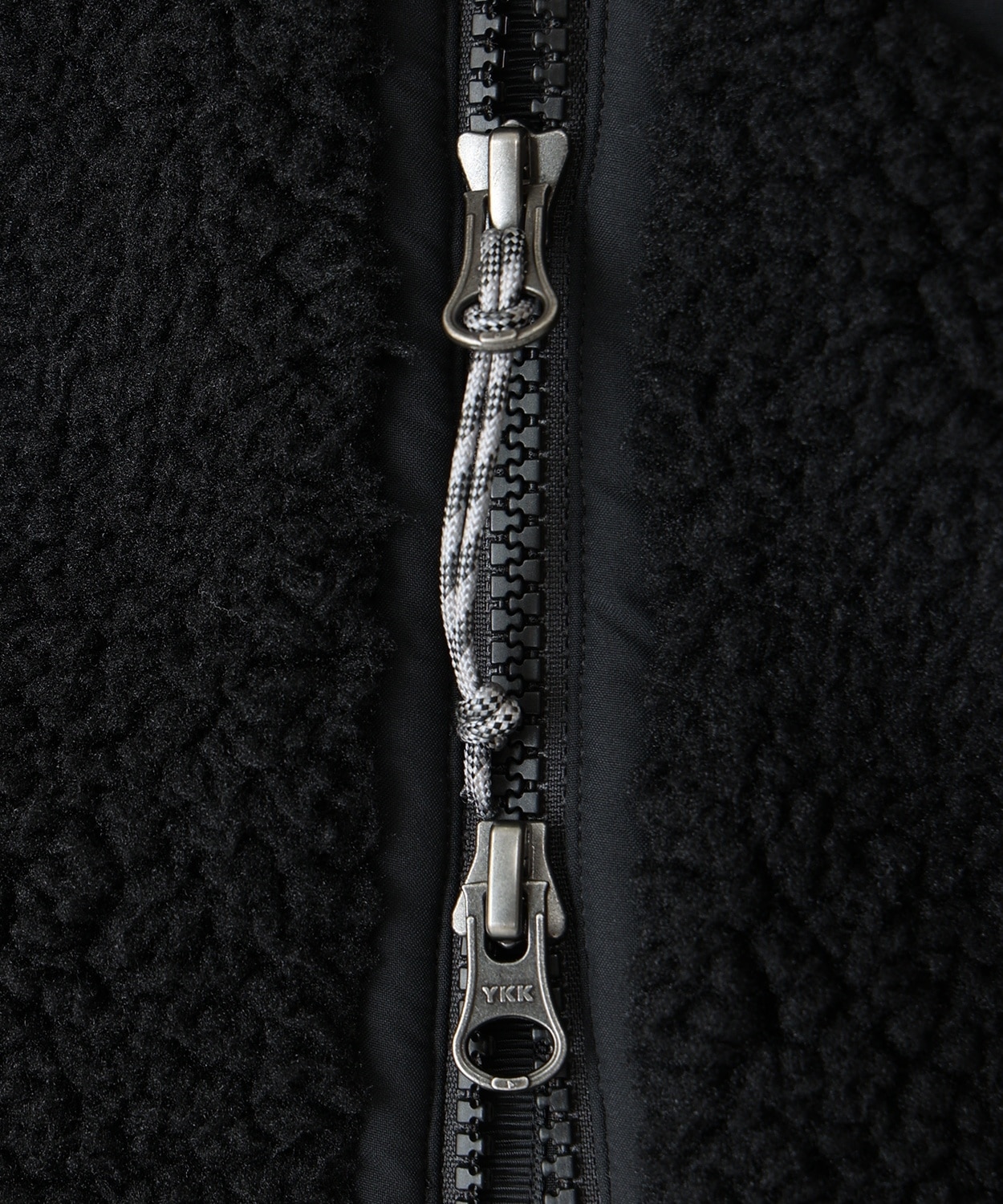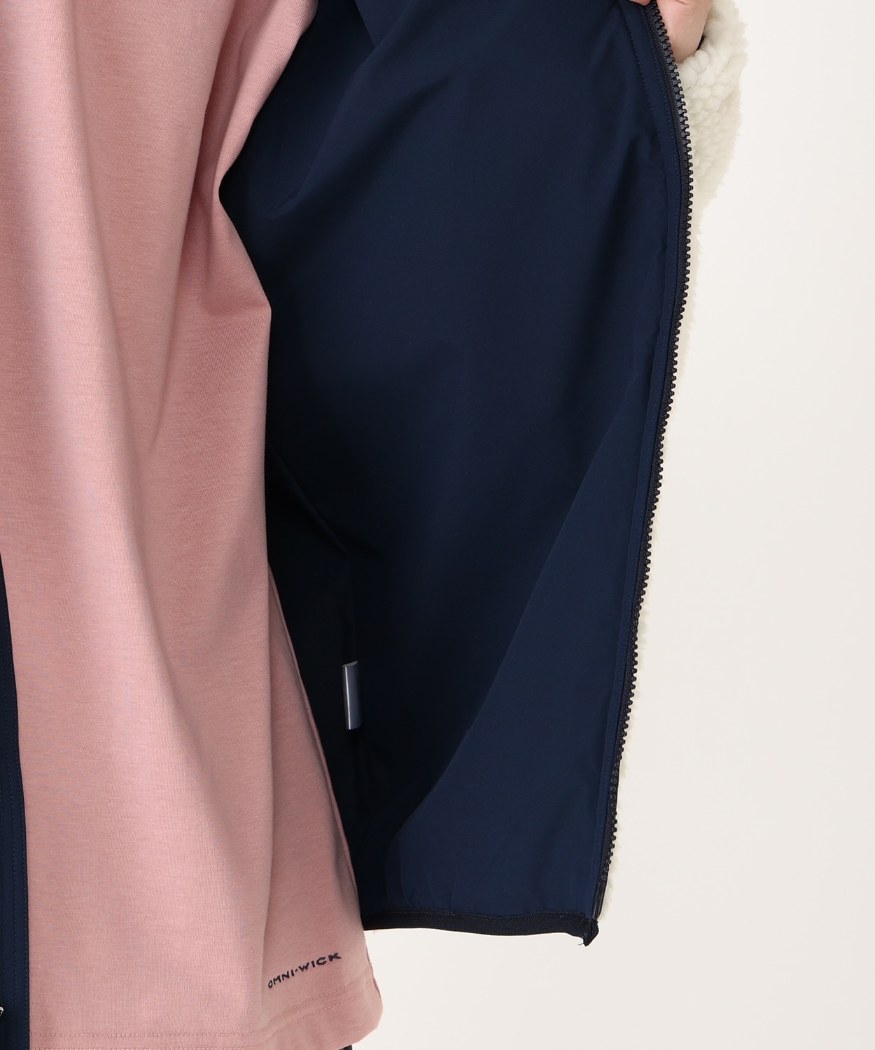 表:シープボアフリース(ポリエステル100%) 切替:タスランナイロン(ナイロン100%) 裏:ストレッチポプリン裏面PUコーティング(ポリエステル100%)