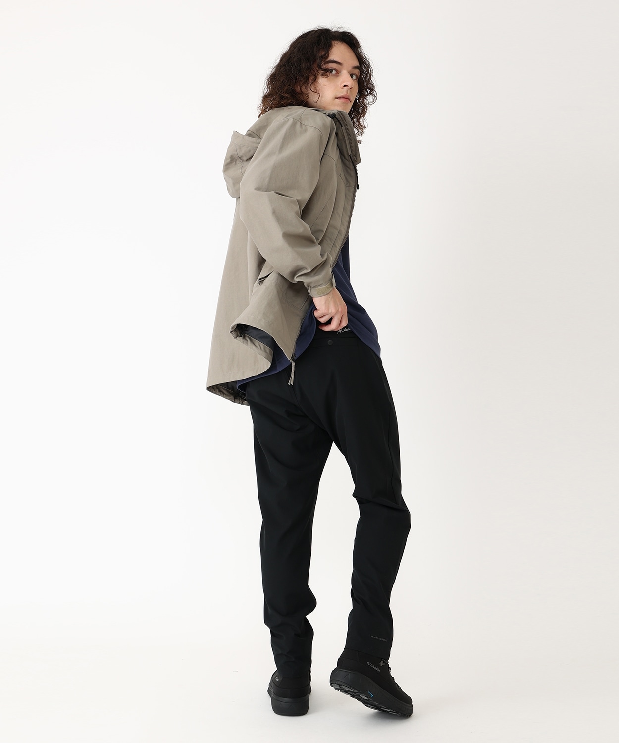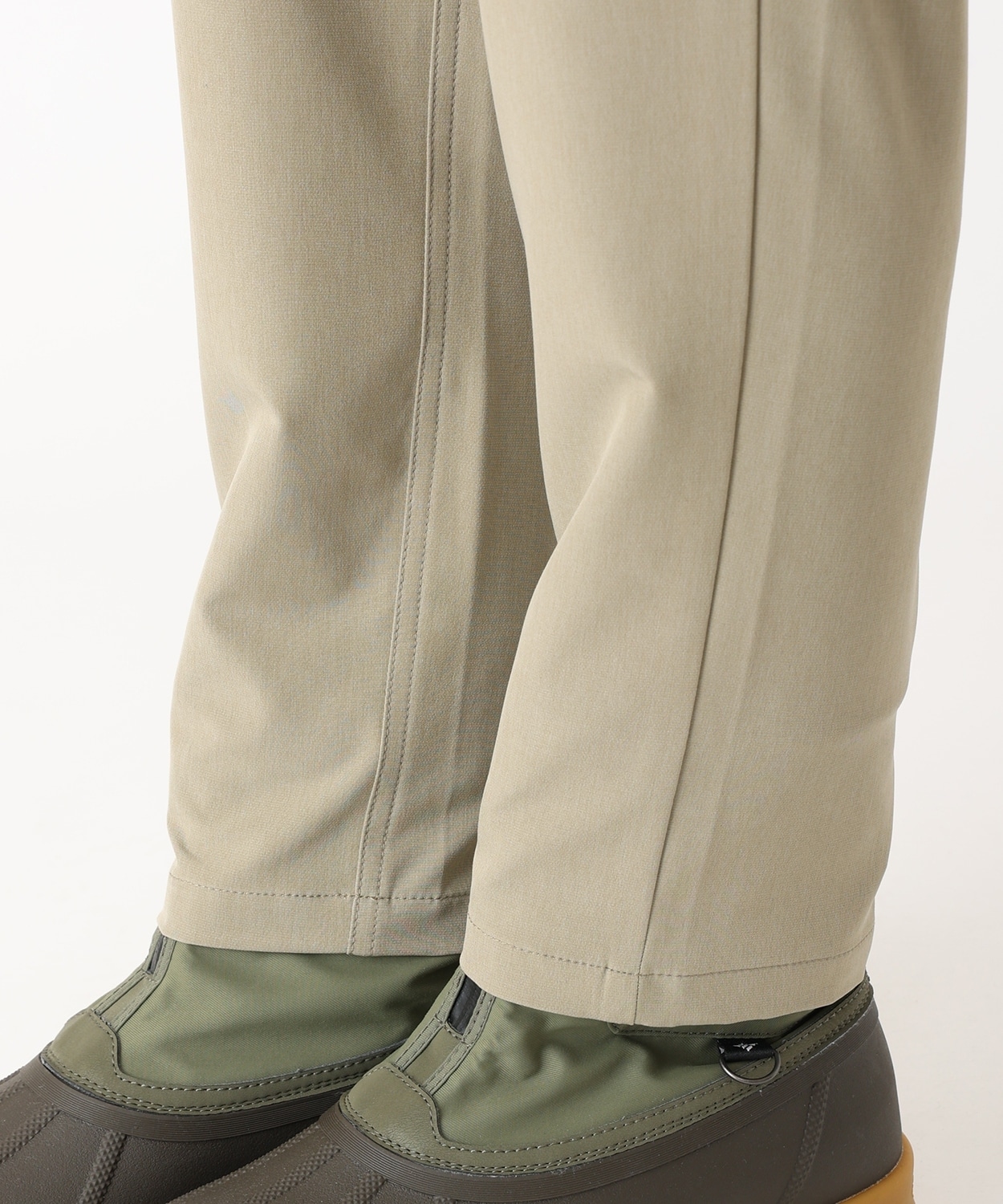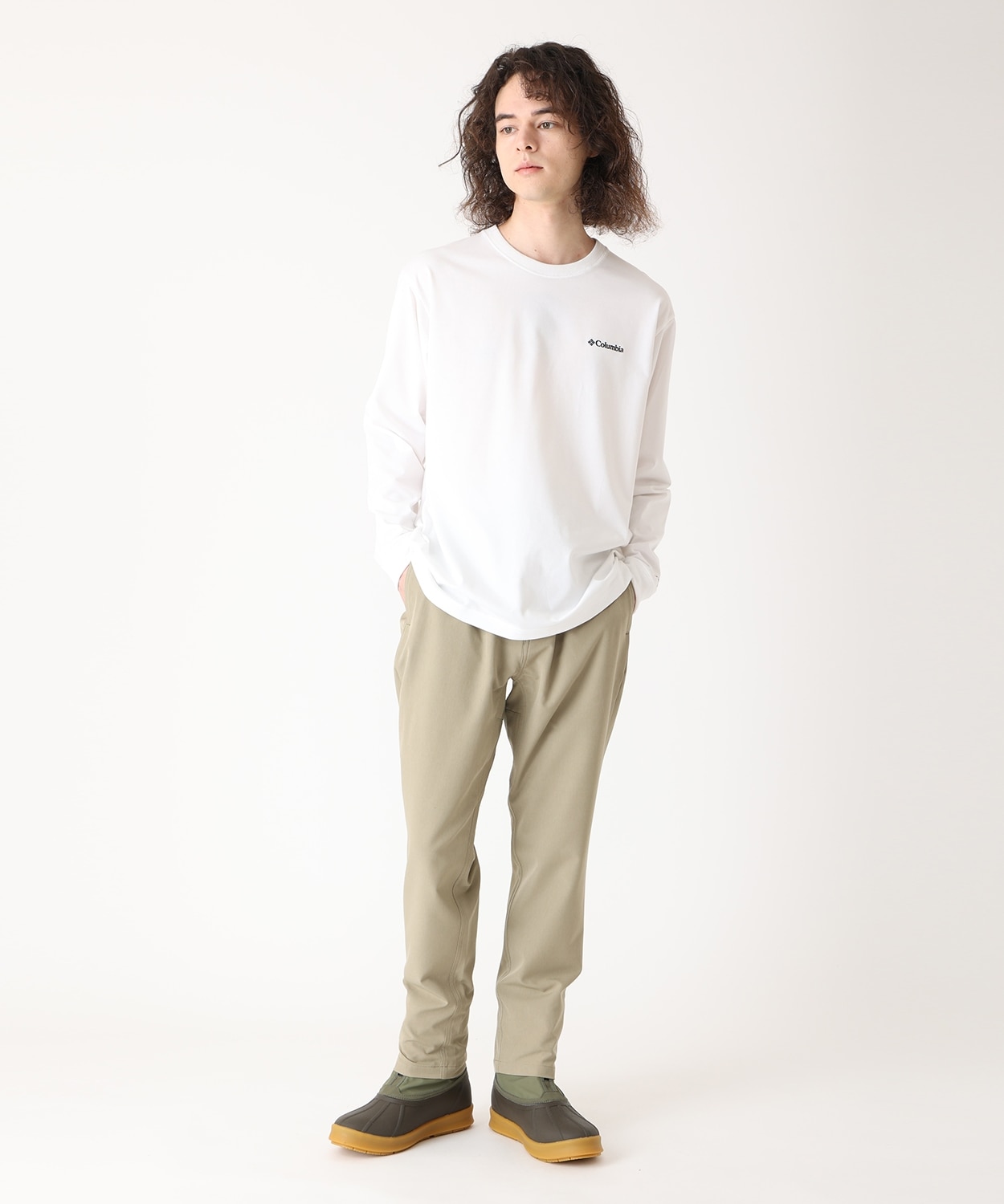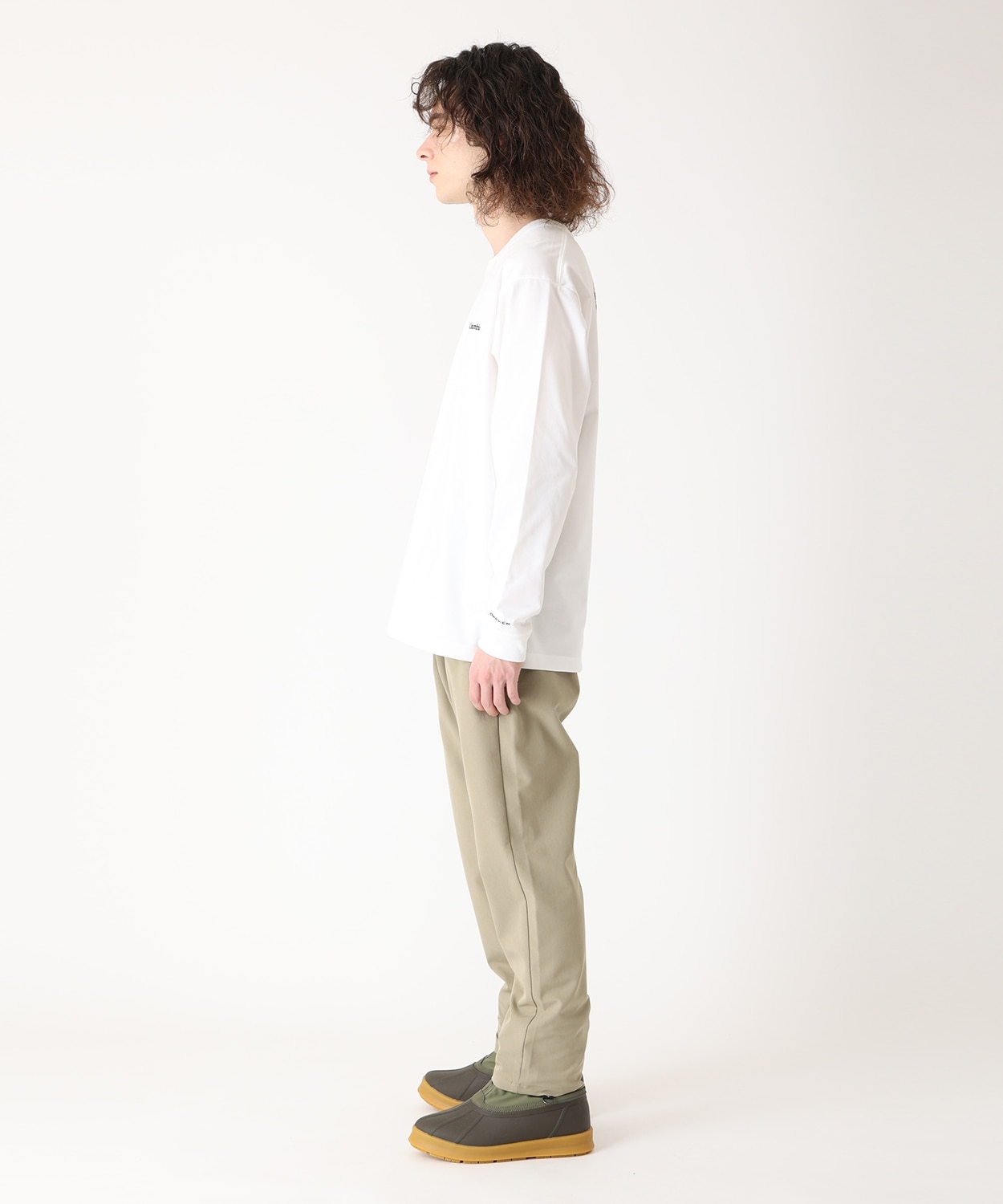 肌面に適度な保温力を持つ微起毛素材を採用することで、肌寒くなる秋口からロングシーズンに対応。すっきりとしたシルエットのレギュラーフィットに加えて、股下にはガゼットパターンで足の可動域を広げるなど、動きやすさにも考慮した一着です。