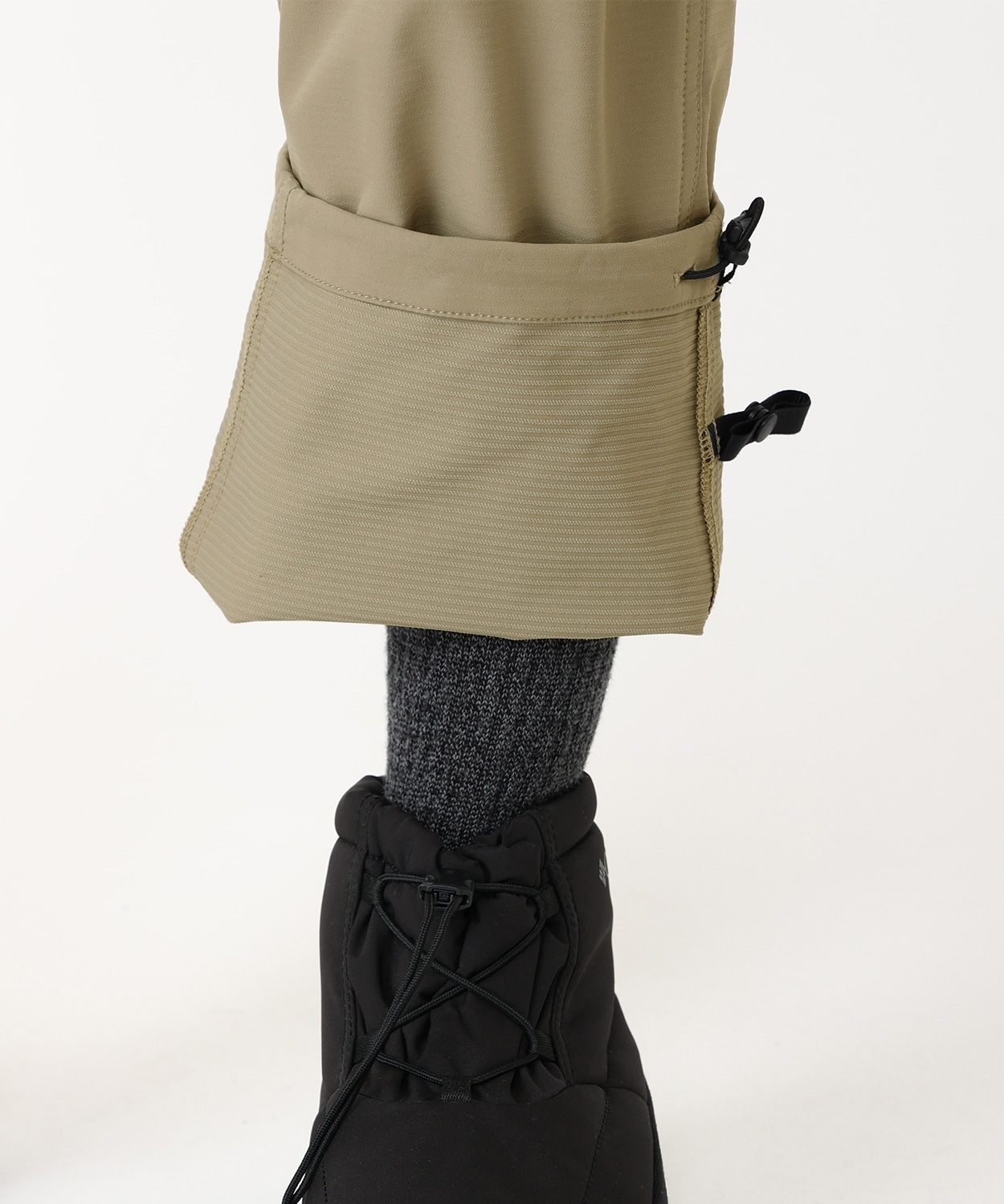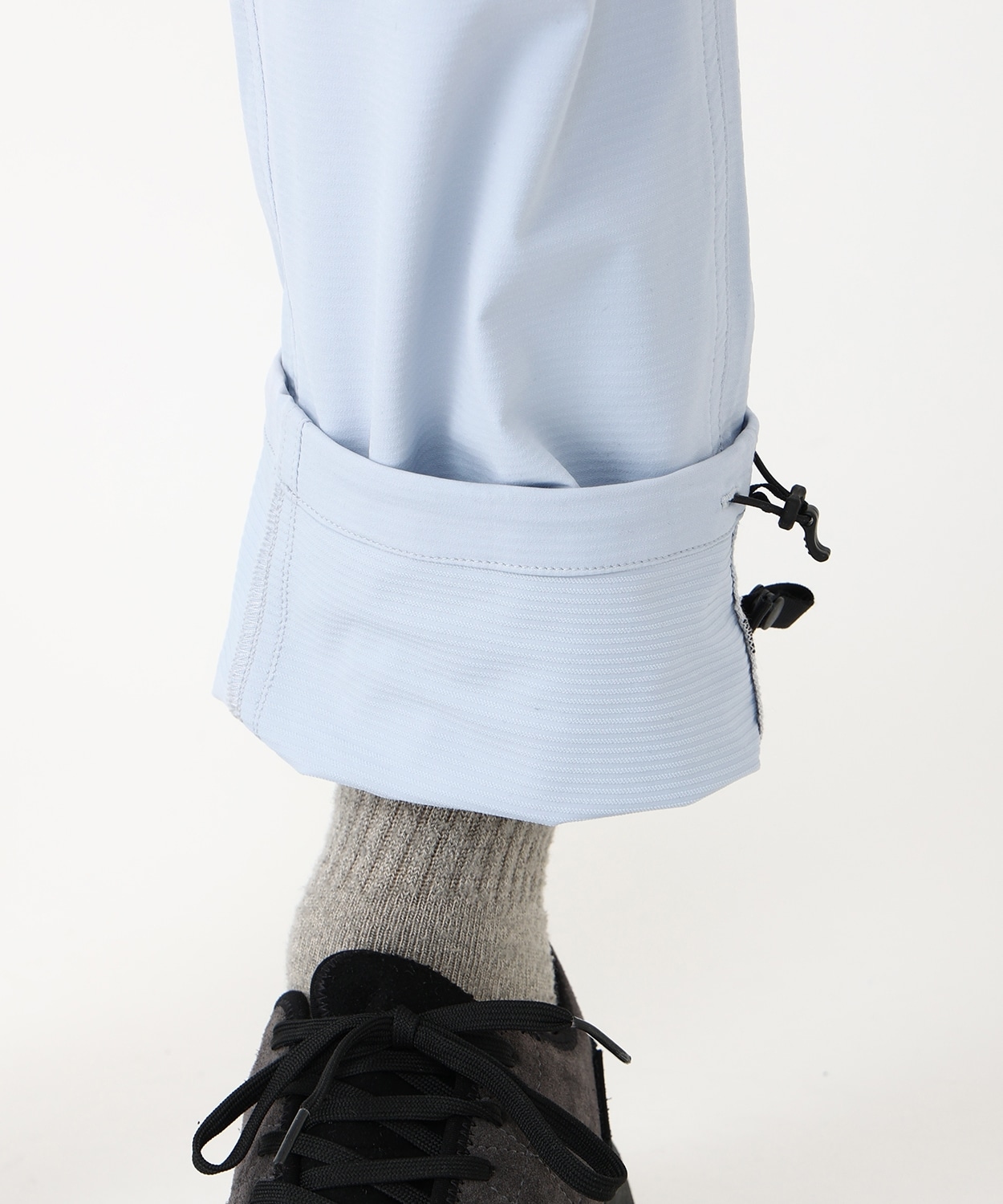 独自の吸湿速乾機能とサンプロテクション機能のアウトドア機能に加えて、すっきりとしたストレートに股下にはガゼットパターンを設けるなど、動きやすさも申し分なし。裾に設けたドローコードで、スタイルチェンジが楽しめます。