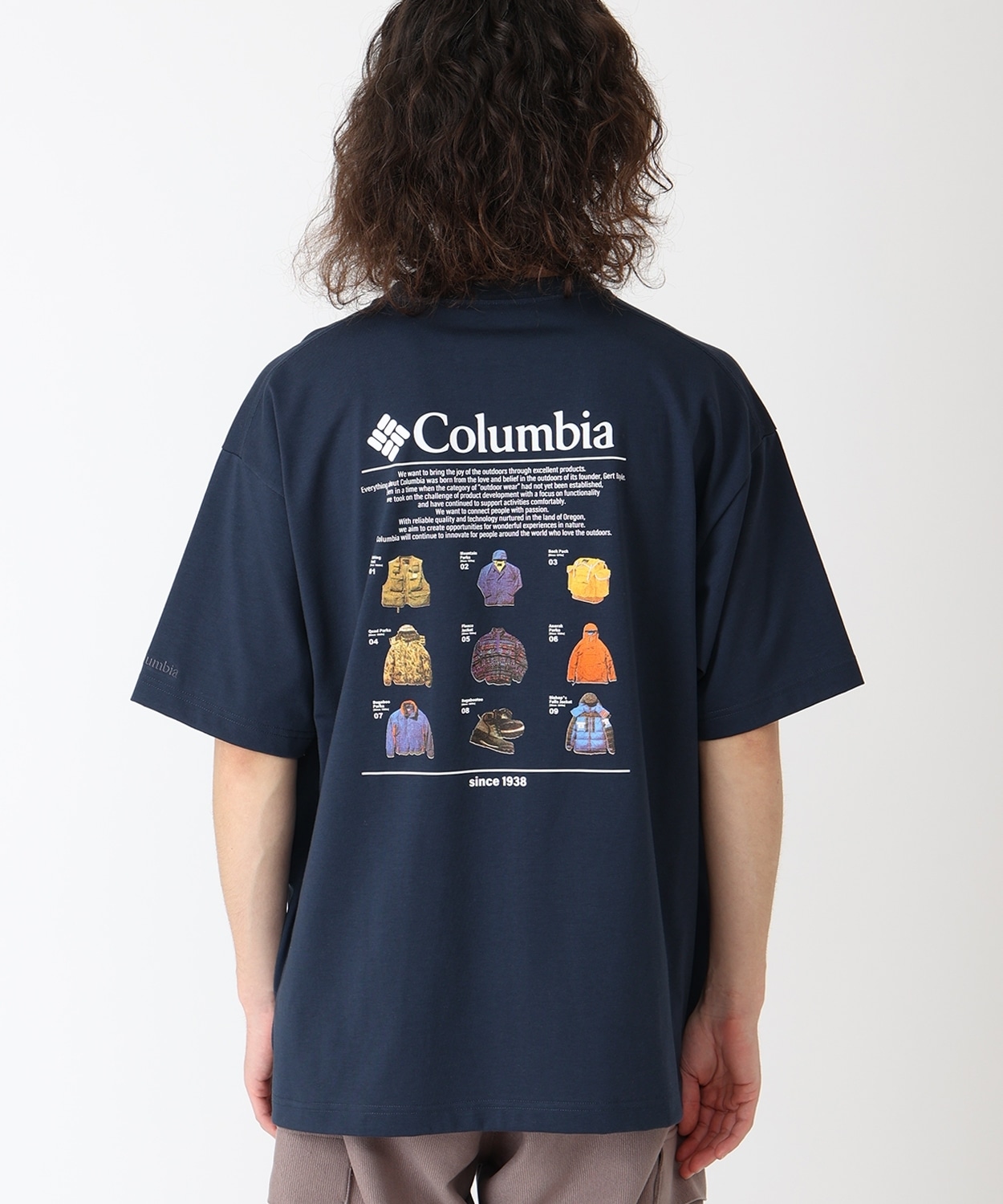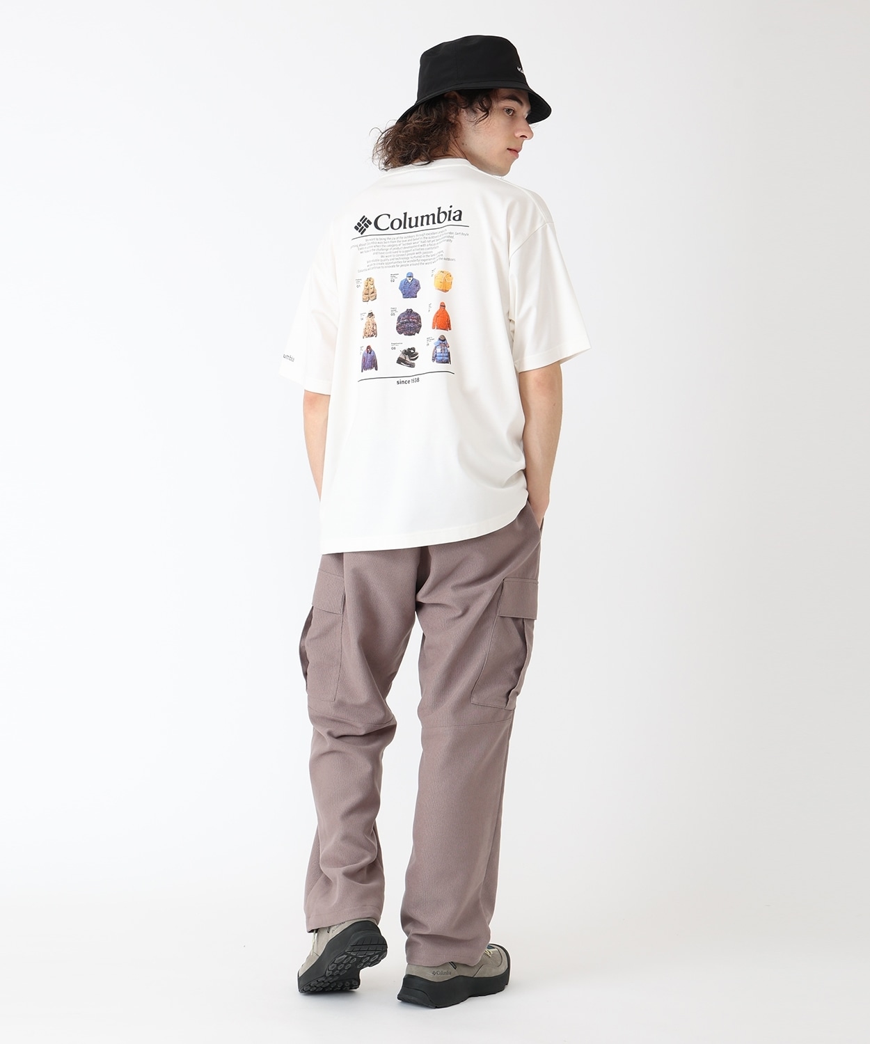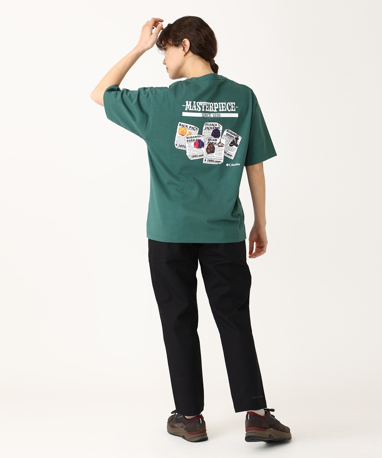 独自の吸湿速乾機能とサンプロテクション機能を備え、トレンド感のあるリラックスフィットで様々なボトムスに合わせやすい一着。バックスタイルには、コロンビアのマスターピースを落とし込んだヒストリカルなグラフィックデザインを2パターンご用意しました。