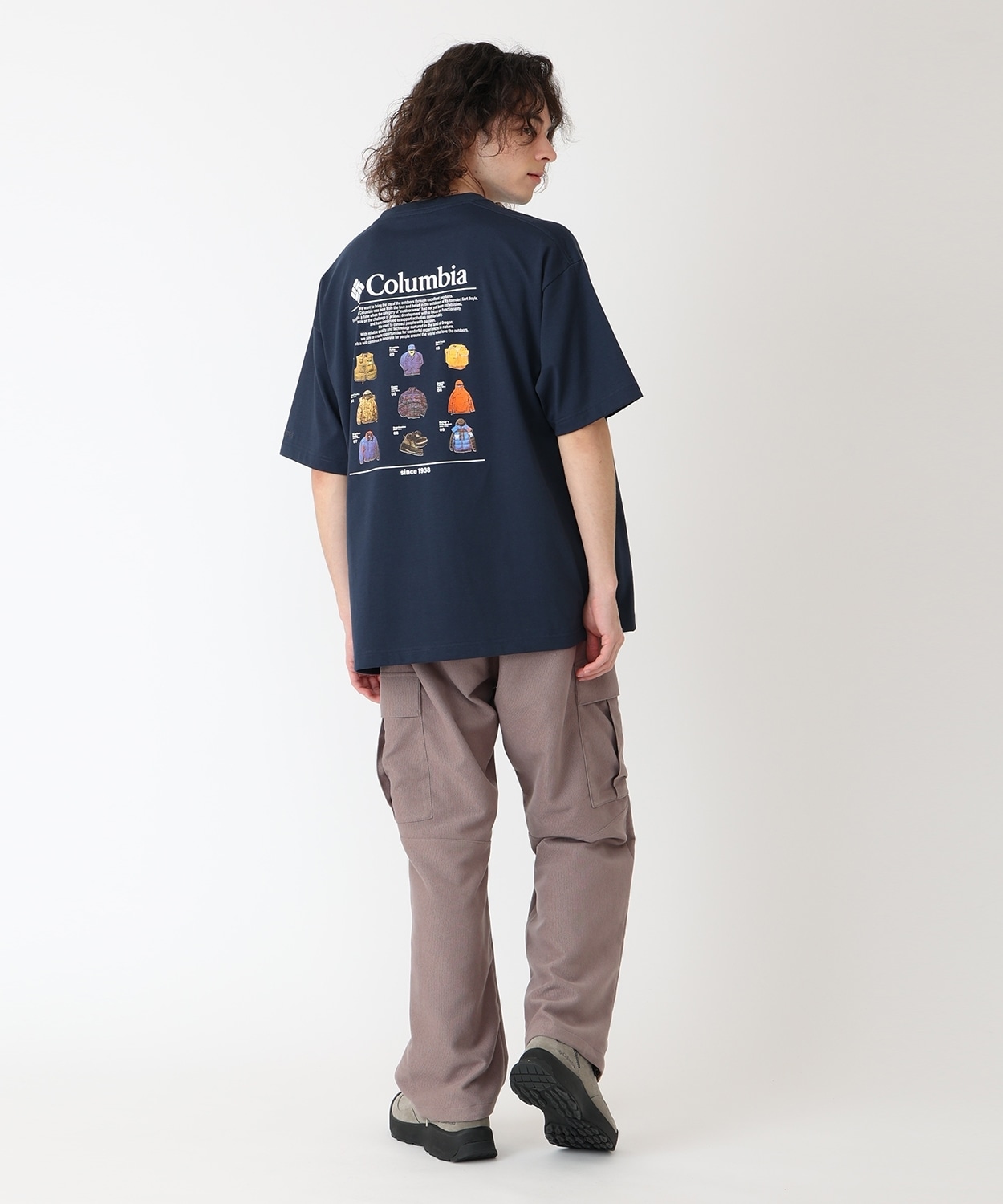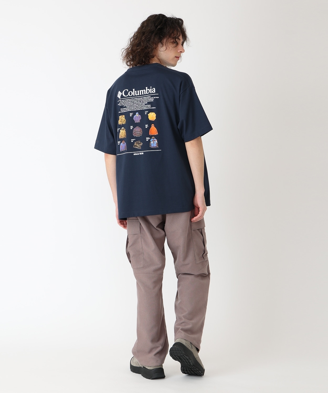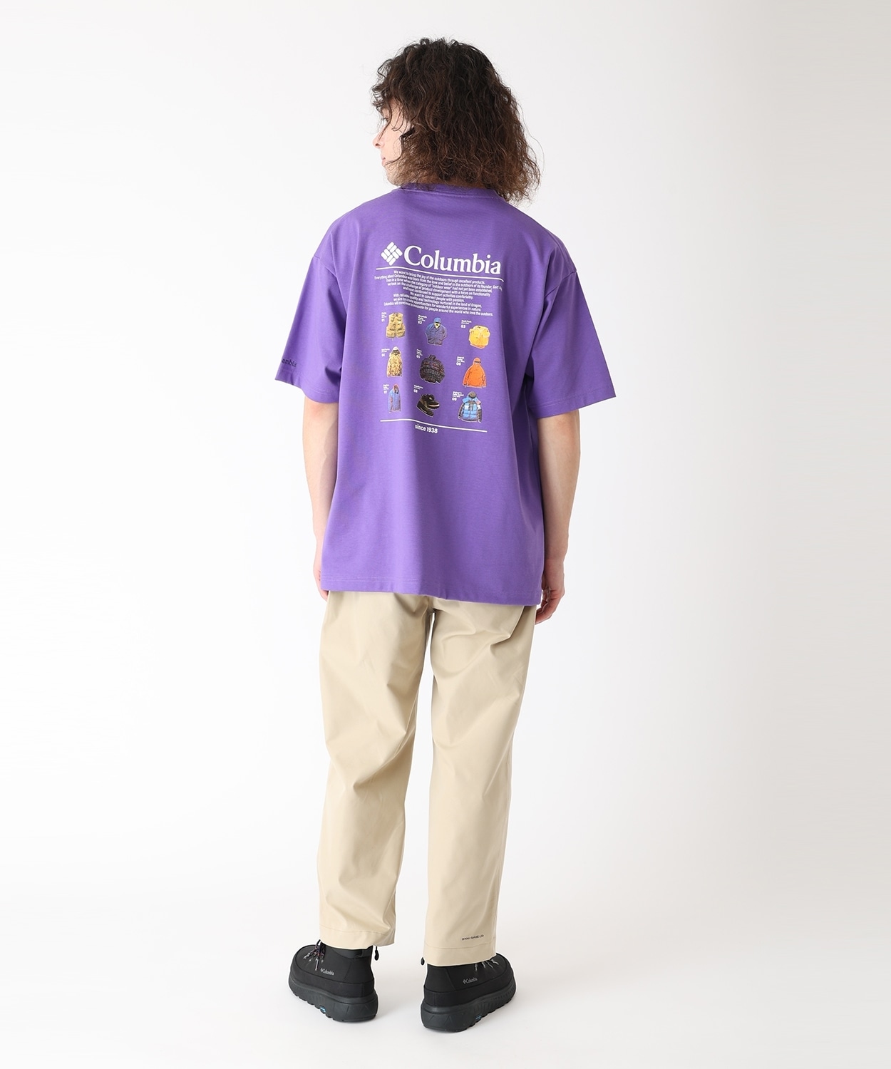 独自の吸湿速乾機能とサンプロテクション機能を備え、トレンド感のあるリラックスフィットで様々なボトムスに合わせやすい一着。バックスタイルには、コロンビアのマスターピースを落とし込んだヒストリカルなグラフィックデザインを2パターンご用意しました。