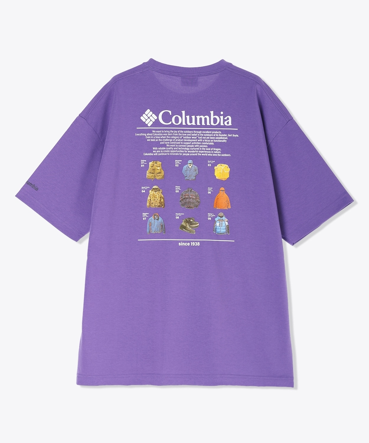 独自の吸湿速乾機能とサンプロテクション機能を備え、トレンド感のあるリラックスフィットで様々なボトムスに合わせやすい一着。バックスタイルには、コロンビアのマスターピースを落とし込んだヒストリカルなグラフィックデザインを2パターンご用意しました。