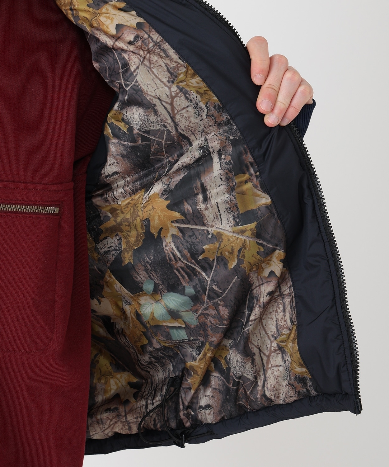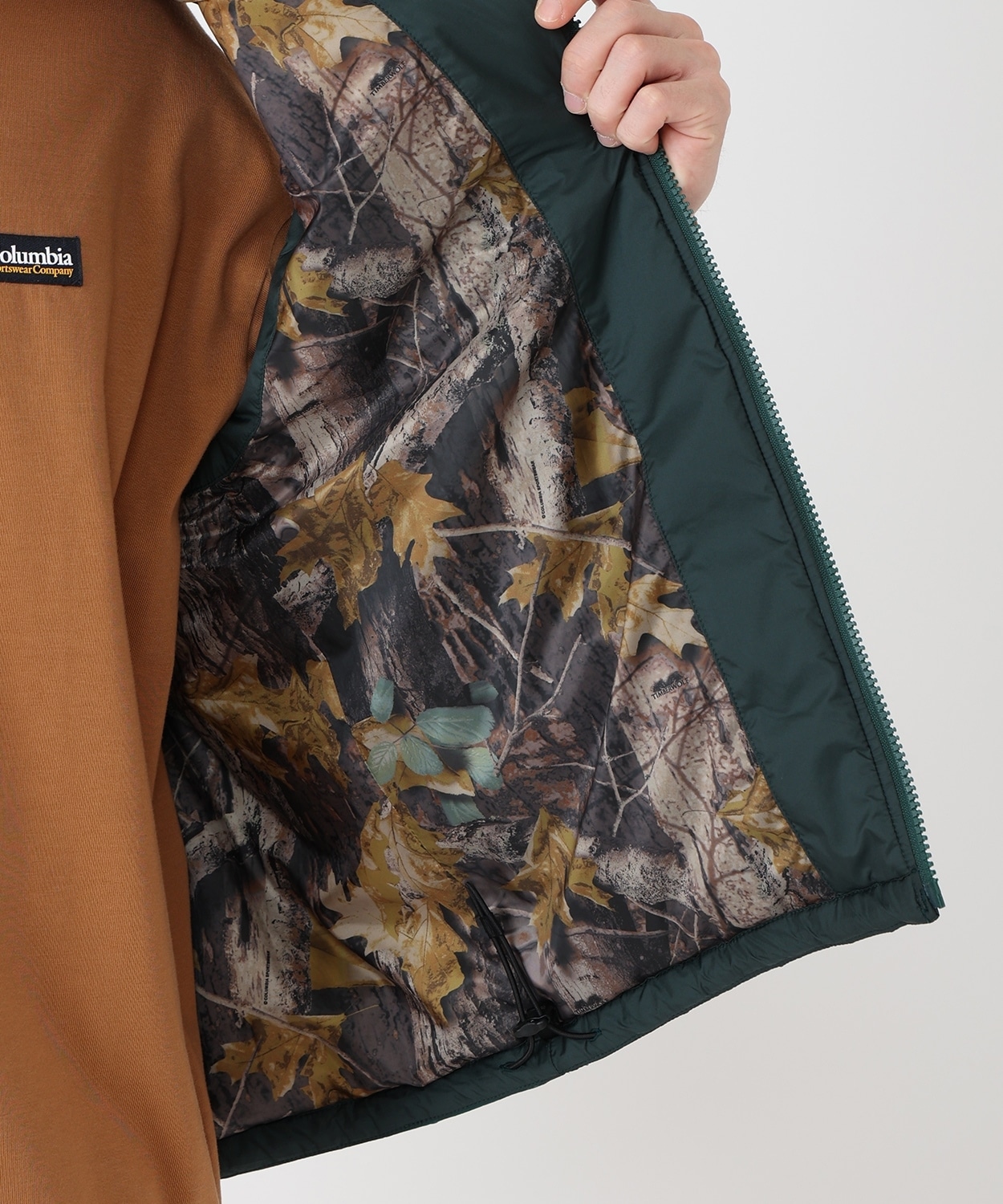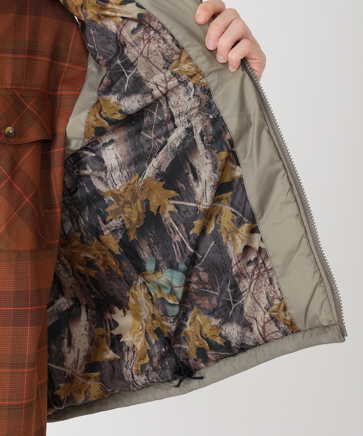 旧ロゴのラベルがレトロな雰囲気を醸し出し、リラックスフィットとコンパクトの丈感でトレンドライクに着こなせる一着。表地は軽量なナイロンタフタ素材をワントーンカラーで仕上げ、裏地に用いたTIMBERWOLF柄が存在感をアピール。さらに、少ない綿量で高い保温力を発揮するオムニヒート中綿を封入することで薄中綿に仕上げ、肌寒い秋口からロングシーズンに対応できるアイテムに仕上げました。
