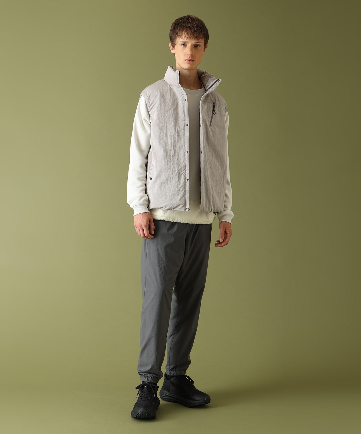 すっきりとしたシームレスなデザインが特徴のベスト。ストレッチの効いたトリコット素材の裏地には熱反射保温機能を備え、さらにRDS認証のダウンを封入することで、優れた保温性と軽量性も両立。レイヤリングしやすいフィット感で様々なコーディネートにも合わせやすく、仕事帰りのジムでのワークアウトや帰宅ラン、休日のアクティビティまでアクティブなライフスタイルをサポートするアイテムです。