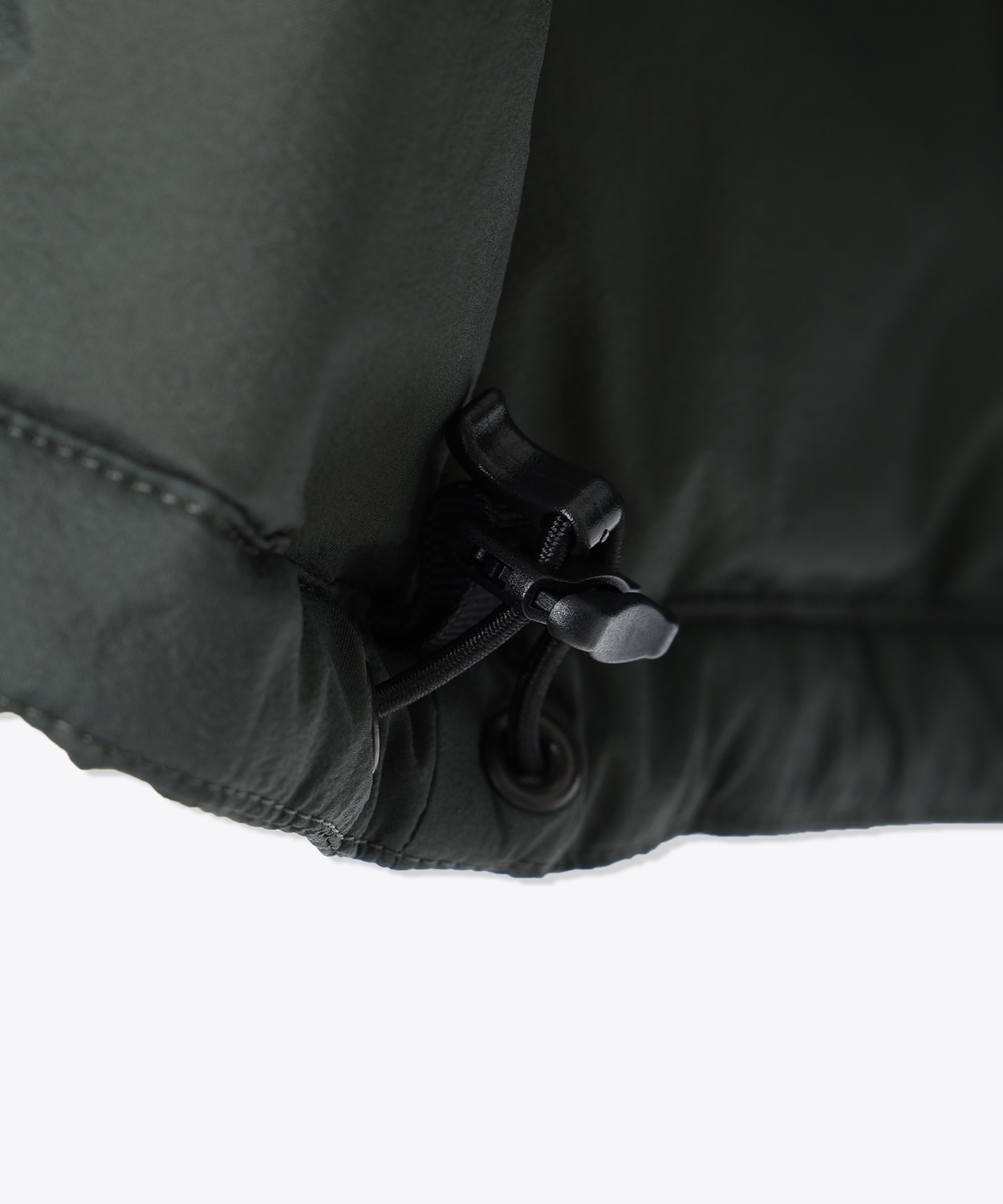 少ない綿でダウンに匹敵する暖かさを持ち、濡れても保温力が落ちにくく、洗濯できるのも魅力のひとつ。小雨に対応する、独自のはっ水(撥水)機能を備え、レイヤリングしやすいノーカラーデザインで、秋口はライトアウターとして、また真冬にはミドルレイヤーとしてもおすすめ。別売りジャケット[PM0633:Powder Fork Jacket]とのセット使いもおすすめです。