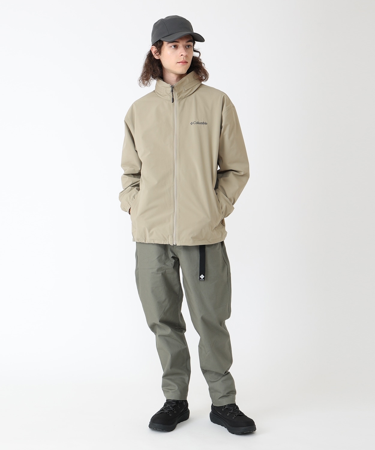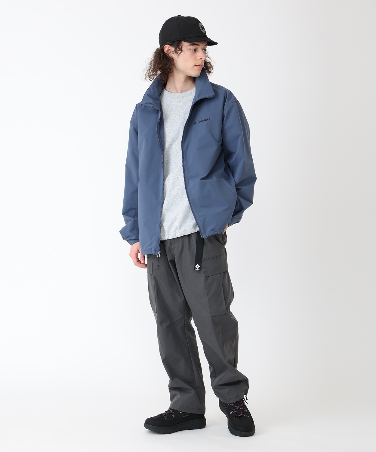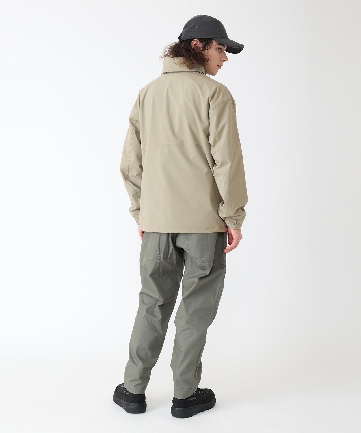 コットンライクなポリエステル素材は日常に馴染みやすく、動きに追従する優れたストレッチ性がノンストレスな着心地を実現。また、はっ水(撥水)機能「オムニシールド」が小雨を弾くため、お出かけ時の予期せぬ雨も安心です。