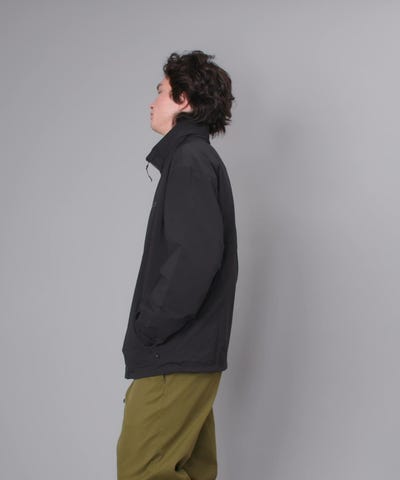 襟元のスタンドカラーがスタイリッシュな雰囲気を醸し出し、急な雨などに対応したエマージェンシー用途のフードは、襟の内側に折りたたんで収納することができます。また、裾はドローコード仕様を用いることで、コーディネートや天候に応じてシルエットチェンジも楽しむことができます。