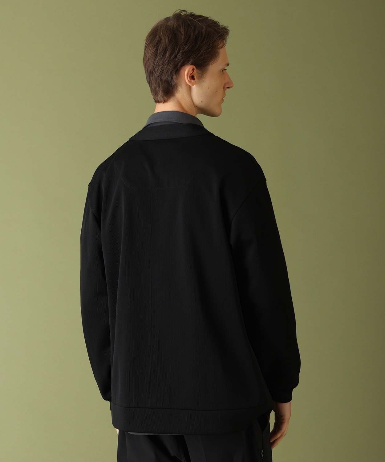 セーターライクなポリエステルニット素材を採用したカーディガン。