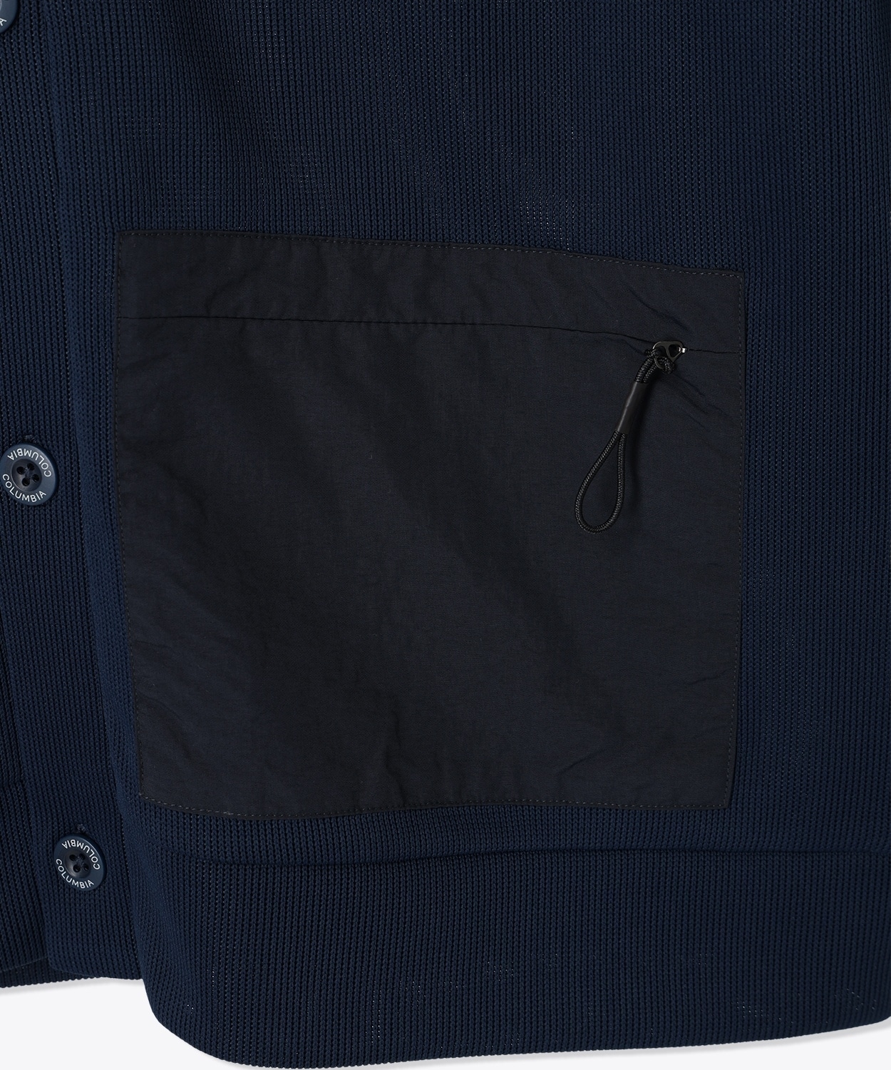 ビジネスシーンにマッチしやすい上品なリブ編みで仕上げつつも、腰元の布帛切替ファスナー式ポケットがアウトドア感をプラス。秋口には半袖Tシャツとのレイヤリング、真冬はアウターと合わせたミドルレイヤーと、ロングシーズンで着こなしを楽しめます。