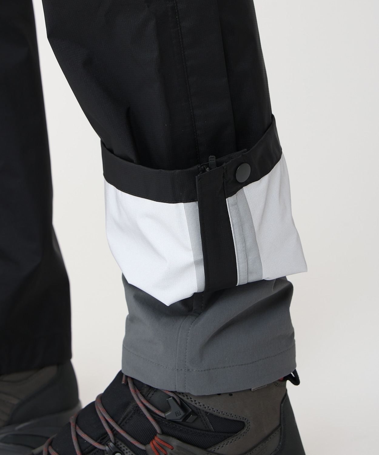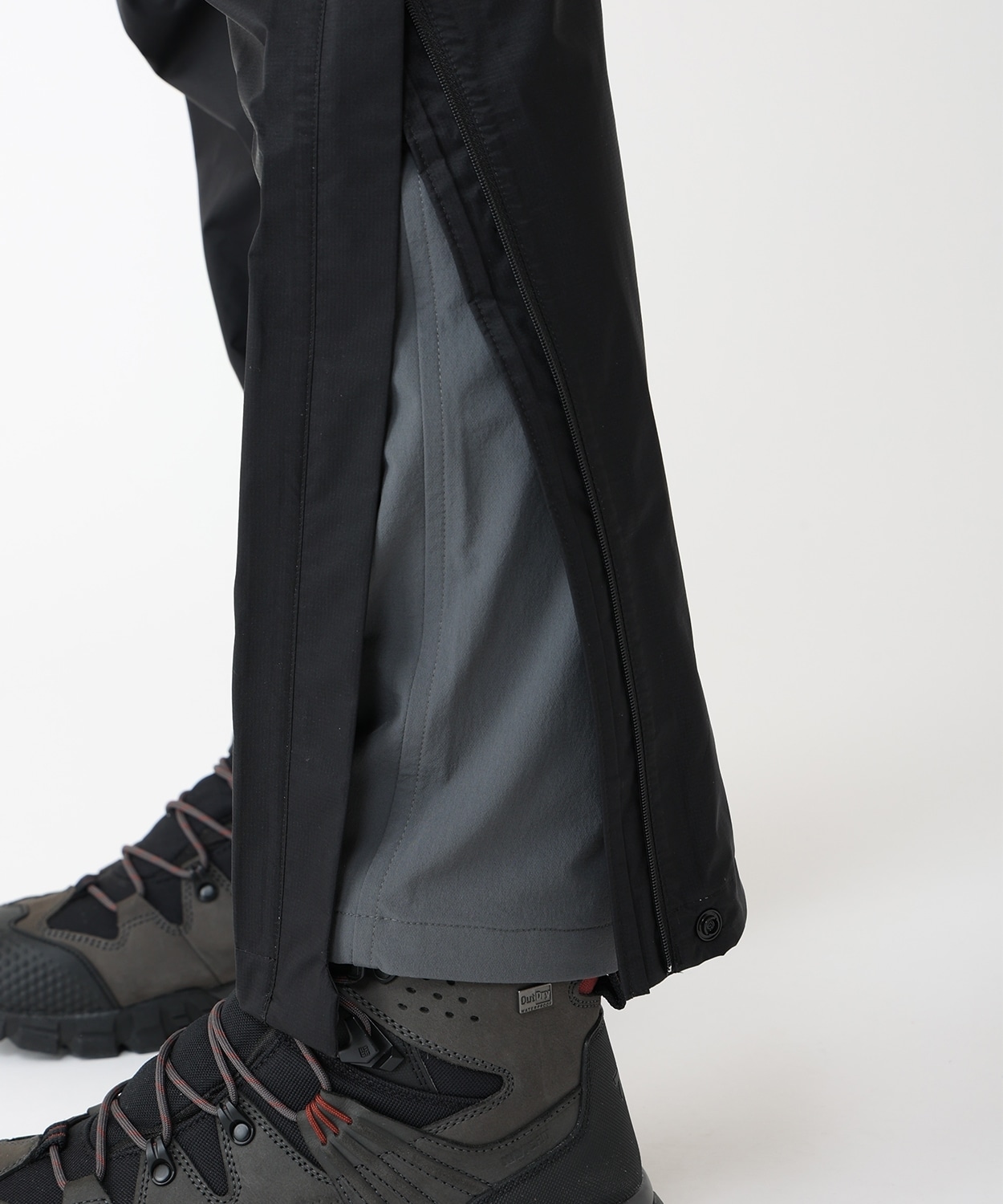 ハイクパンツの上からの着用でも嵩張らず、ウエストはドローコード仕様でノンストレスなはき心地を実現。また裾部分にはファスナーを設け、シューズを履いたままでも簡単に着脱ができます。