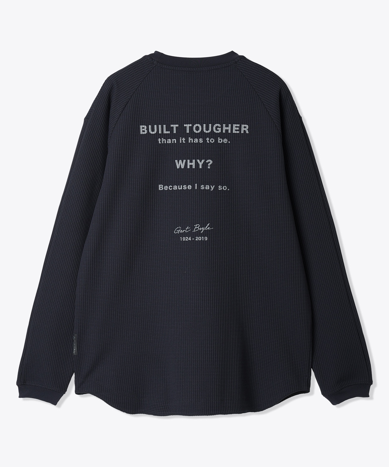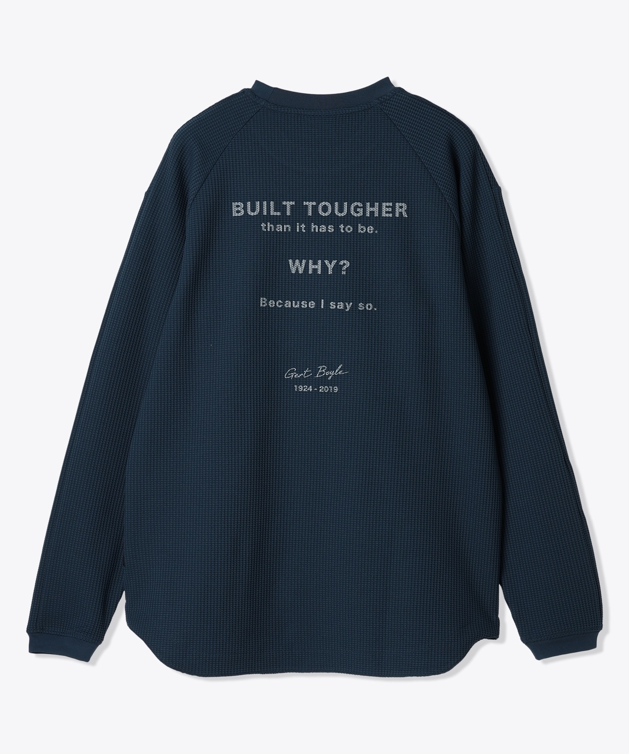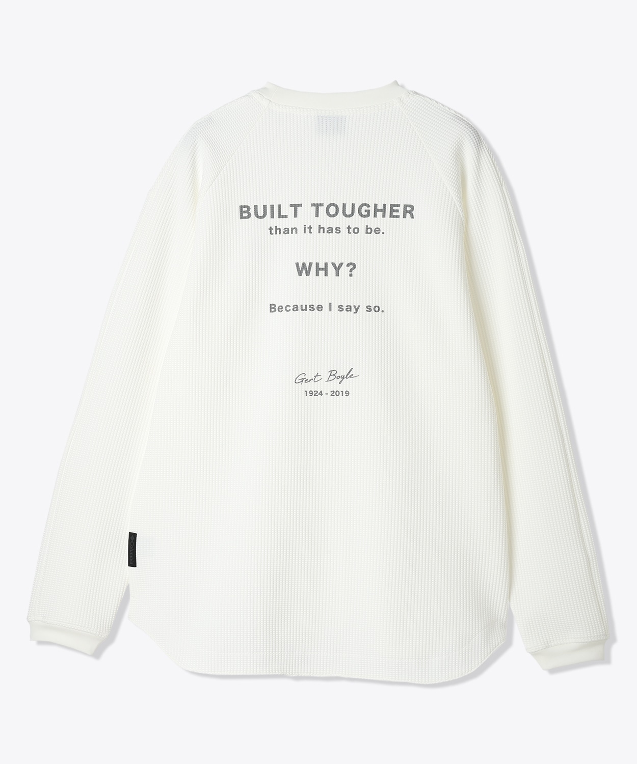 コロンビアの生みの親、ガード・ボイルの名言をバックグラフィックに落とし込んだ、大人カジュアルな雰囲気の長袖Tシャツ。