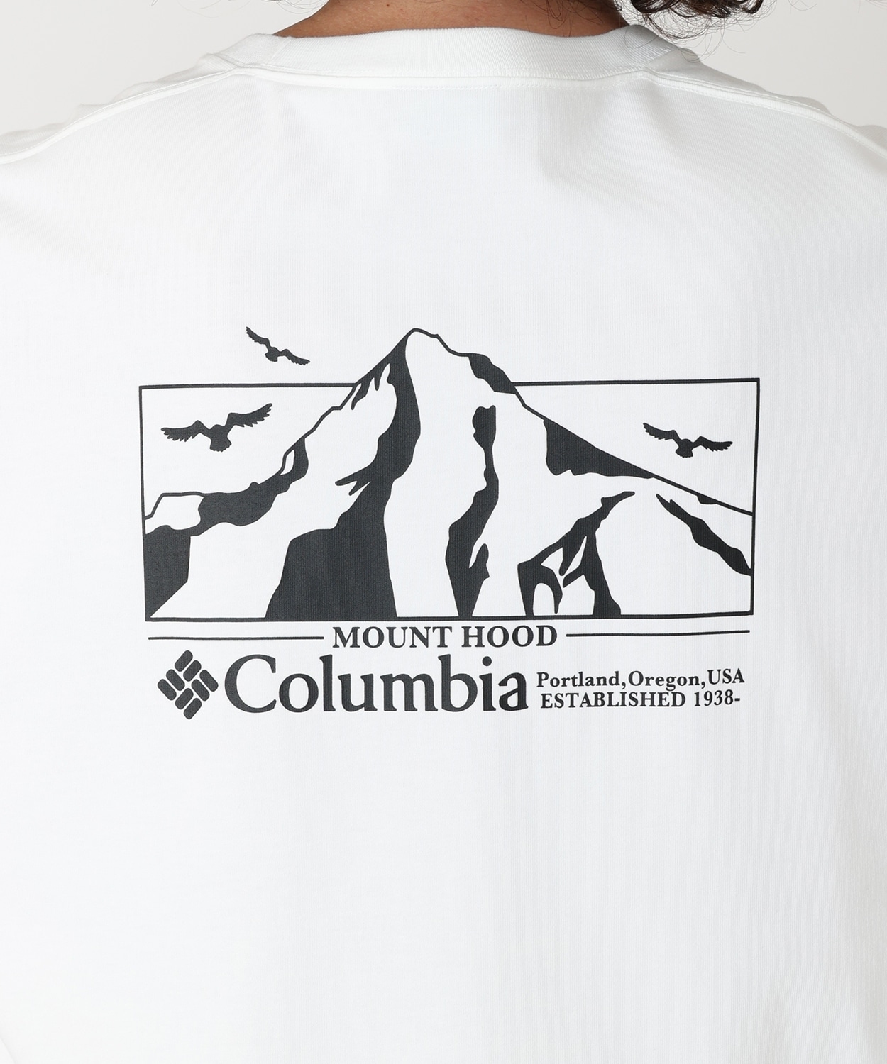 バックスタイルには、コロンビアとの親和性が高い雄大なMt. Hoodと、ポートランドにも生息するアメリカの国鳥ハクトウワシから着想を得た、壮大な自然の美しさをグラフィックに落とし込みました。