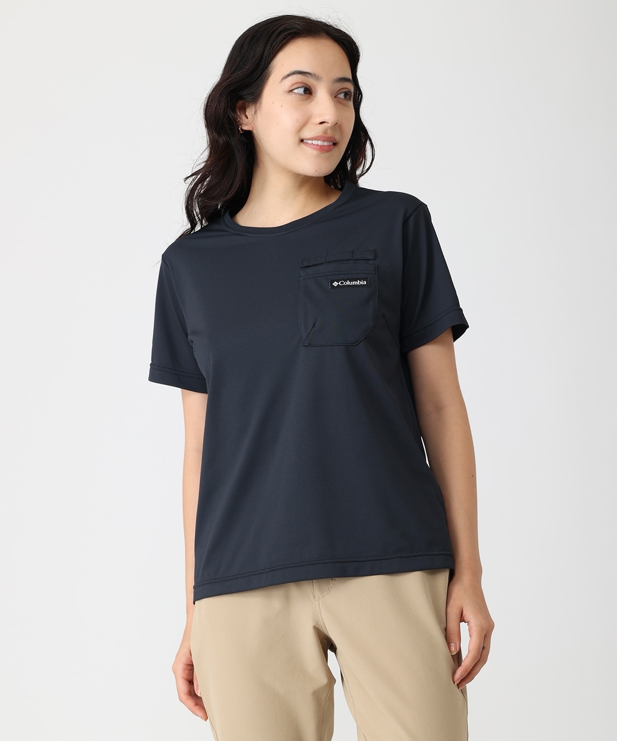 汗を素早く吸収して乾かす、吸湿速乾機能「オムニウィック」に加えて、紫外線から肌を守るサンプロテクション機能「オムニシェイド」と、夏山仕様の機能性も充実。消臭縫製糸を使用しているため、たくさん汗をかくような日も安心です。左胸ポケット上部にサングラスのテンプルを通すループを備え、行動中のサングラスの落下を防ぎます。