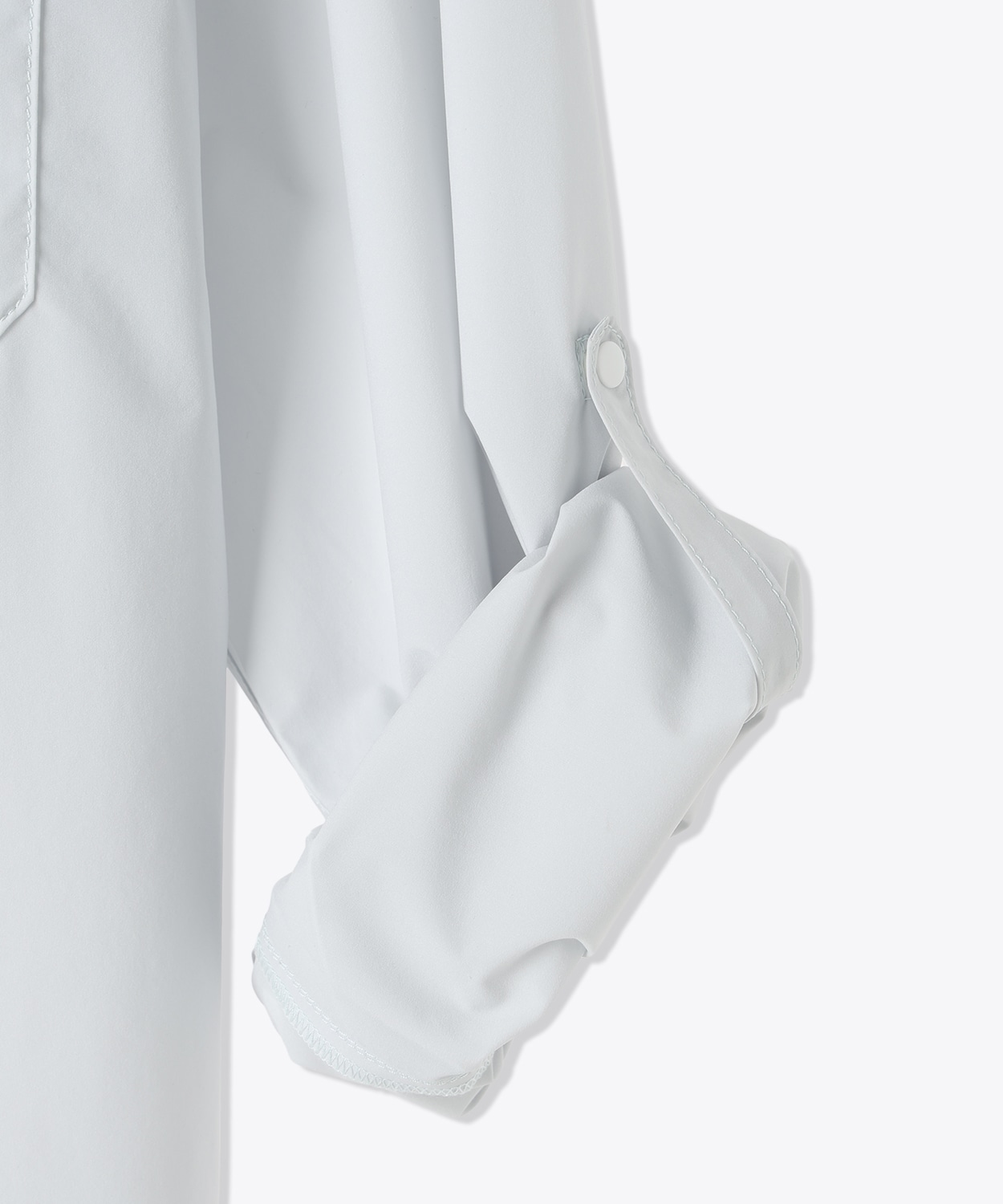 ロールアップした袖のズレ落ちを防ぐボタン付き