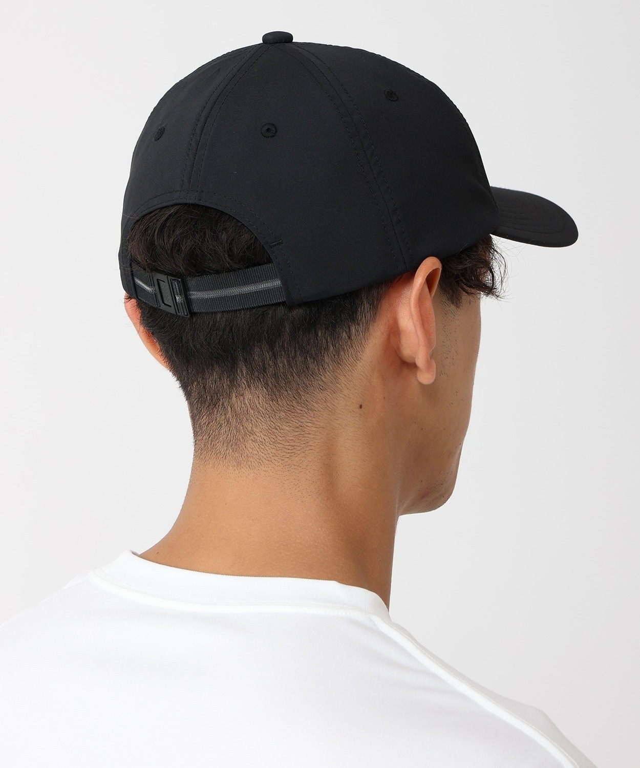 ・後頭部にサイズ調整可能なストレッチ性があるテープとプラスチックバックル