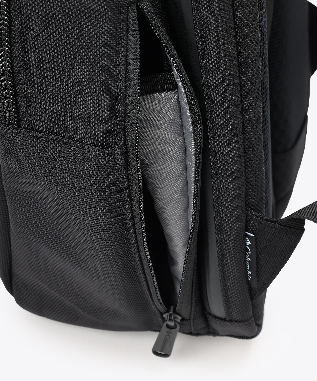 ・背面側コンパートメント:表面にPU加工を施したファスナー