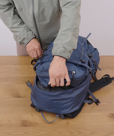 ・メインコンパートメントの開口部は大きく開く、パネルローディング仕様で収納物の確認やアクセスが簡単
