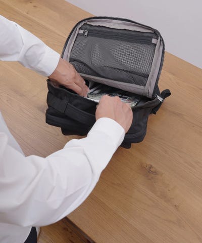 ・背面コンパートメントにPC(15インチ)対応のパット入りスリーブとタブレット用オープンポケット