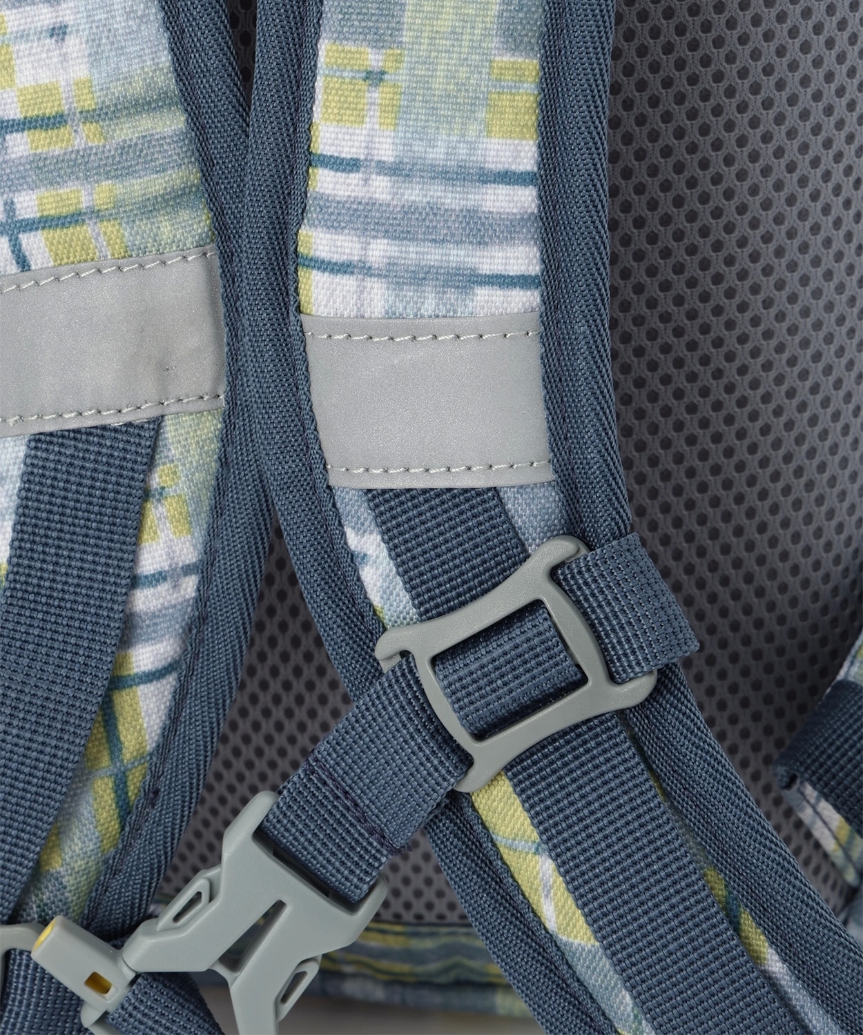 ・フロントパネルとショルダーハーネスに、夜間の視野性に考慮したリフレクター
