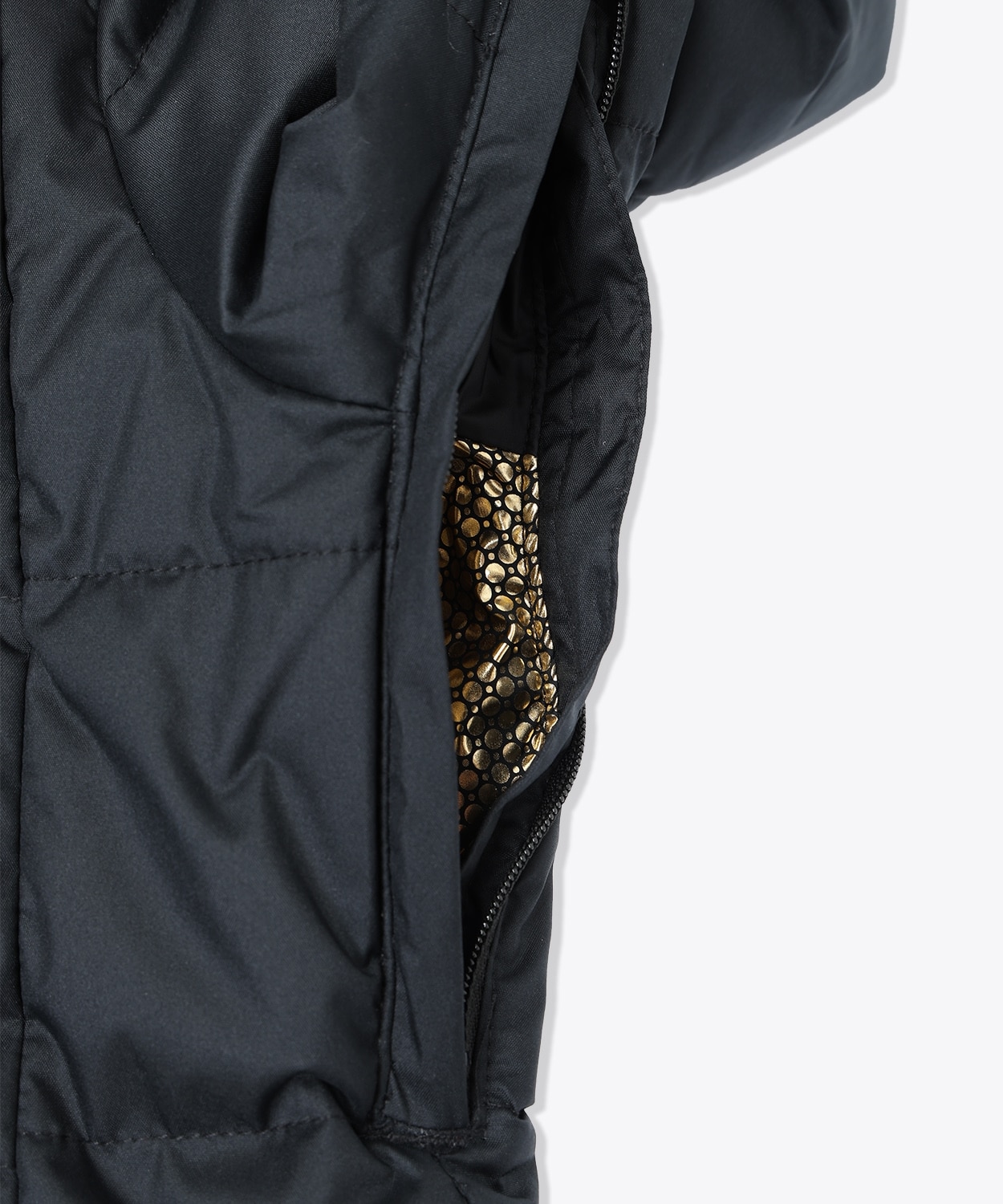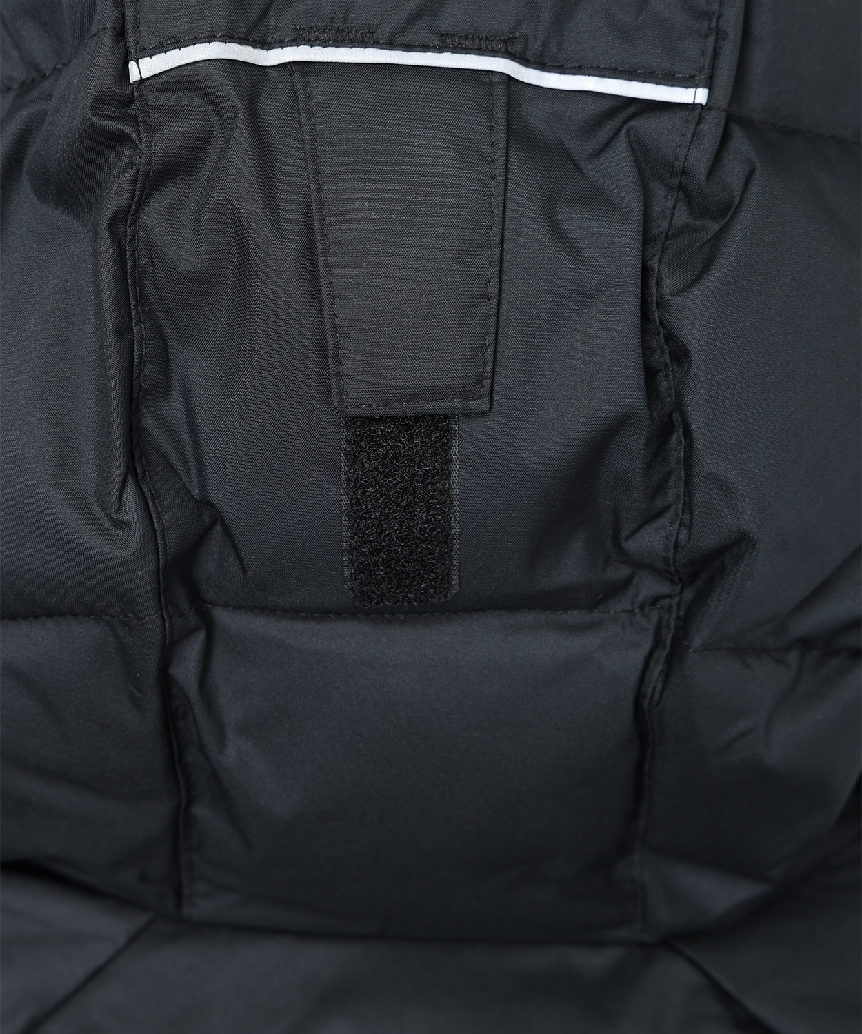 防水加工を施したポリエステル生地には独自のはっ水(撥水)機能と、裏地に熱反射保温機能を備え、環境に配慮した中綿入りで保温性を強化。ヘルメットを想定したフードデザインや視認性を高めるリフレクターを装備するなど安全面に考慮したディテールの他、必需品を収納できるポケットを各所に配置するなど、必要十分な機能を盛り込んだ一着です。