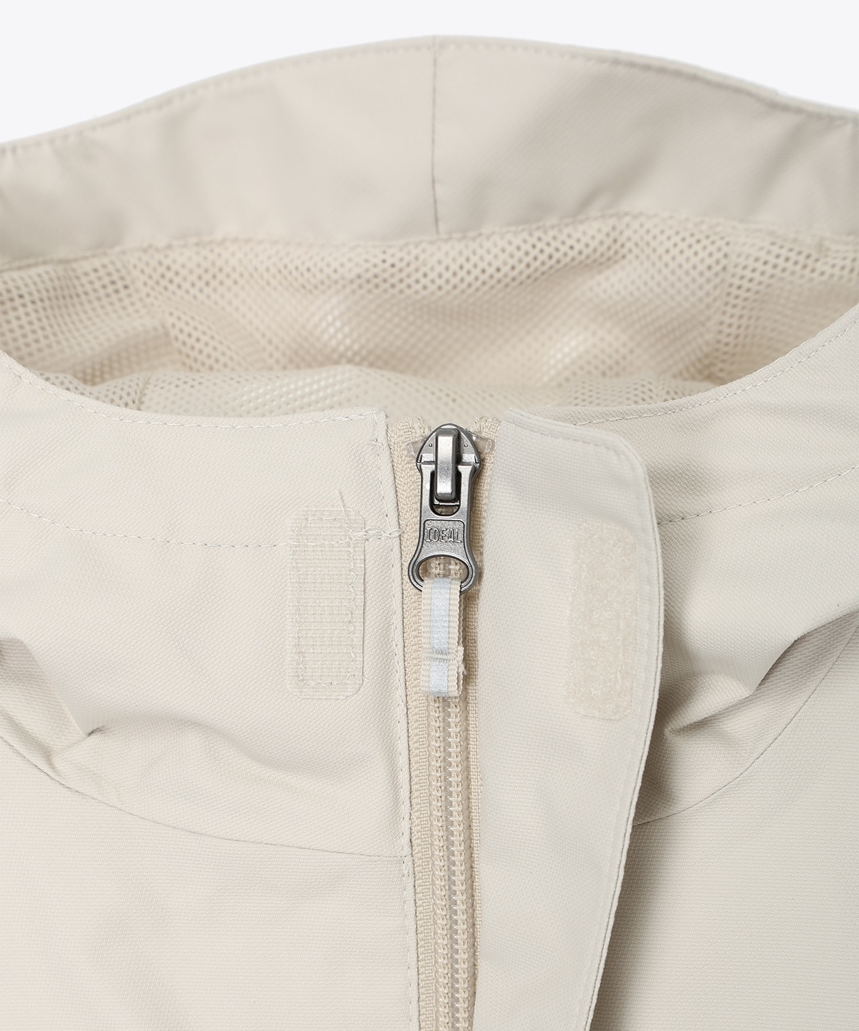 フードや肩周りはシームテープ加工を施し防水性を強化し、裏地はメッシュ付きで肌離れもよく、雨の日でもムレずに快適な着心地を実現。フード周りや袖口は部分的にストレッチ素材を設けることで、心地よいフィット感と十分な動きやすさも確保。安全面に考慮したネームタグやリフレクターにプラスし、コーディネートに取り入れやすいベーシックなデザインで、一枚あると便利なアイテムです。
