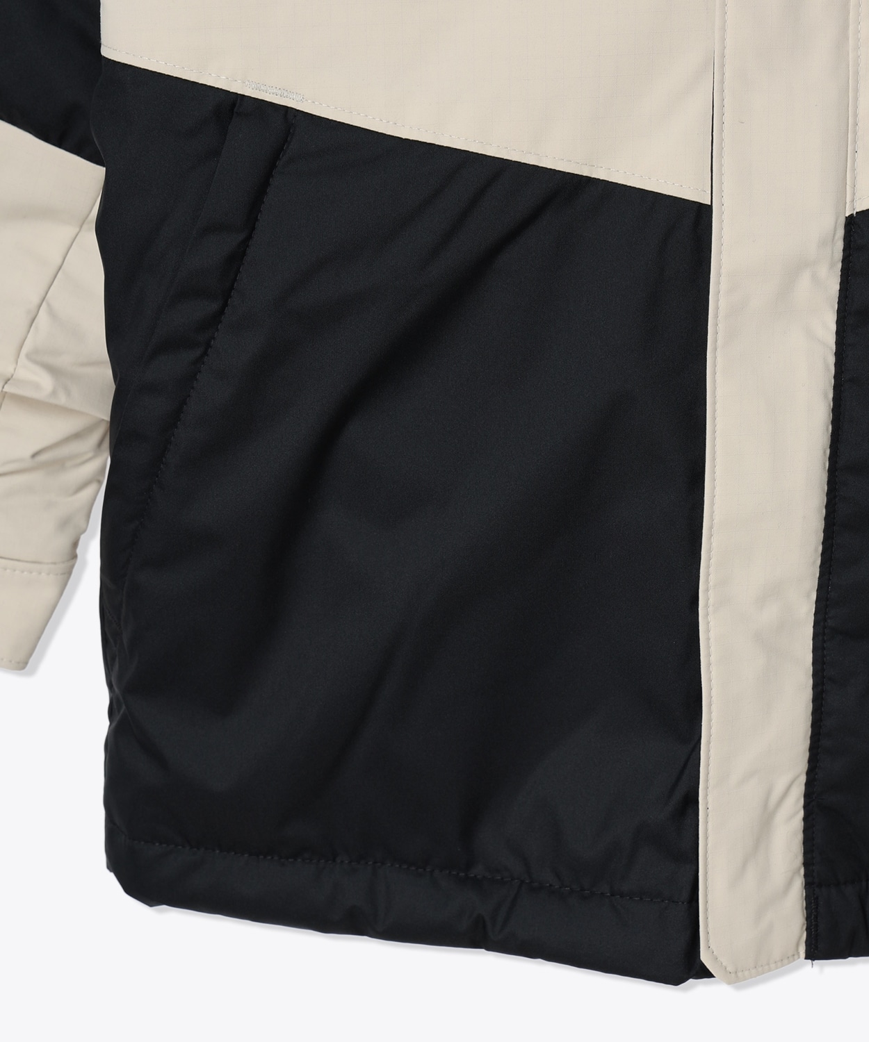 表地上部:ナイロン100% / 表地下部:ポリエステル100% / 裏地本体:ポリエステル100% / 裏地袖・裾部分:ナイロン100% / インナーカフ部分:ポリエステル87% , ポリウレタン13% / 充填物:ポリエステル100%