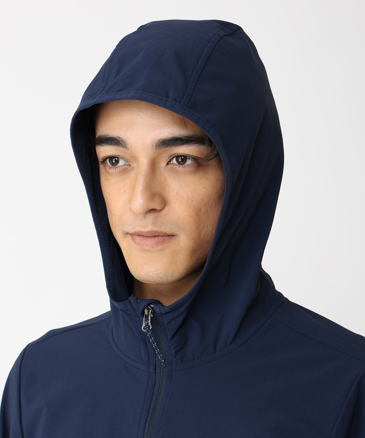 抜群の伸縮性を持つ4wayストレッチ素材は、激しい動きにも追従し、ノンストレスな着心地を実現。また、はっ水(撥水)機能「オムニシールド」を備えているため、小雨時も安心です。