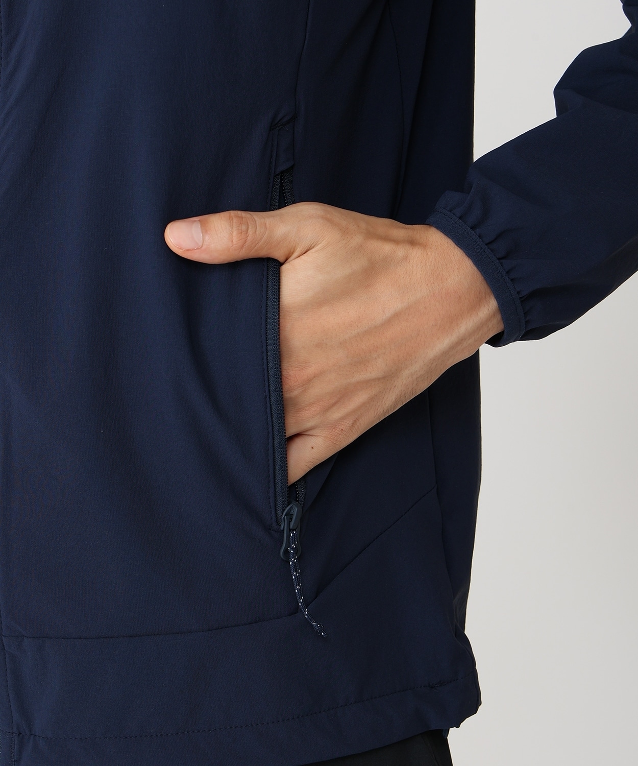 防風性とストレッチ性を兼ね備えたウーブン素材を使用