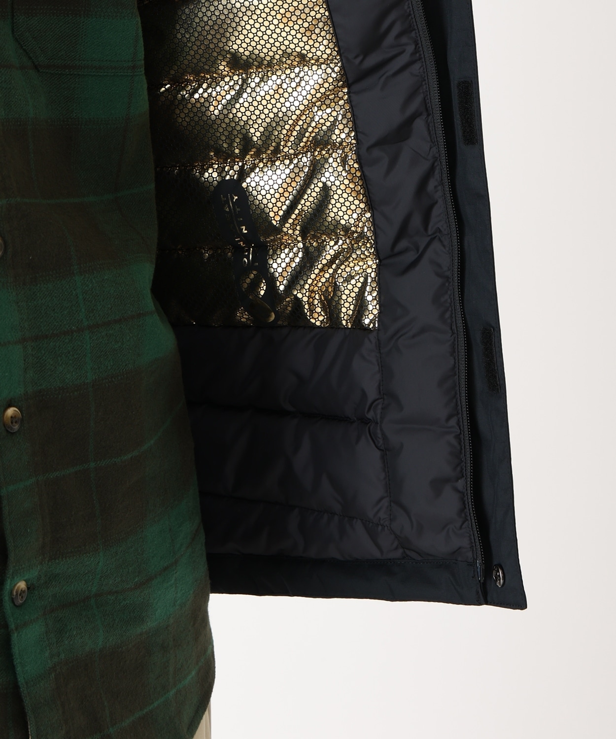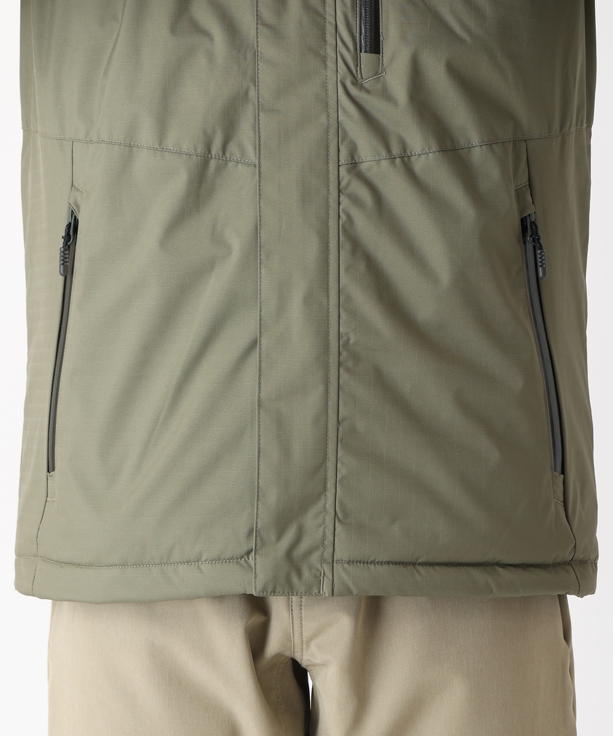 体の熱を利用して暖かさを保つ、熱反射保温機能を搭載した化繊中綿入りジャケット。