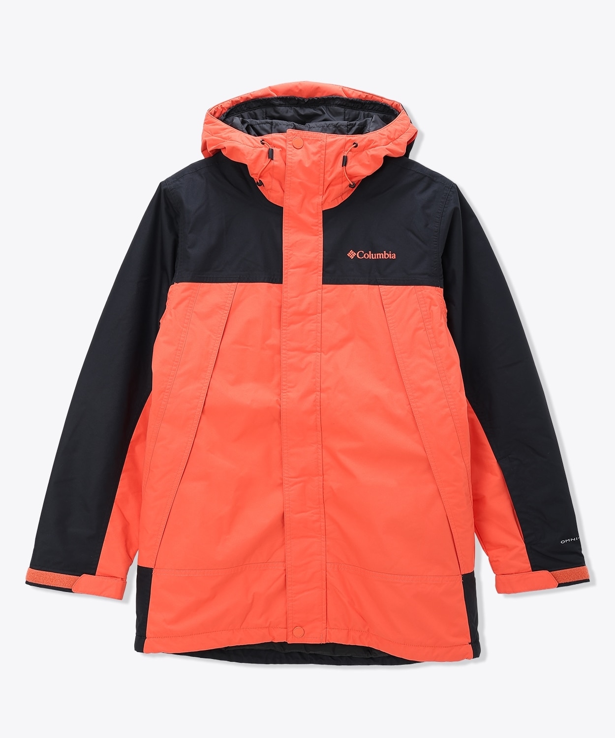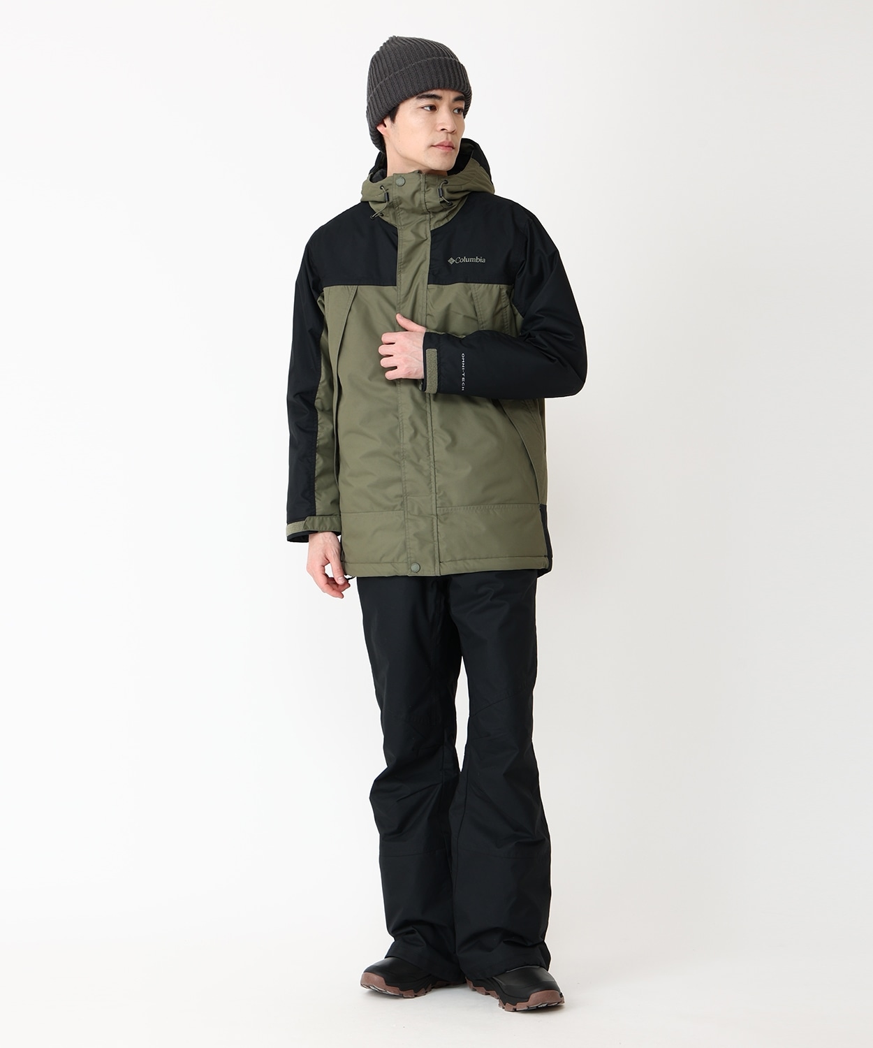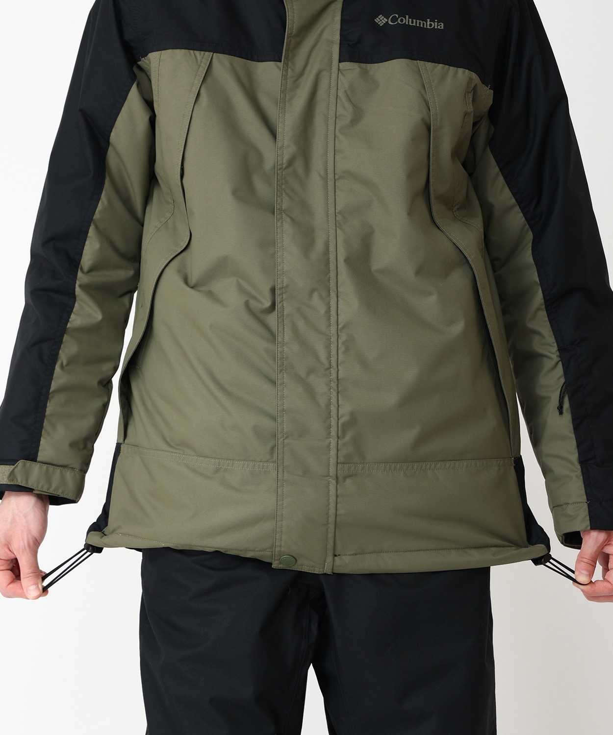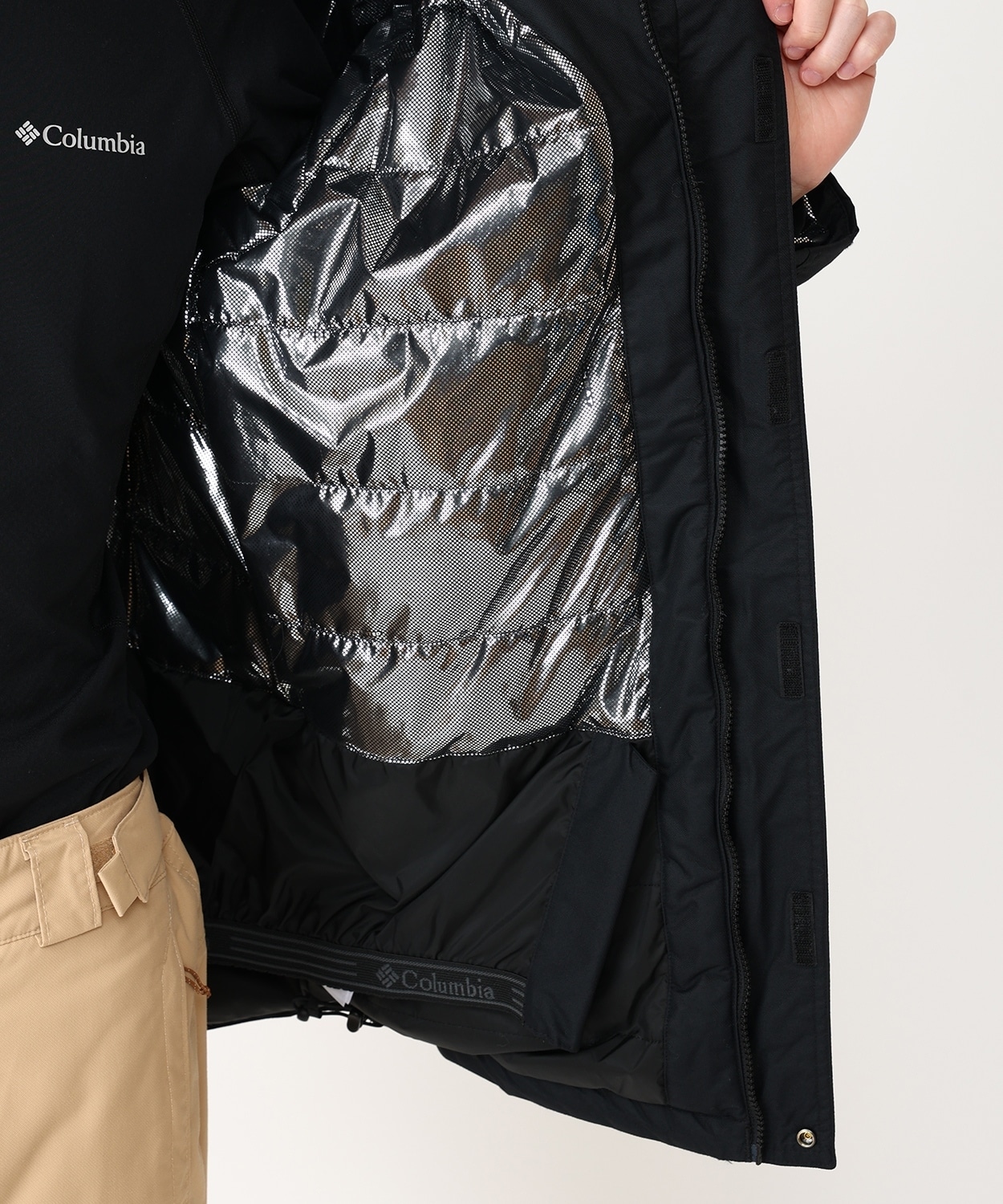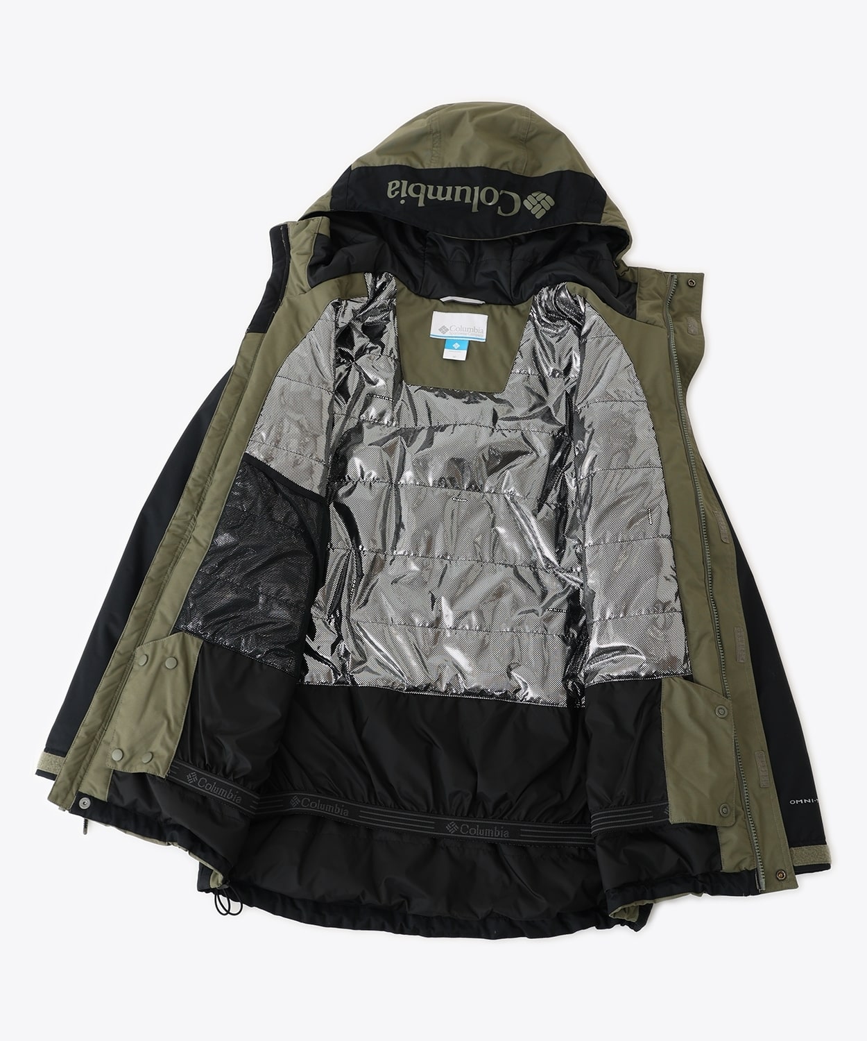 雨に強くムレにくい独自の防水透湿機能を備え、裏地に熱反射保温機能が体の熱を反射し暖かさをキープ。ヘルメットに対応するフードデザインや、ゲレンデに必須なポケットワーク、冷気を防ぐ前立仕様やチンガードを装備するなど、ウィンタースポーツに適したディテールも充実。フードを被るとブランドロゴがアクセントとなり、コロンビアらしさを込めたアイテムです。