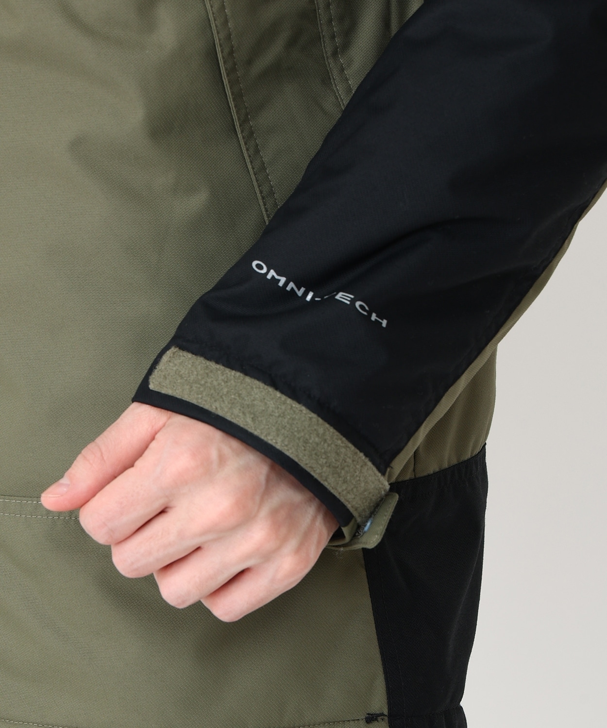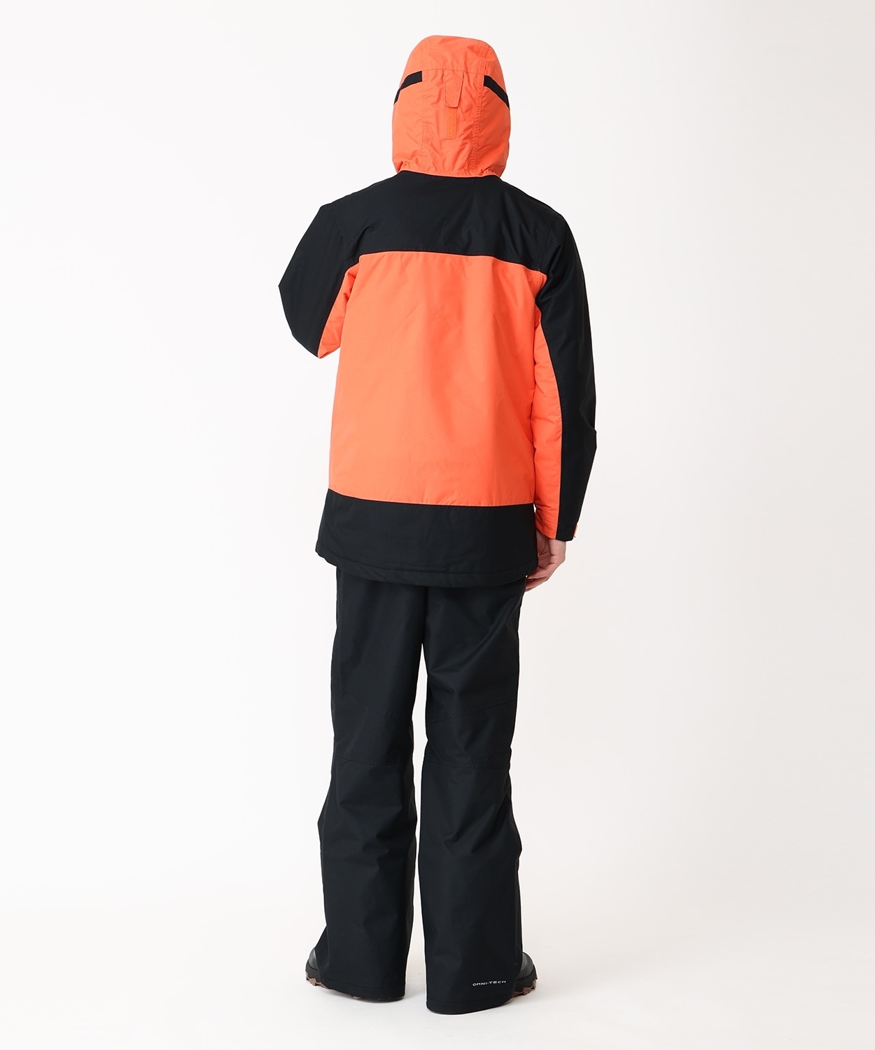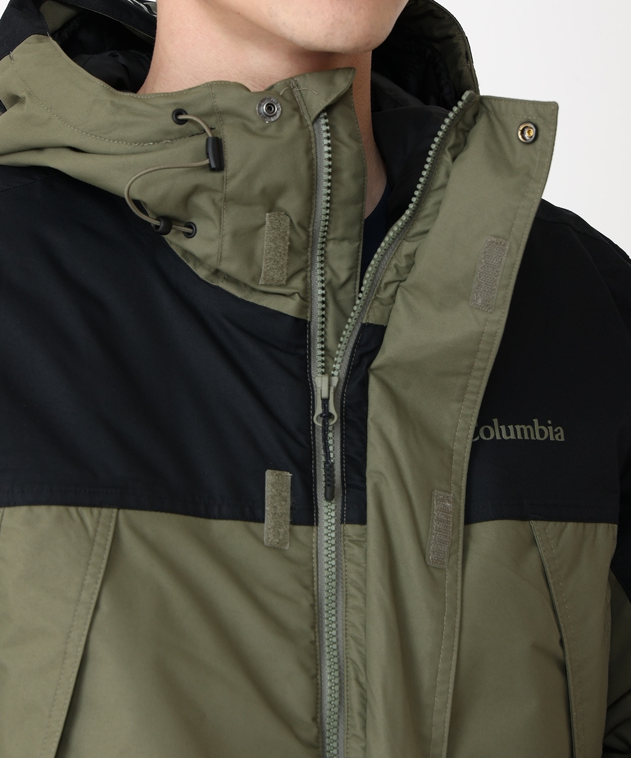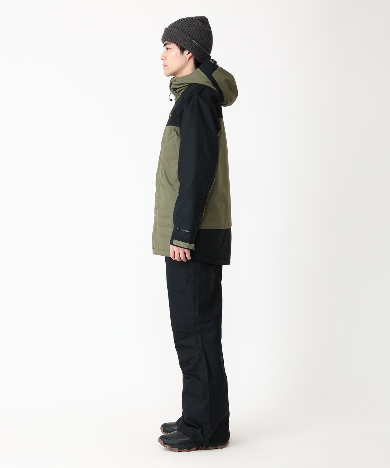 雨に強くムレにくい独自の防水透湿機能を備え、裏地に熱反射保温機能が体の熱を反射し暖かさをキープ。ヘルメットに対応するフードデザインや、ゲレンデに必須なポケットワーク、冷気を防ぐ前立仕様やチンガードを装備するなど、ウィンタースポーツに適したディテールも充実。フードを被るとブランドロゴがアクセントとなり、コロンビアらしさを込めたアイテムです。