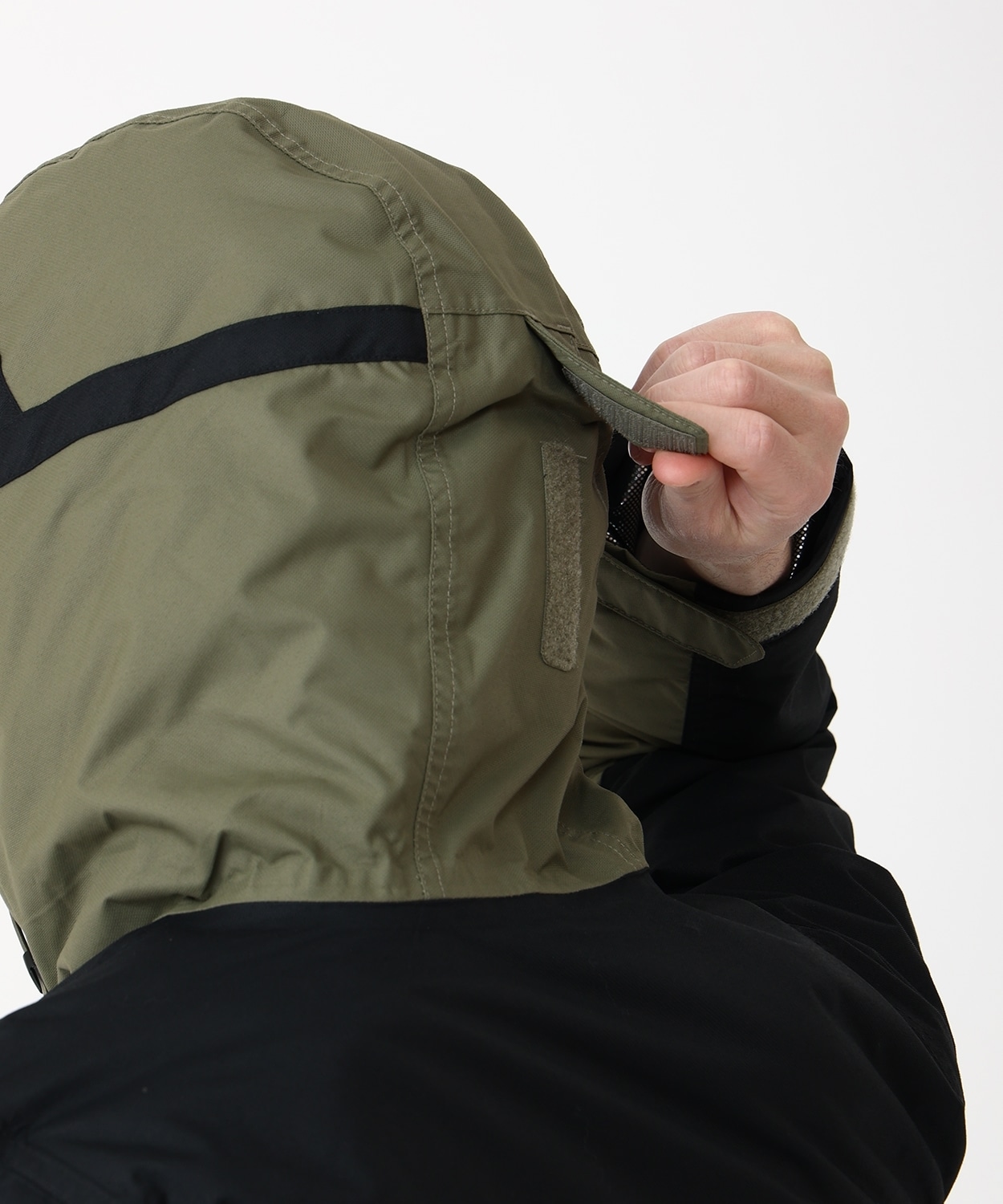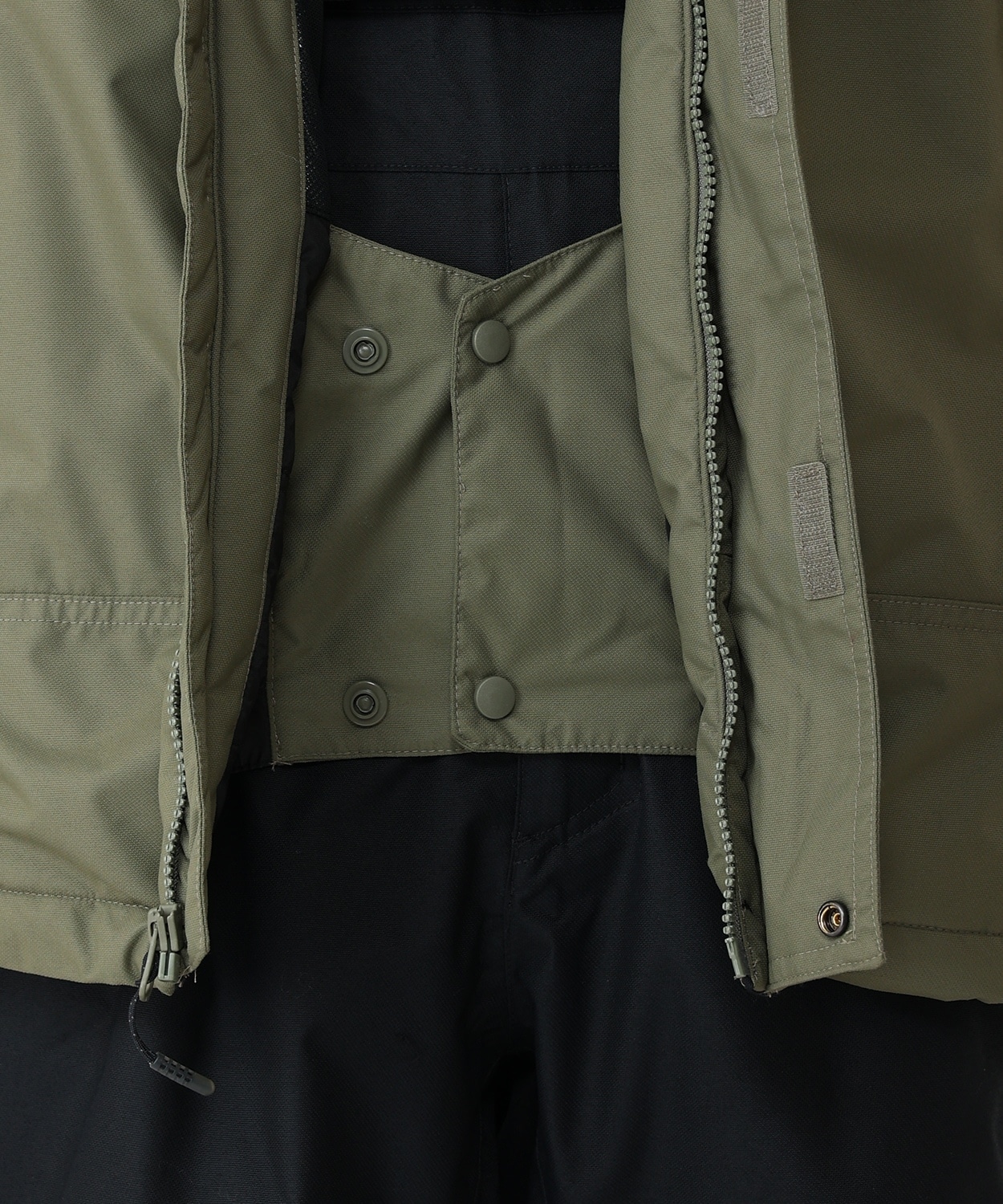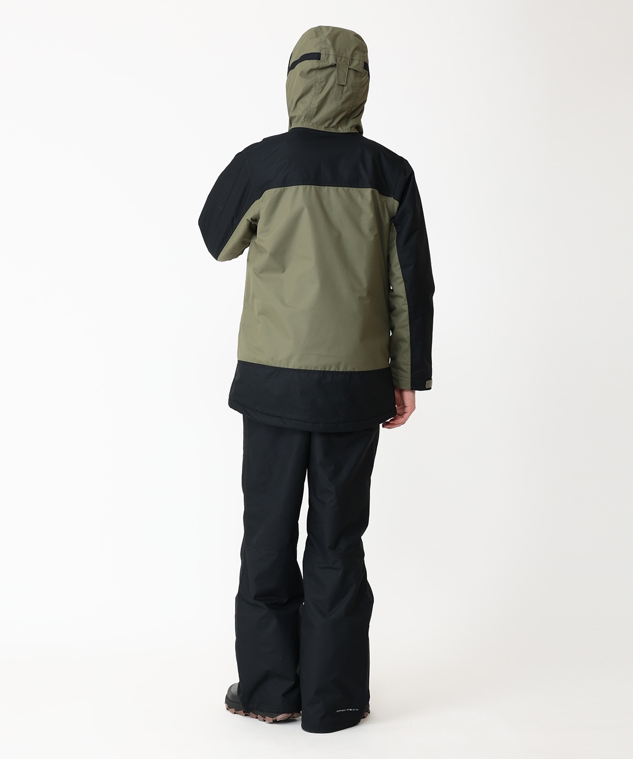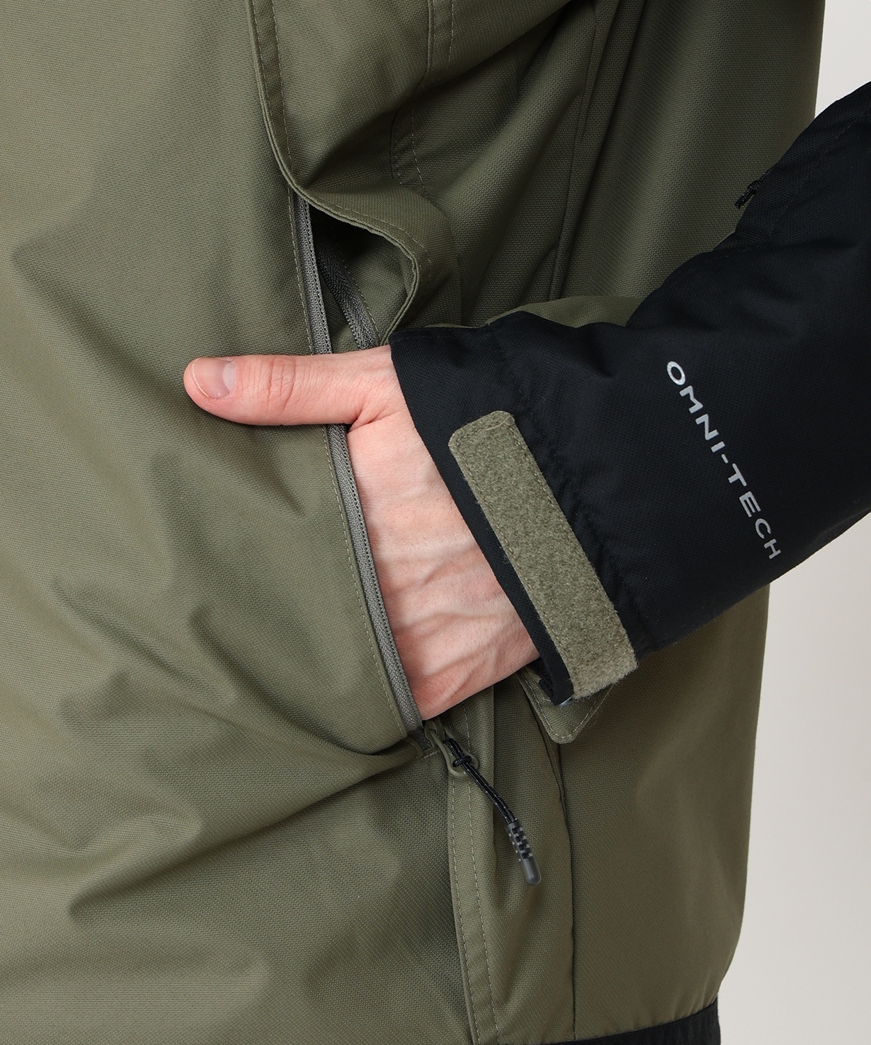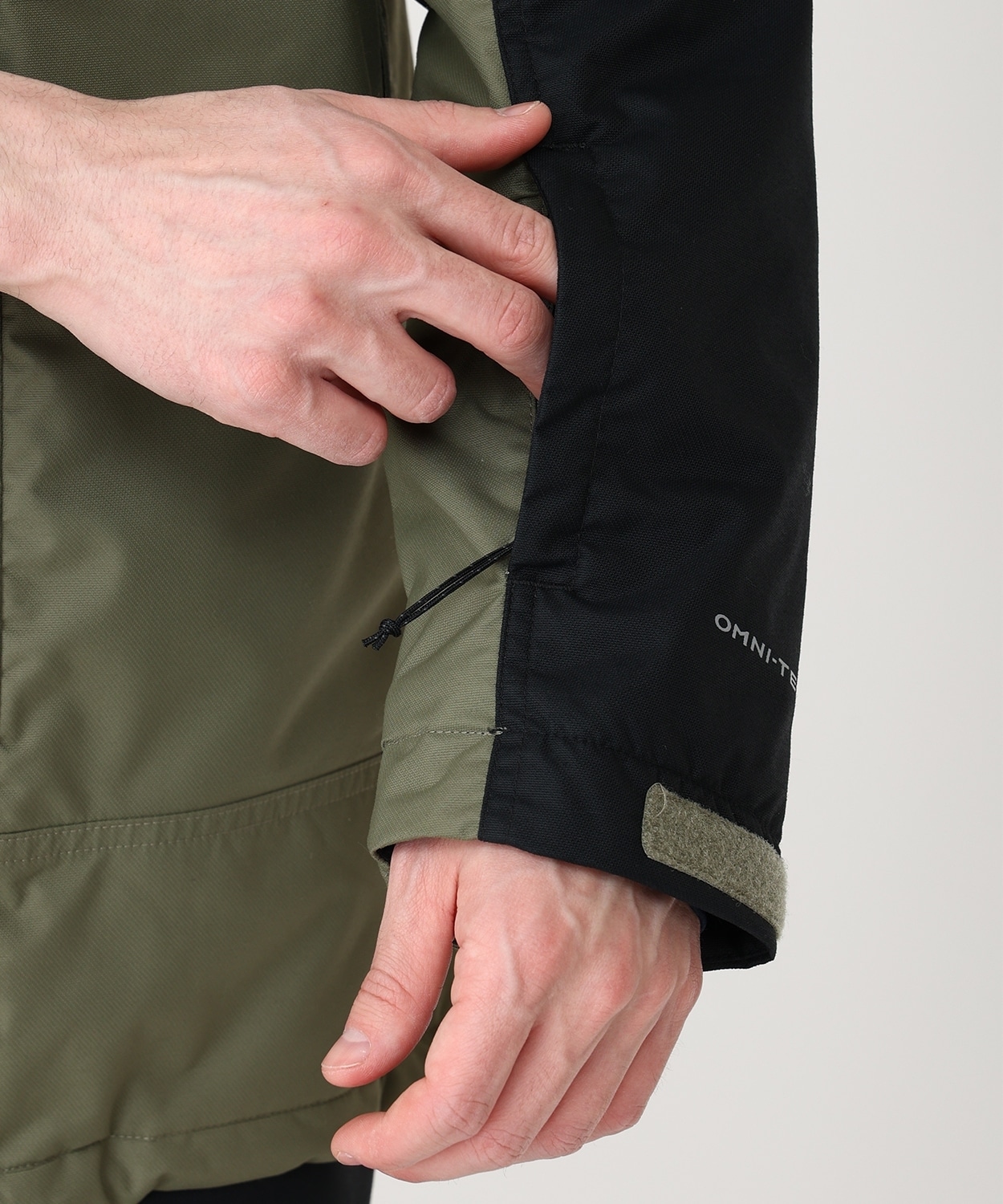 雨に強くムレにくい独自の防水透湿機能を備え、裏地に熱反射保温機能が体の熱を反射し暖かさをキープ。ヘルメットに対応するフードデザインや、ゲレンデに必須なポケットワーク、冷気を防ぐ前立仕様やチンガードを装備するなど、ウィンタースポーツに適したディテールも充実。フードを被るとブランドロゴがアクセントとなり、コロンビアらしさを込めたアイテムです。
