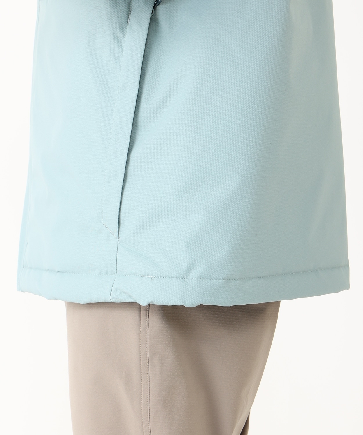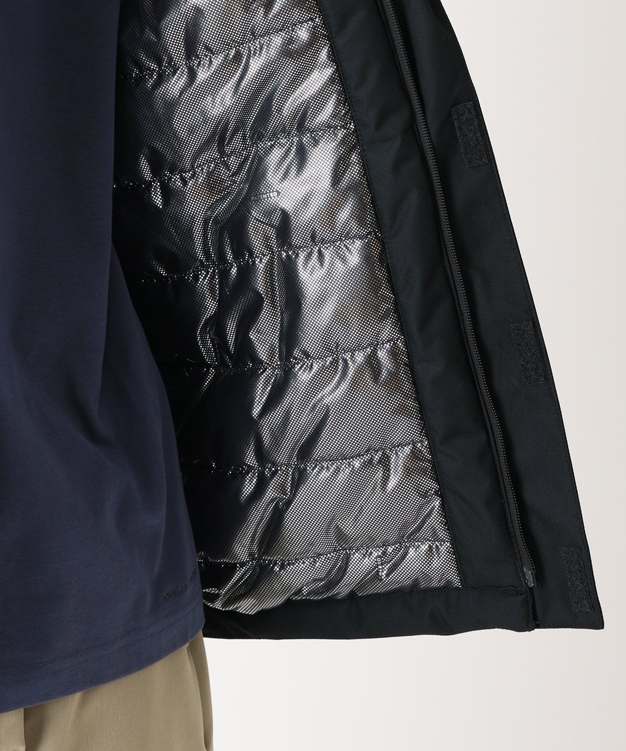 雨に強くてムレにくい防水透湿機能に加えて、裏地には熱反射保温機能が体の熱を反射して暖かさをキープ。さらに軽量性に優れた化繊中綿を封入することで保温効果を高め、雨濡れによる保温力の低下を防ぎます。コーディネートに取り入れやすいベーシックなデザインで、ウィンターシーズンのワードローブに備えておきたいアイテムです。