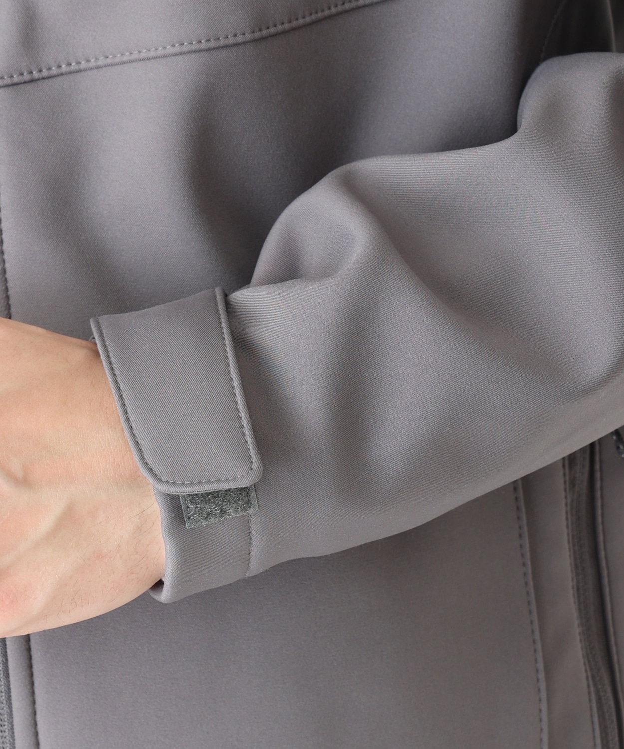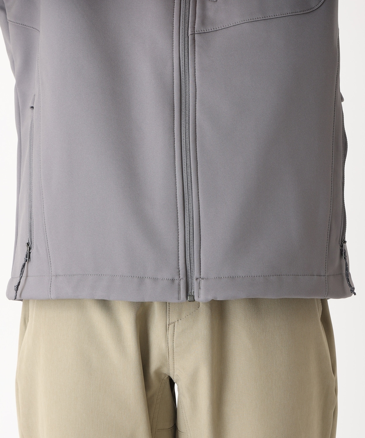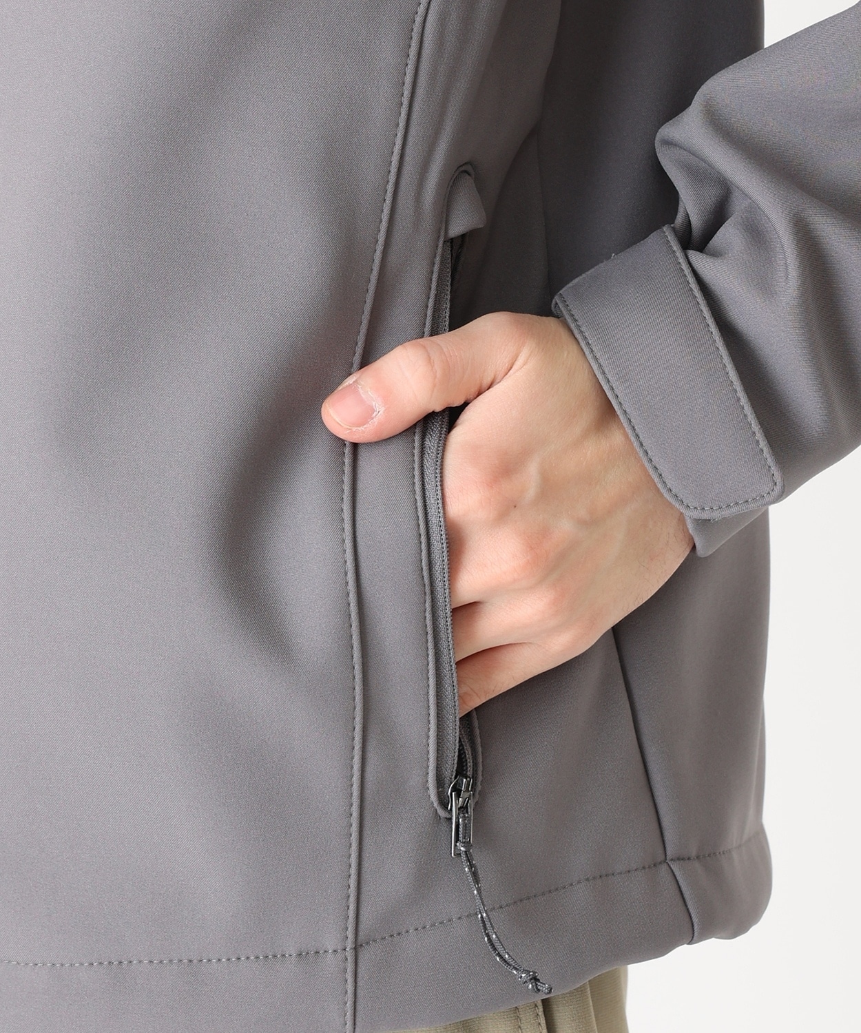 小雨程度の水を弾く、はっ水(撥水)機能を備えたソフトシェルジャケット。