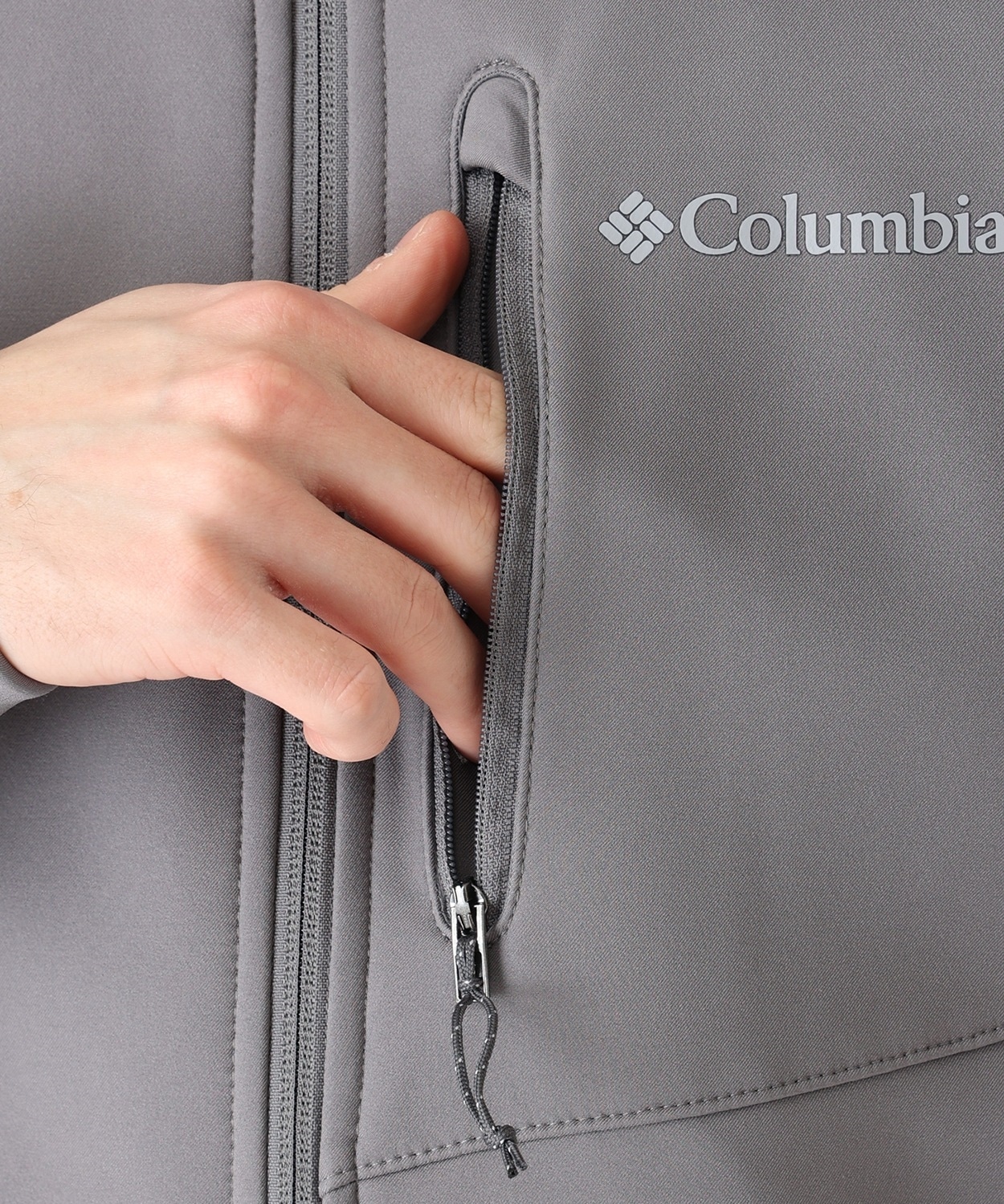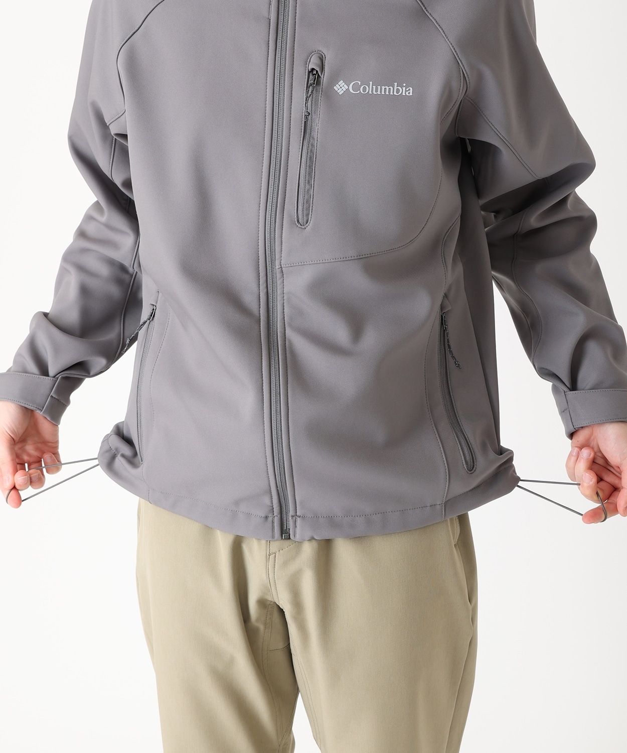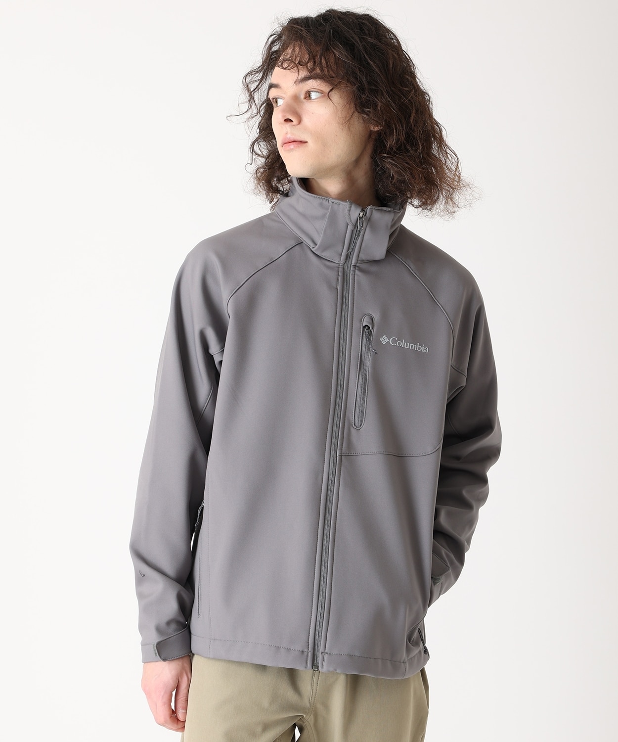 小雨程度の水を弾く、はっ水(撥水)機能を備えたソフトシェルジャケット。