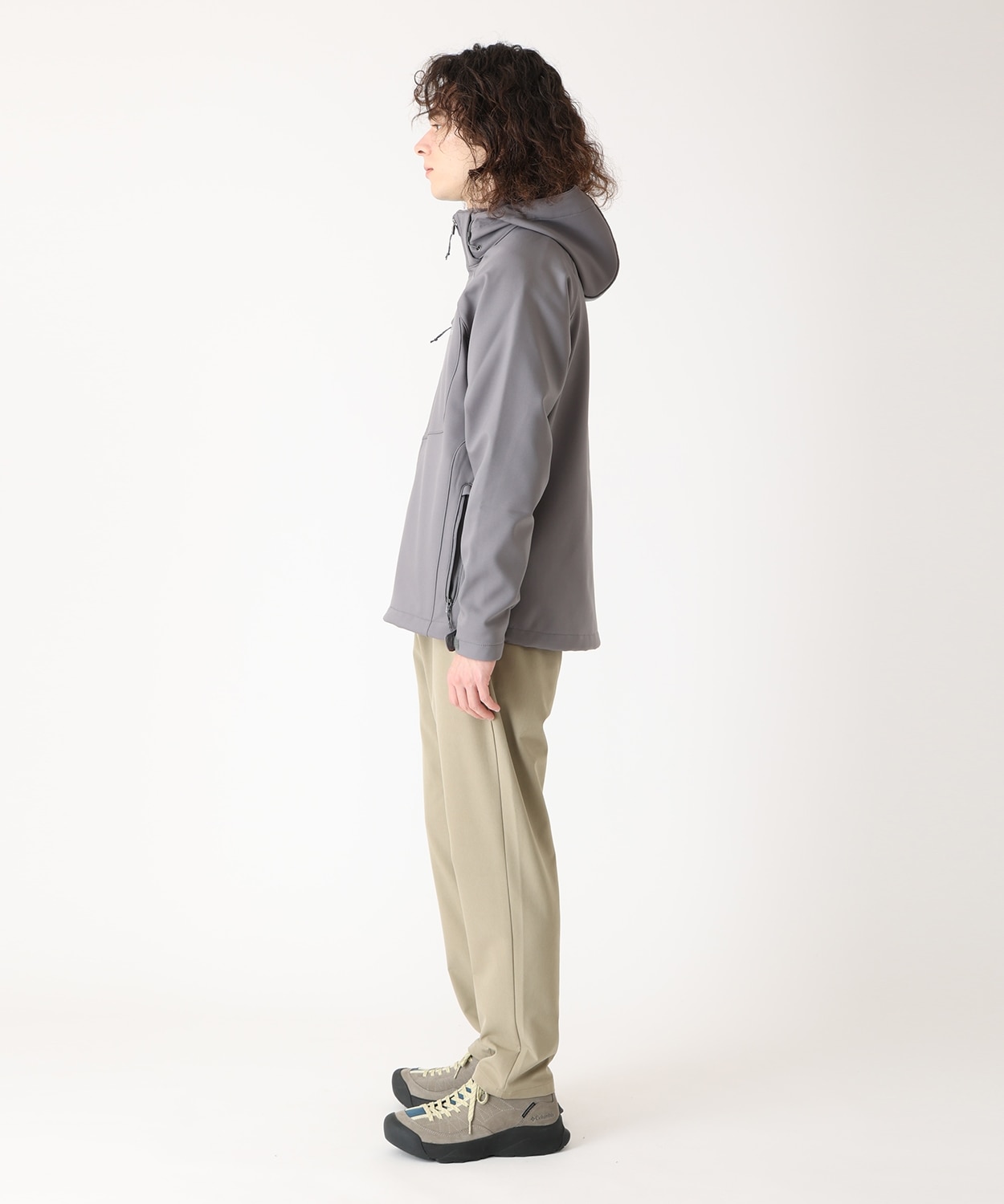 防風性とストレッチ性に富んだウーブン素材と、動きに追従するアクティブフィットを採用することで、行動中における激しい動きもノンストレス。用途に応じて取り外しができるフードや、収納力に優れた3つのファスナーポケットを装備するなど、秋ハイクからウィンタートレッキングまでロングシーズンで活躍します。