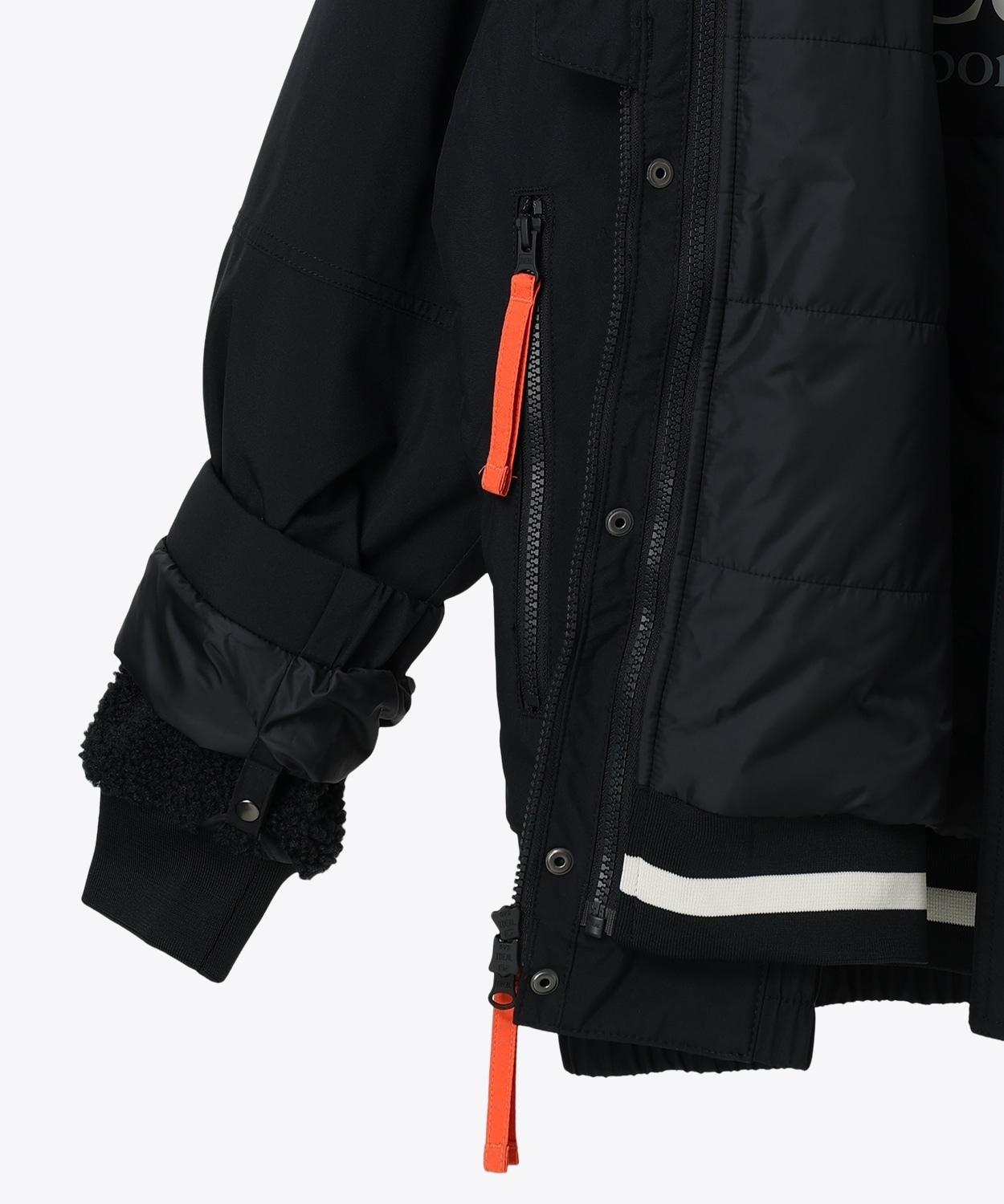 首元裏の”Powder Keg”がポイントのアウターは防水透湿機能を備え、ウィンターアクティビティに適した充実のポケットワークを装備。中綿入りのパファージャケットは、両面を異素材で仕立てたリバーシブルタイプ。ともにややゆとりのあるサイズ感に仕上げ、専用のファスナーで連結できるインターチェンジシステムにより、最大4wayの着こなしを楽しめます。