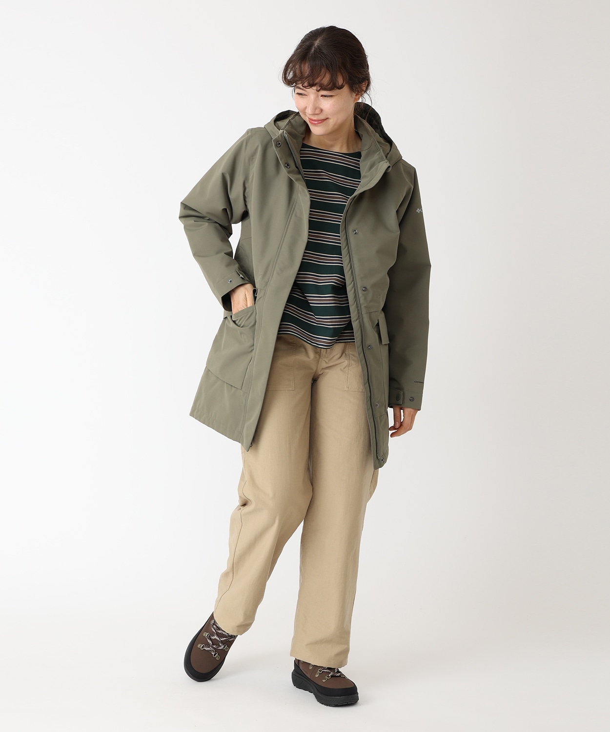 雨に強くムレにくい、独自の防水透湿機能にフルシーム加工を施すことで防水性を強化。裏地に用いた熱反射保温機能に加えて、中綿を封入することで、しっかりとした暖かさをキープ。フードは用途に応じて取り外しができ、ウエストはドローコードでスタイルチェンジを可能にするなど、アウトドアから日常までマルチに活躍します。