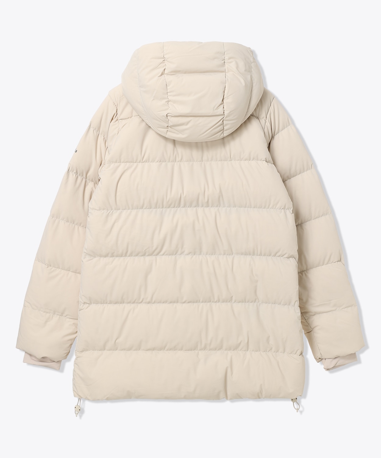表地に用いたソフトな肌ざわりのストレッチ素材と、環境に配慮した650FPダウンを封入することで、ふんわりと包み込むような暖かさが魅力的。フードは用途に応じて取り外しができ、首元と裾はフィット感を調整できるドローコードを設けるなど、アウトドアから日常までシーンを問わず着用できる一着に仕上げました。