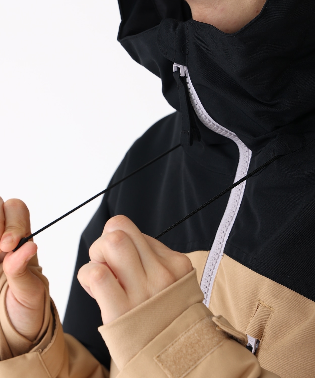 ・フード:後頭部にフィット感を調整できるドローコード