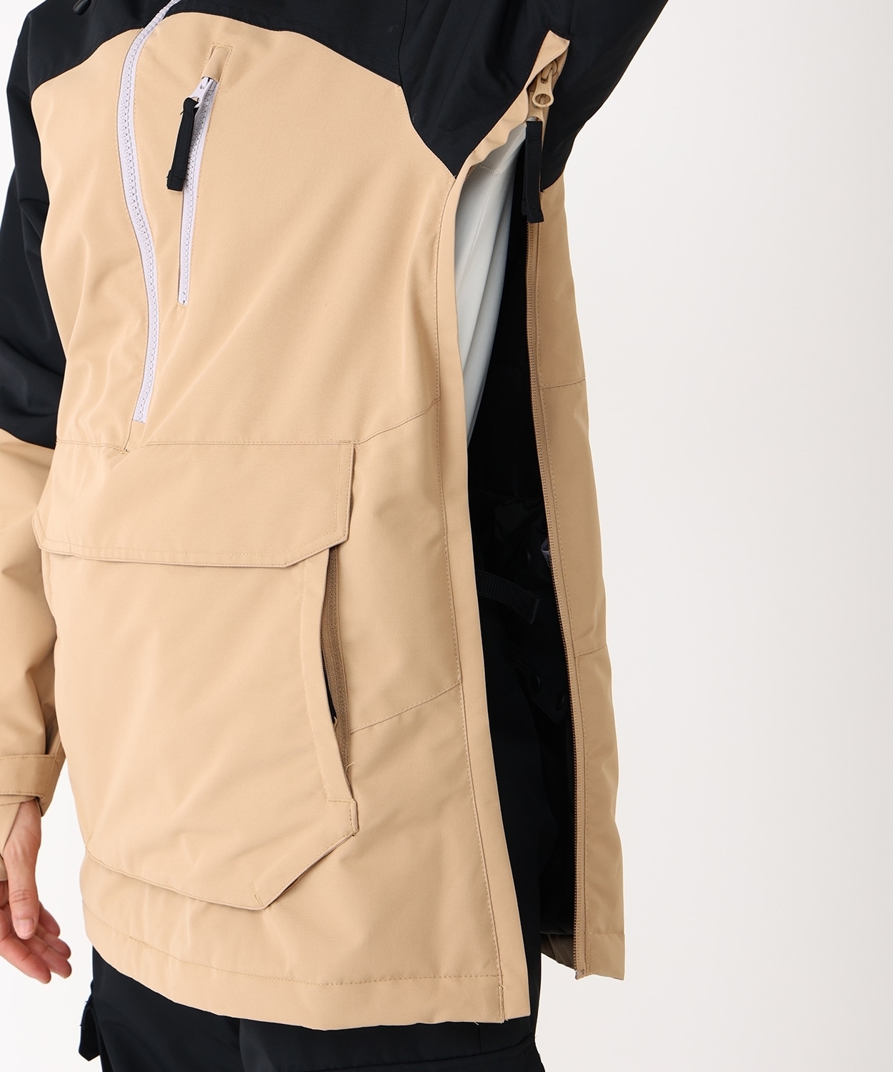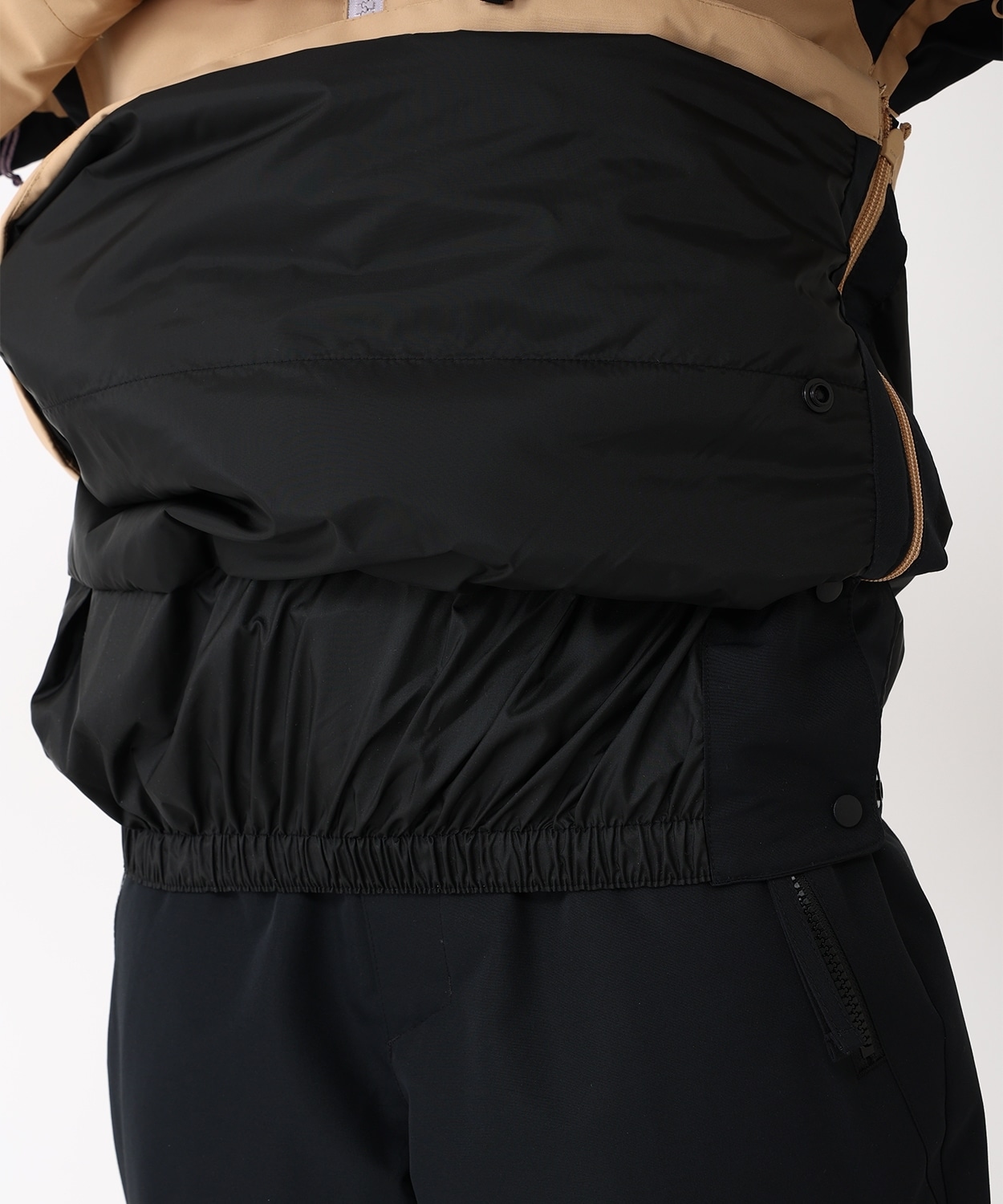 独自の防水透湿機能とフルシーム加工で高い防水性を持ち、スキーウェアとしては珍しい、ゆったりとしたリラックスフィットを採用。環境に配慮した中綿入りで暖かく、サイドに設けたファスナーは着脱しやすく、ベンチレーション機能としても効果大。収納力に優れたカンガルーポケットをデザインポイントに、ゲレンデに必須なディテールも充実しています。
