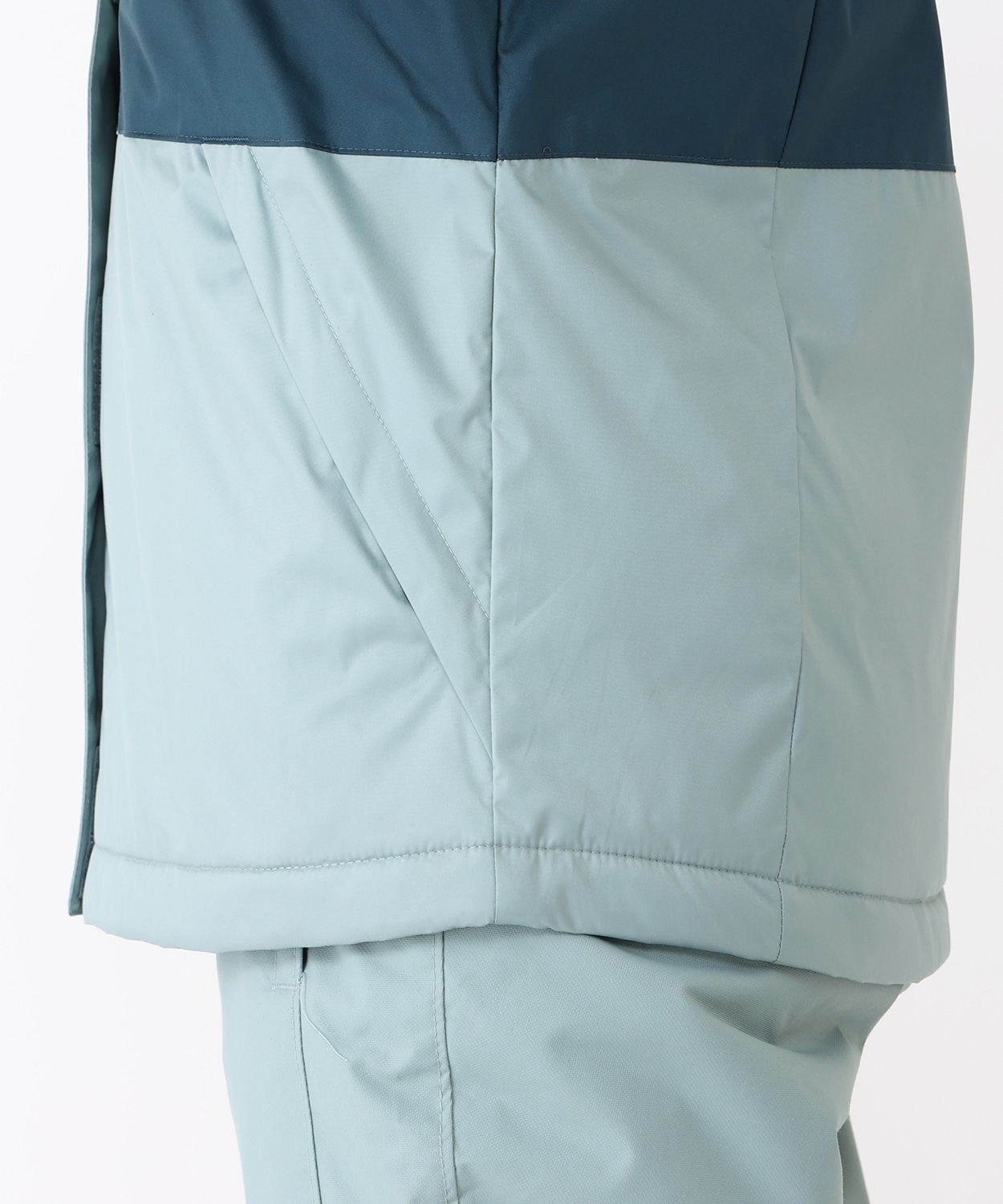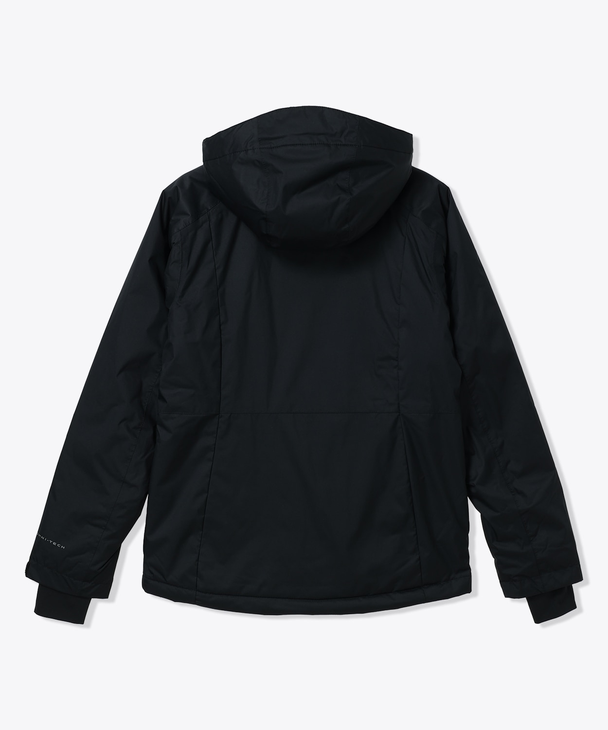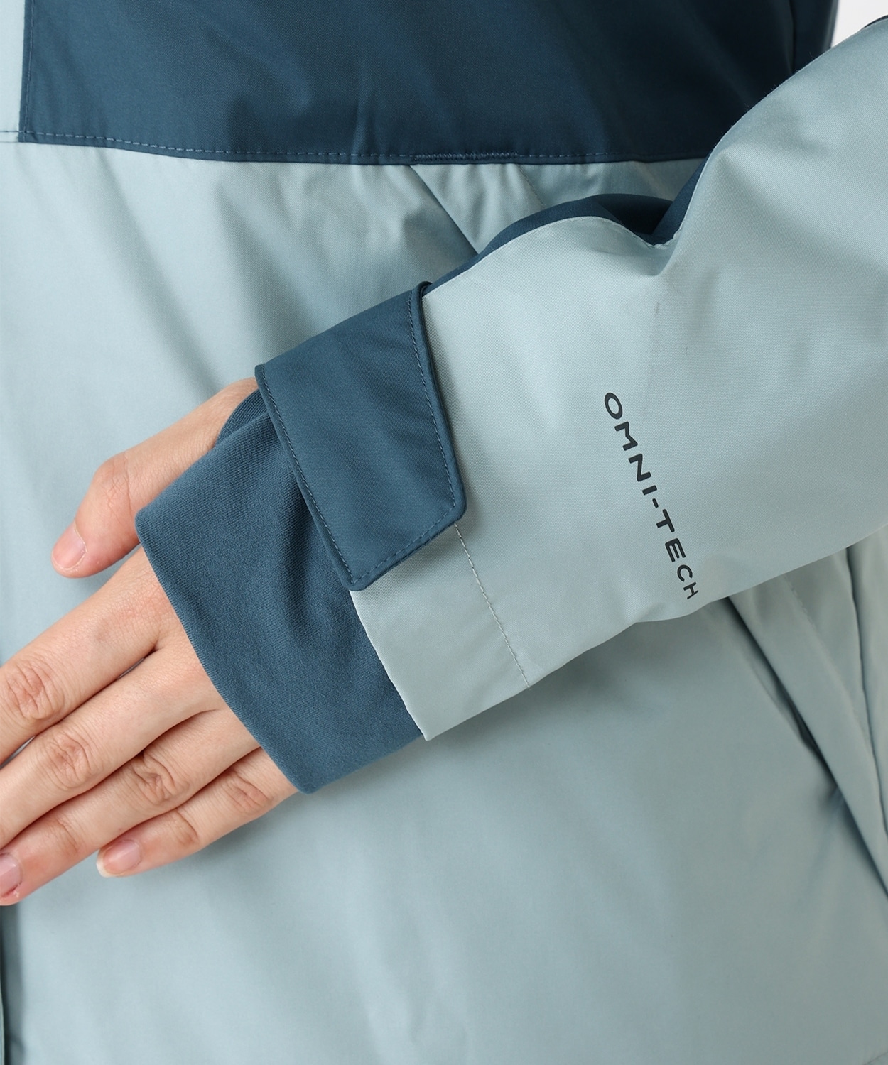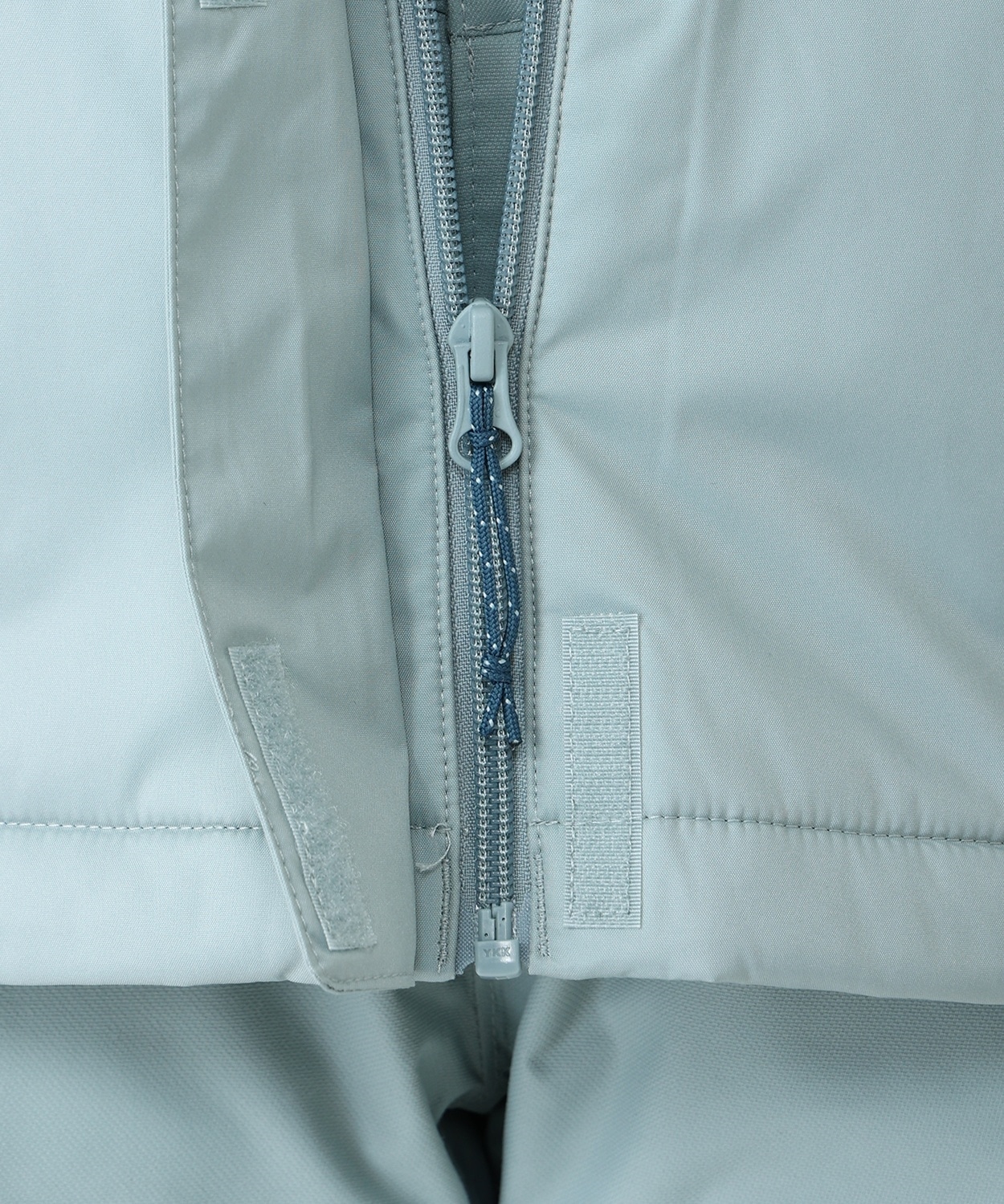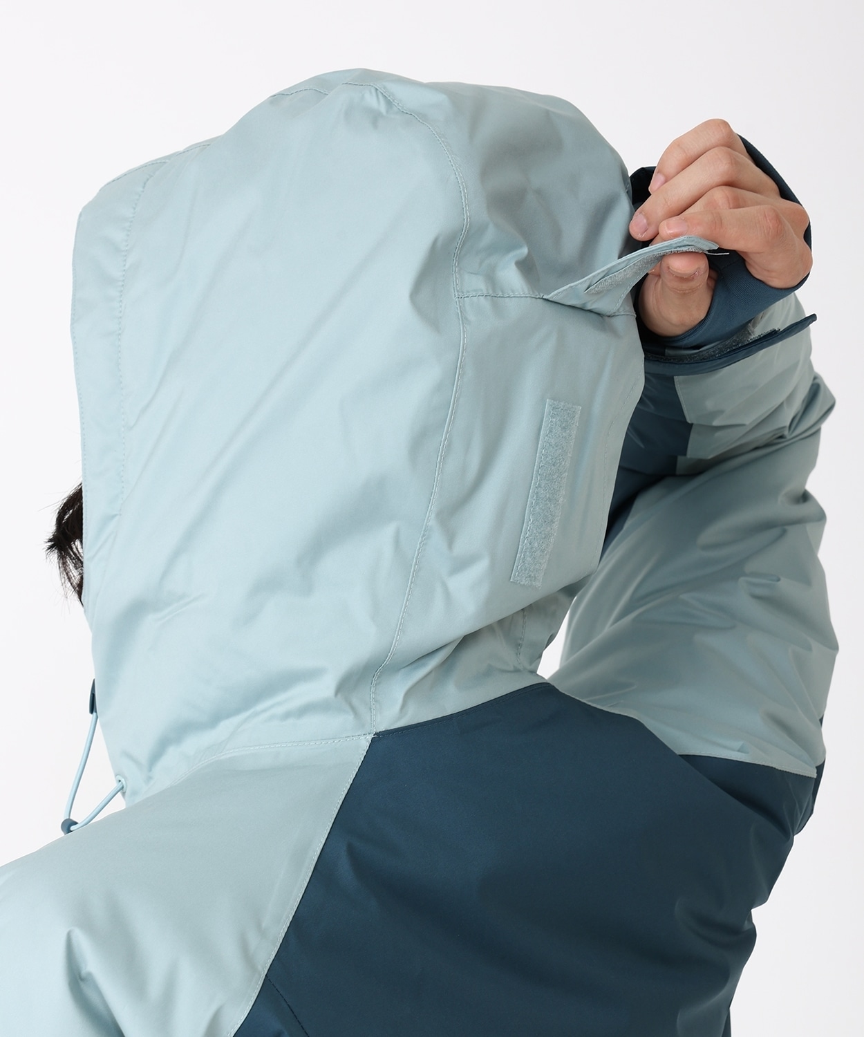 雨に強くムレにくい、独自の防水透湿機能を備え、フードや肩周りはシームテープ処理で防水性を強化。裏地に用いた熱反射保温機能と、中綿を封入することで暖かな着心地を実現。ヘルメット対応のフードデザインや、手元を暖かく包み込むサムホールを配置するなど、快適性を高めるディテールもポイントです。