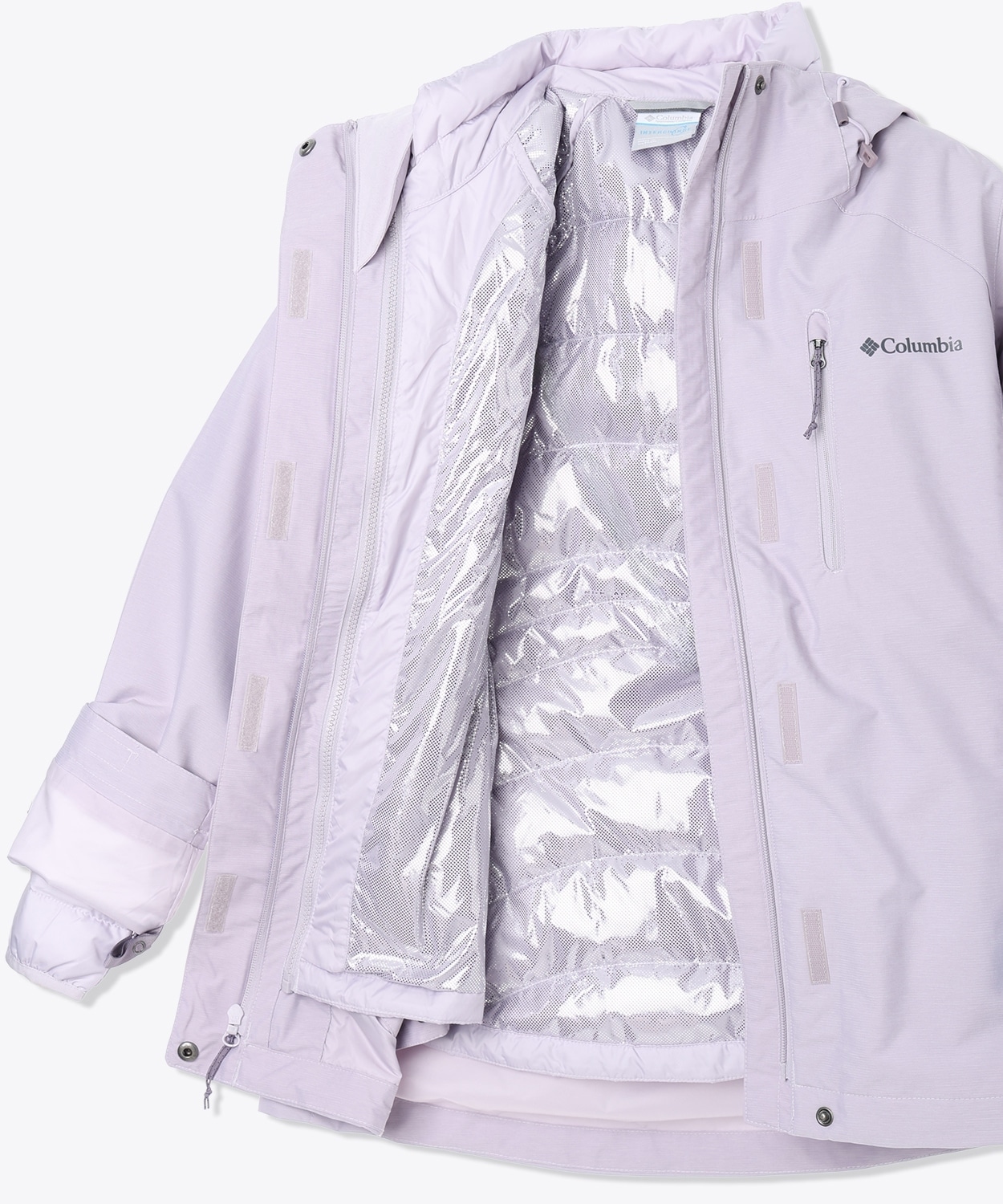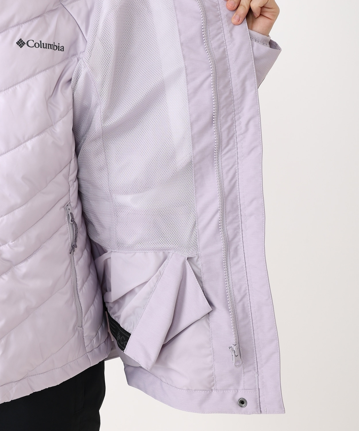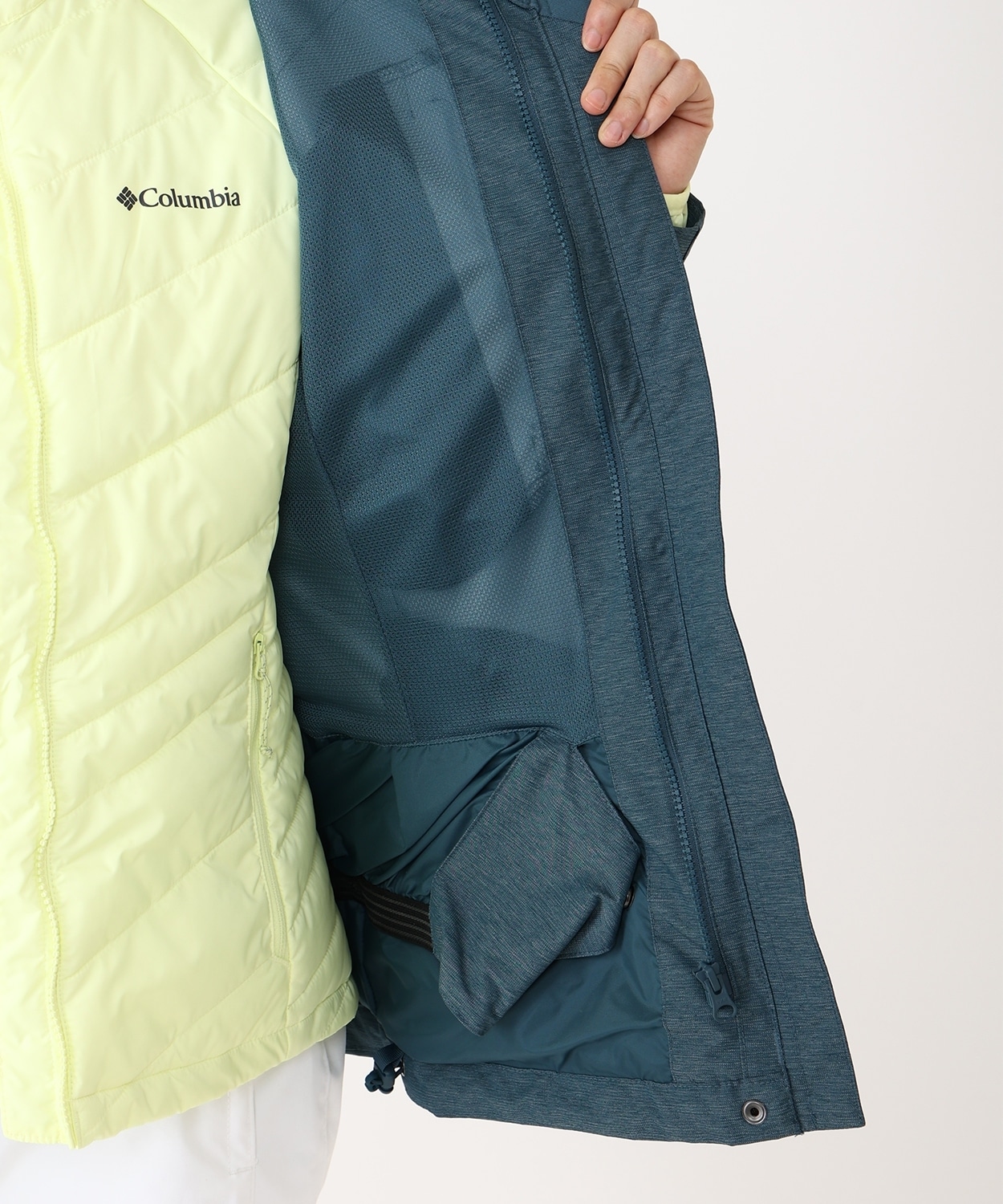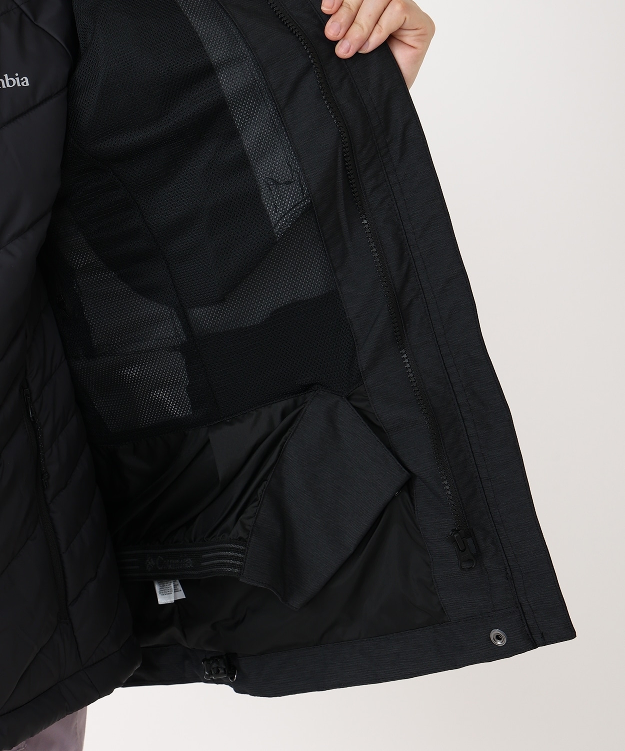 防水透湿機能を搭載したアウターは、シームテープ処理で防水性を強化し、ゲレンデに必要なディテールも完備。環境に配慮した中綿を封入したライナーは、裏地の熱反射保温機能で十分な暖かさを確保。ファスナーで取り外しができるインターチェンジシステムを搭載しているので、それぞれ単体でも使用でき、天候やコンディションに合わせて3通りの着こなしを楽しめます。