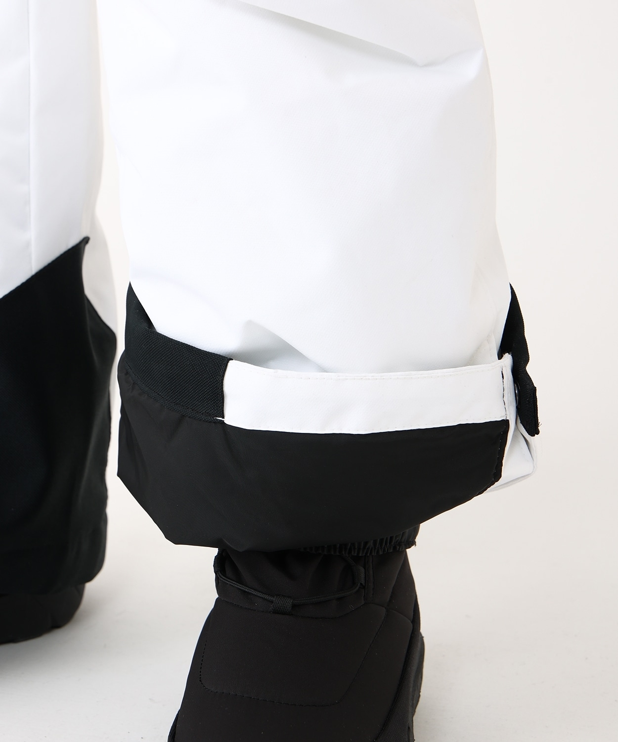 ・裾サイド:スキーブーツを履いても着脱しやすいスナップボタン